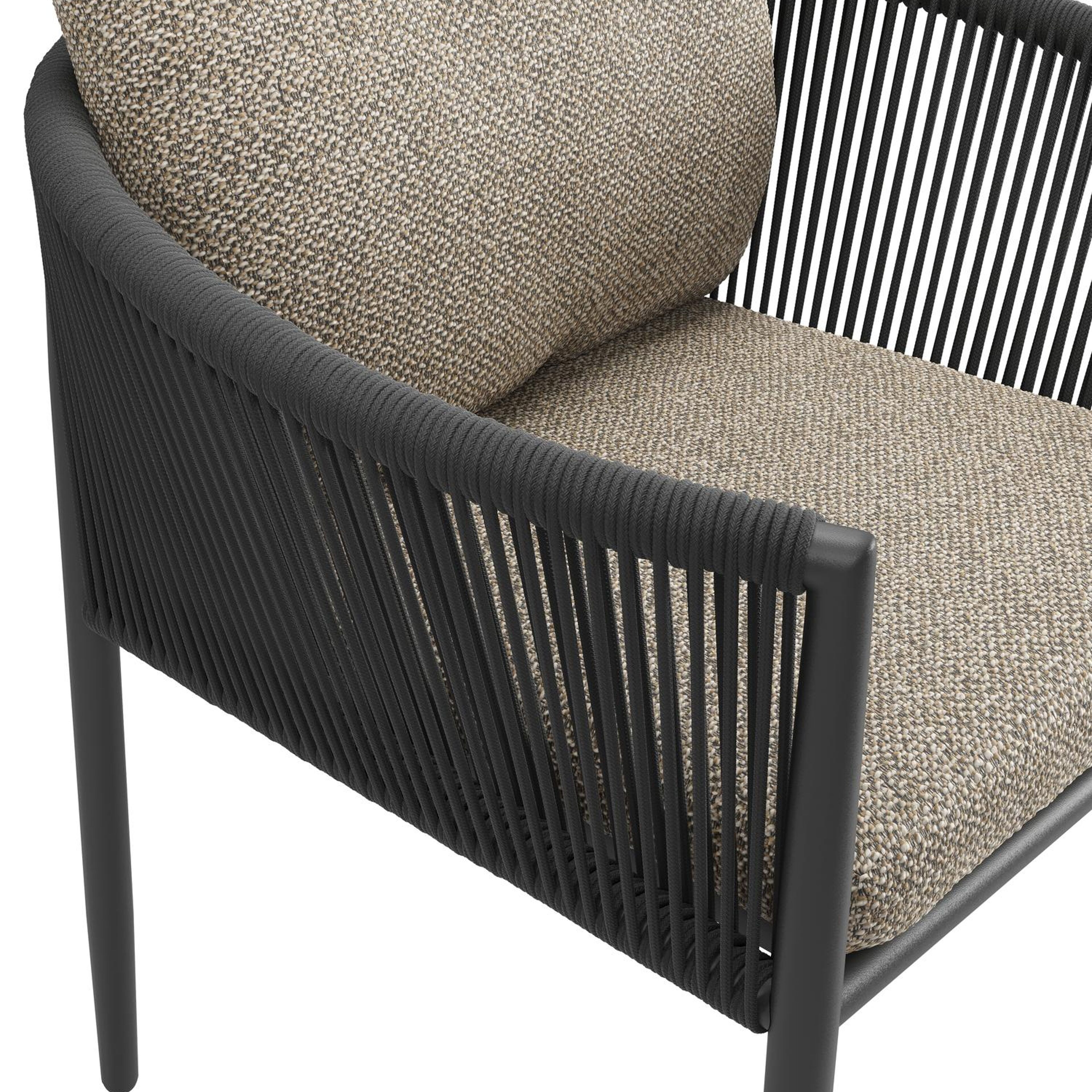 Rope is een meerlagige synthetische draad. Het weerbestendige materiaal heeft een unieke uitstraling en voelt zacht aan. Rope staat gekend als onderhoudsvriendelijk, stevig en erg comfortabel. Rope heeft een ronde vorm waardoor organische vormen geaccentueerd worden en je een natuurlijk gevoel krijgt.
