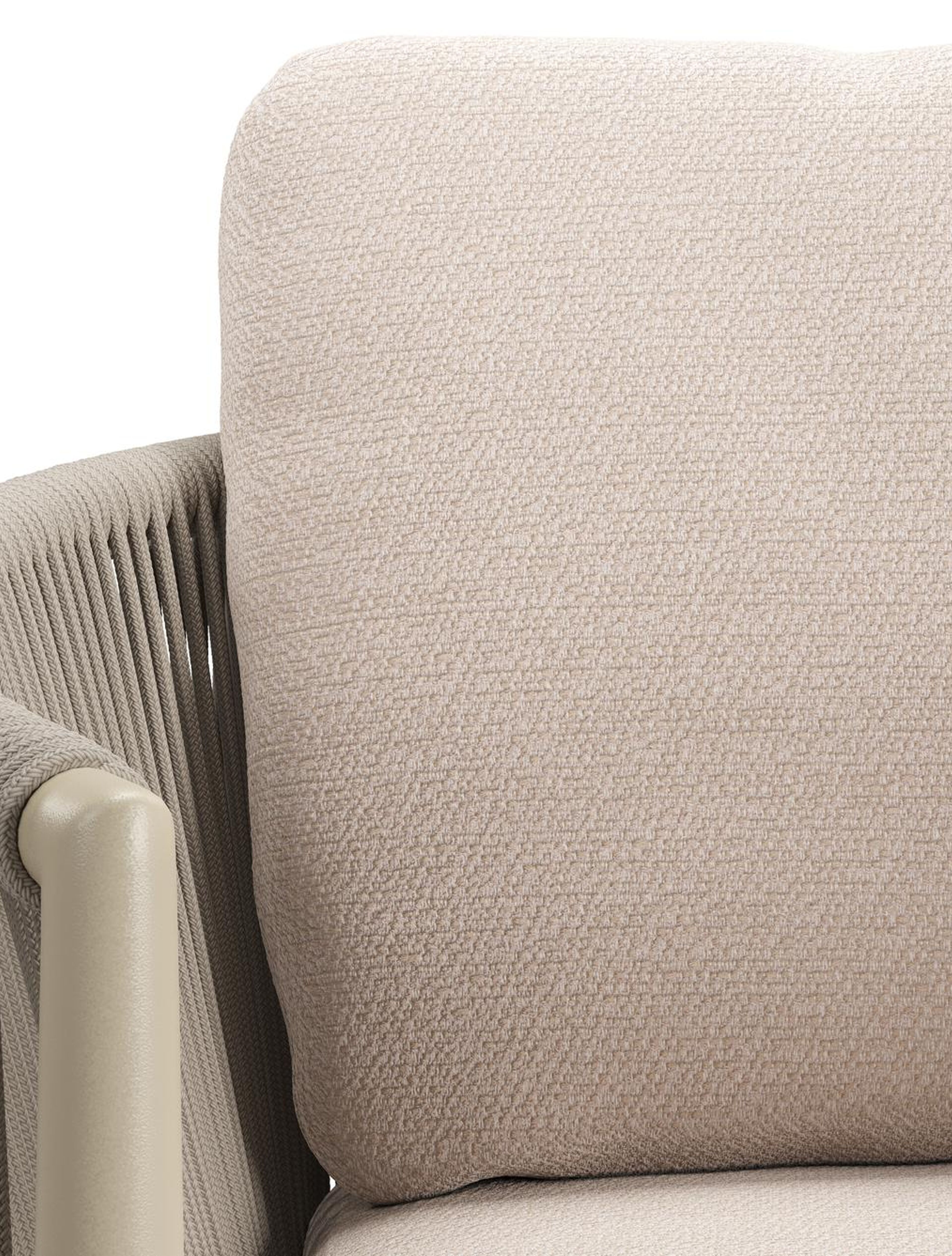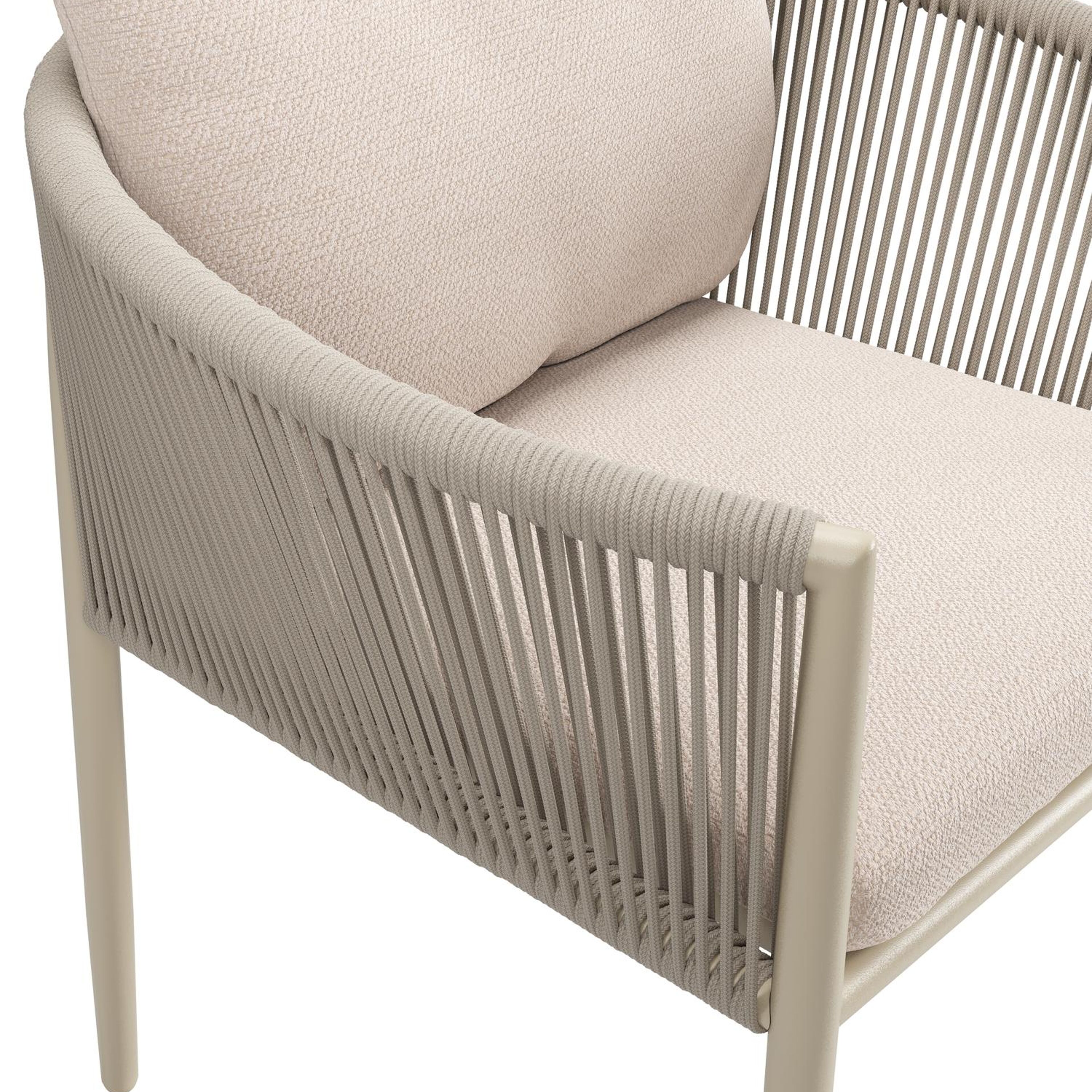 Organo tuinstoel in zwart aluminium en beige verticaal geweven ronde rope met stoelkussen in All Weather Sunbrella® Luxe Wander Pilat | Exterioo tuinmeubelen