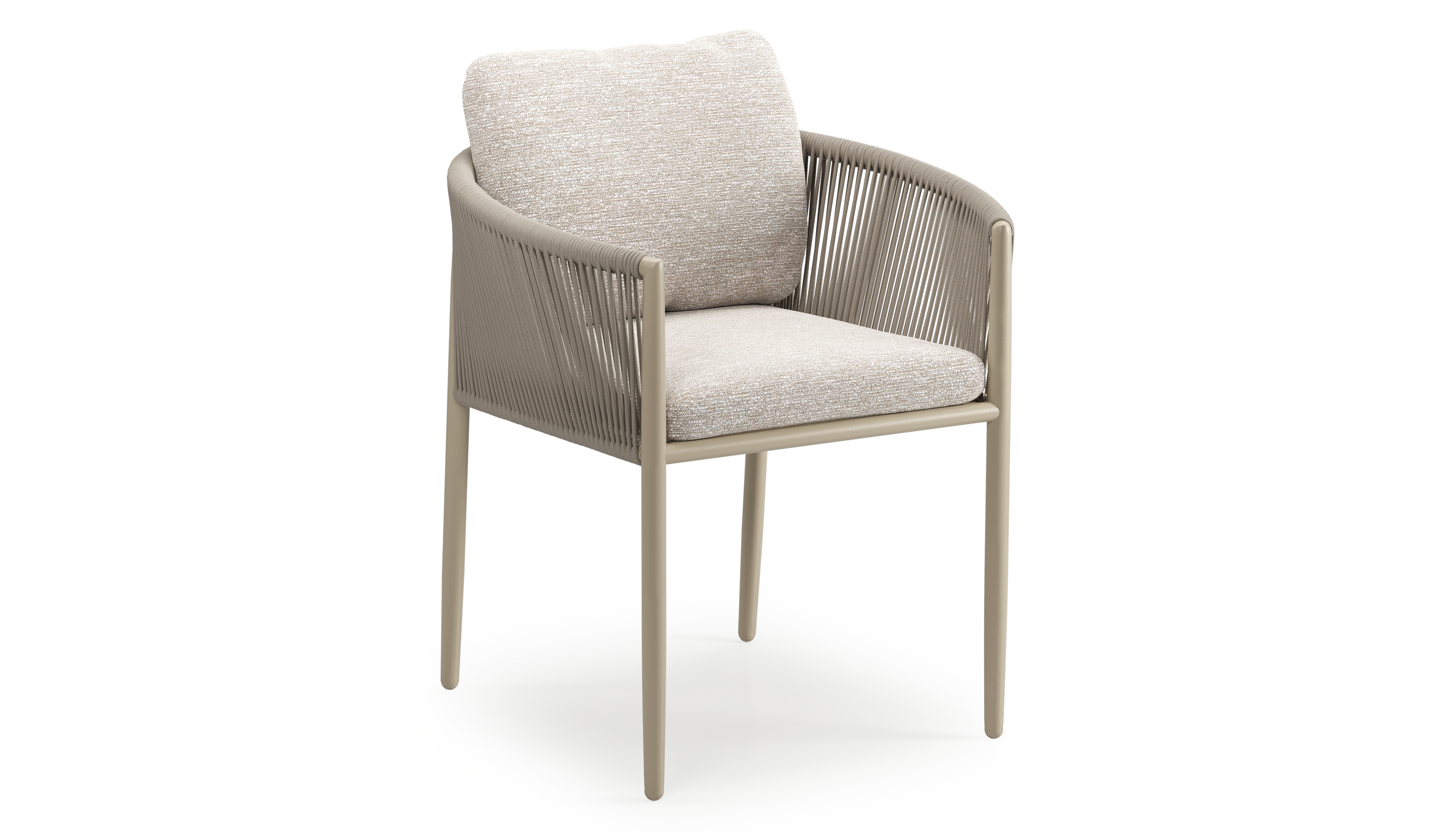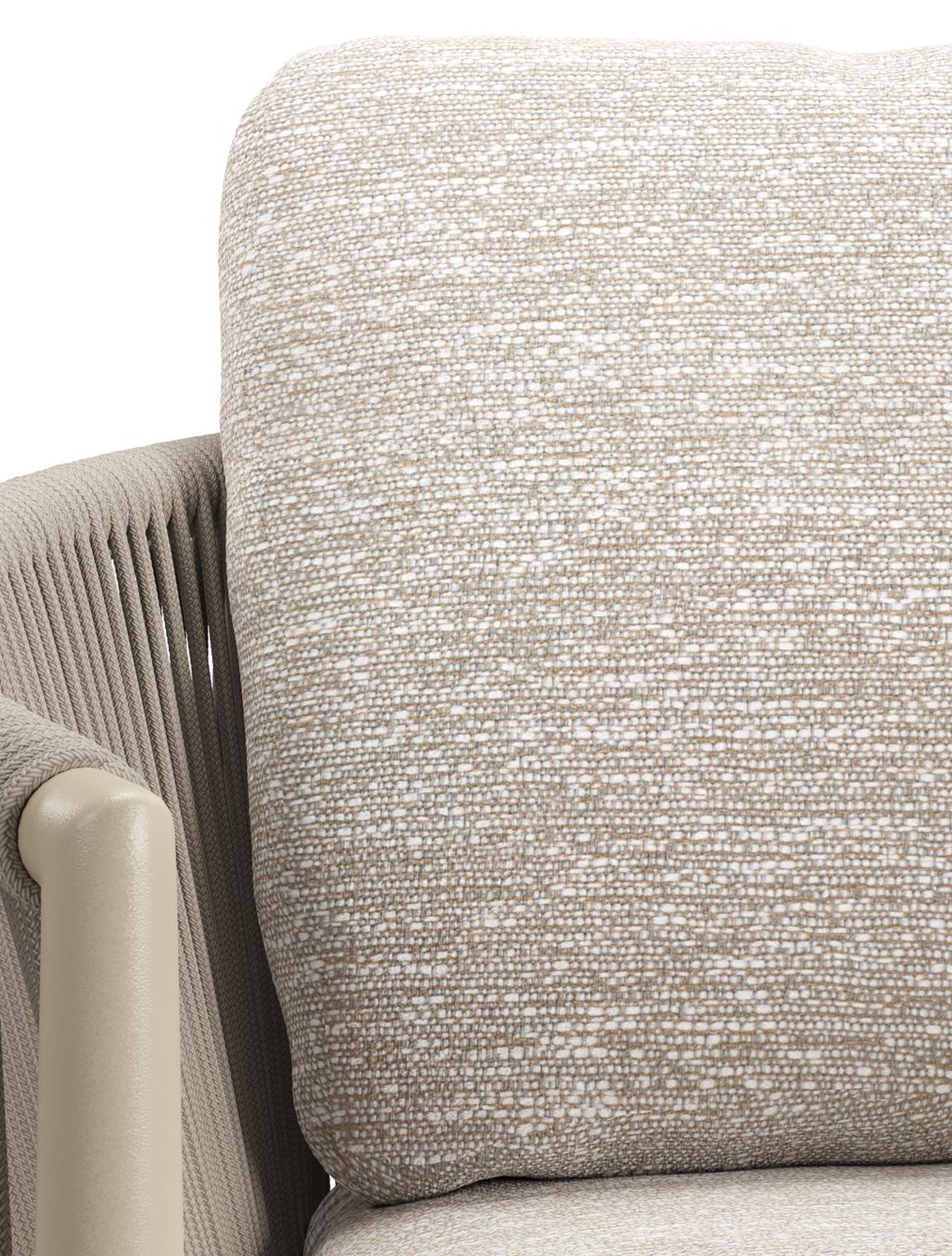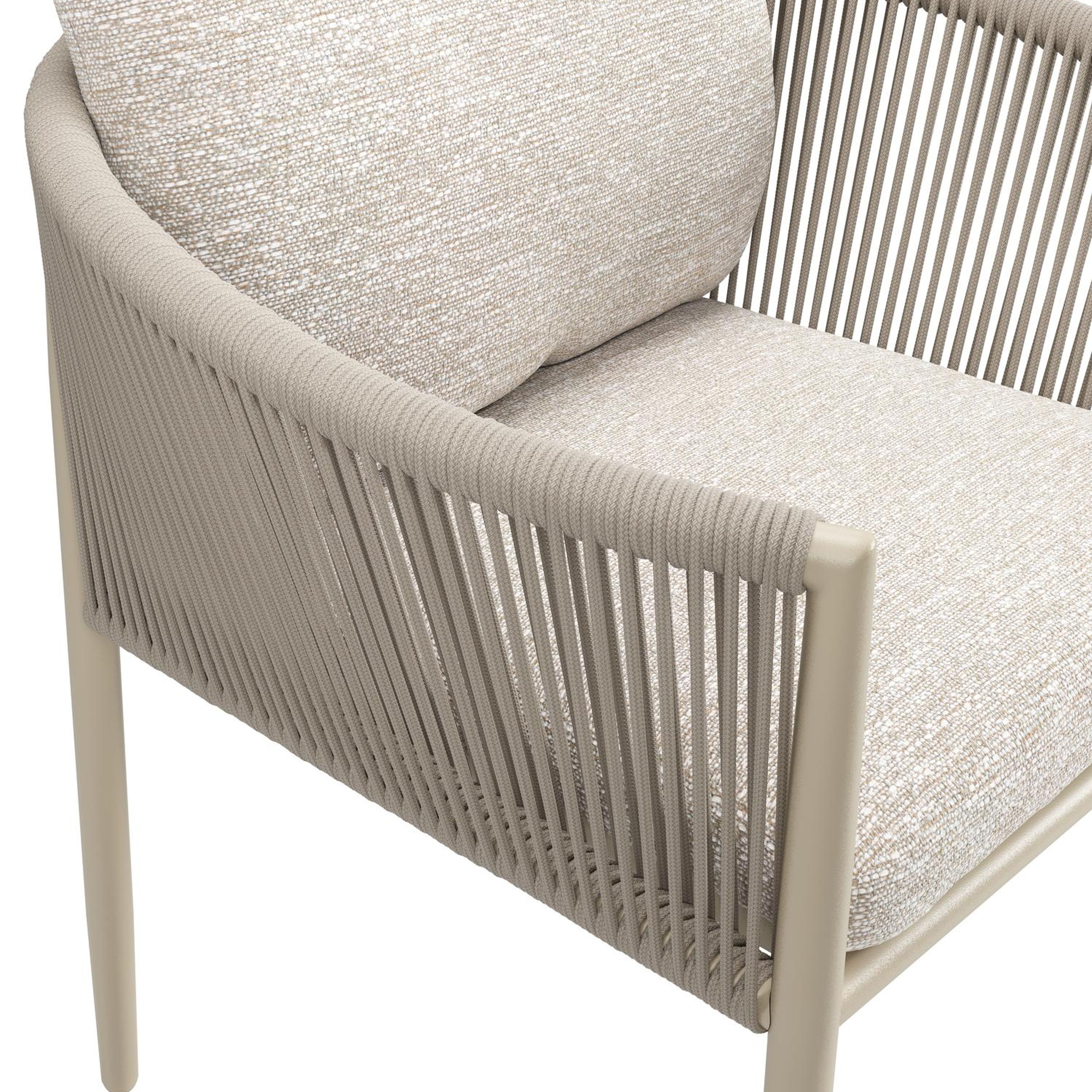 Organo tuinstoel in zwart aluminium en beige verticaal geweven ronde rope met stoelkussen in All Weather Sunbrella® Luxe Tundra Sand | Exterioo tuinmeubelen