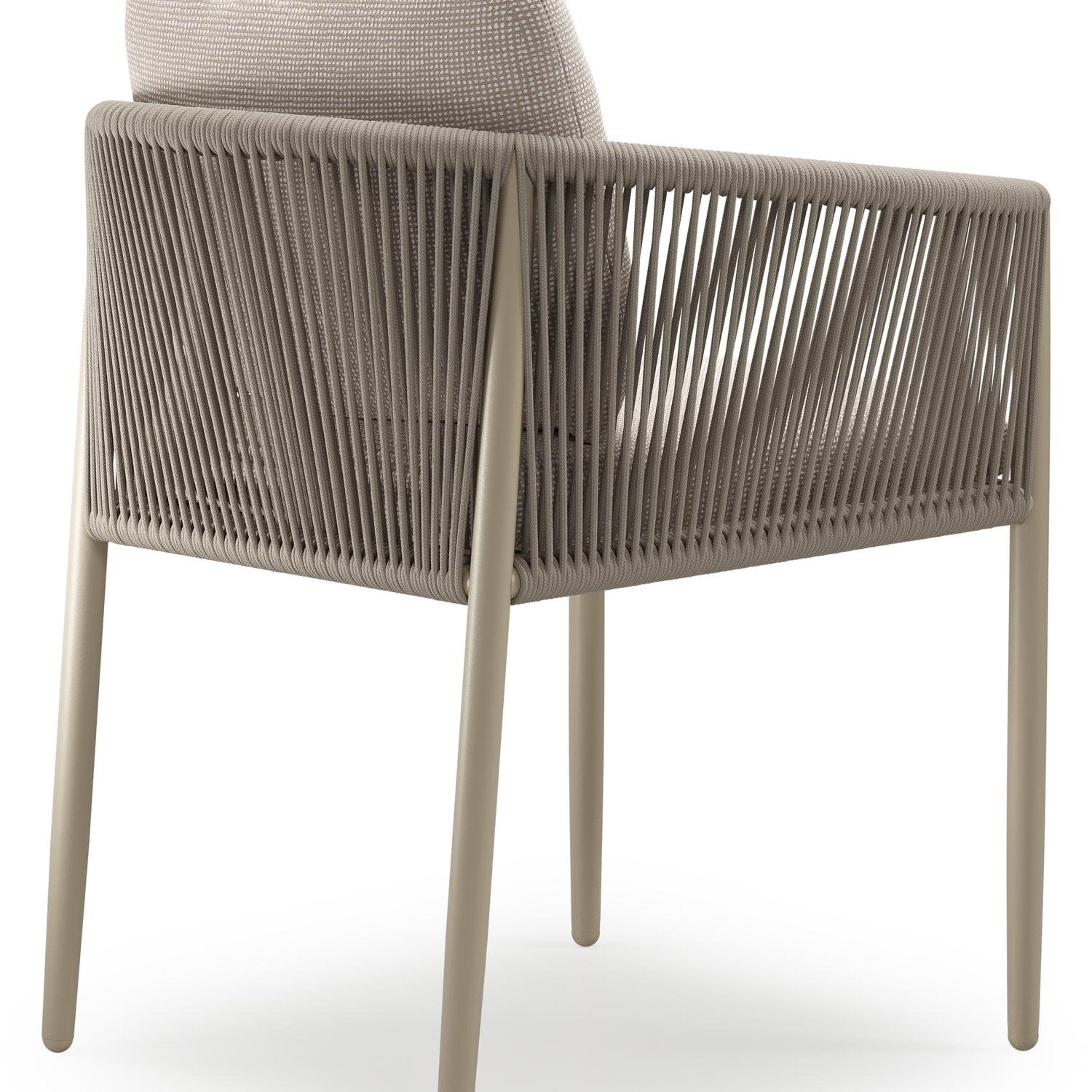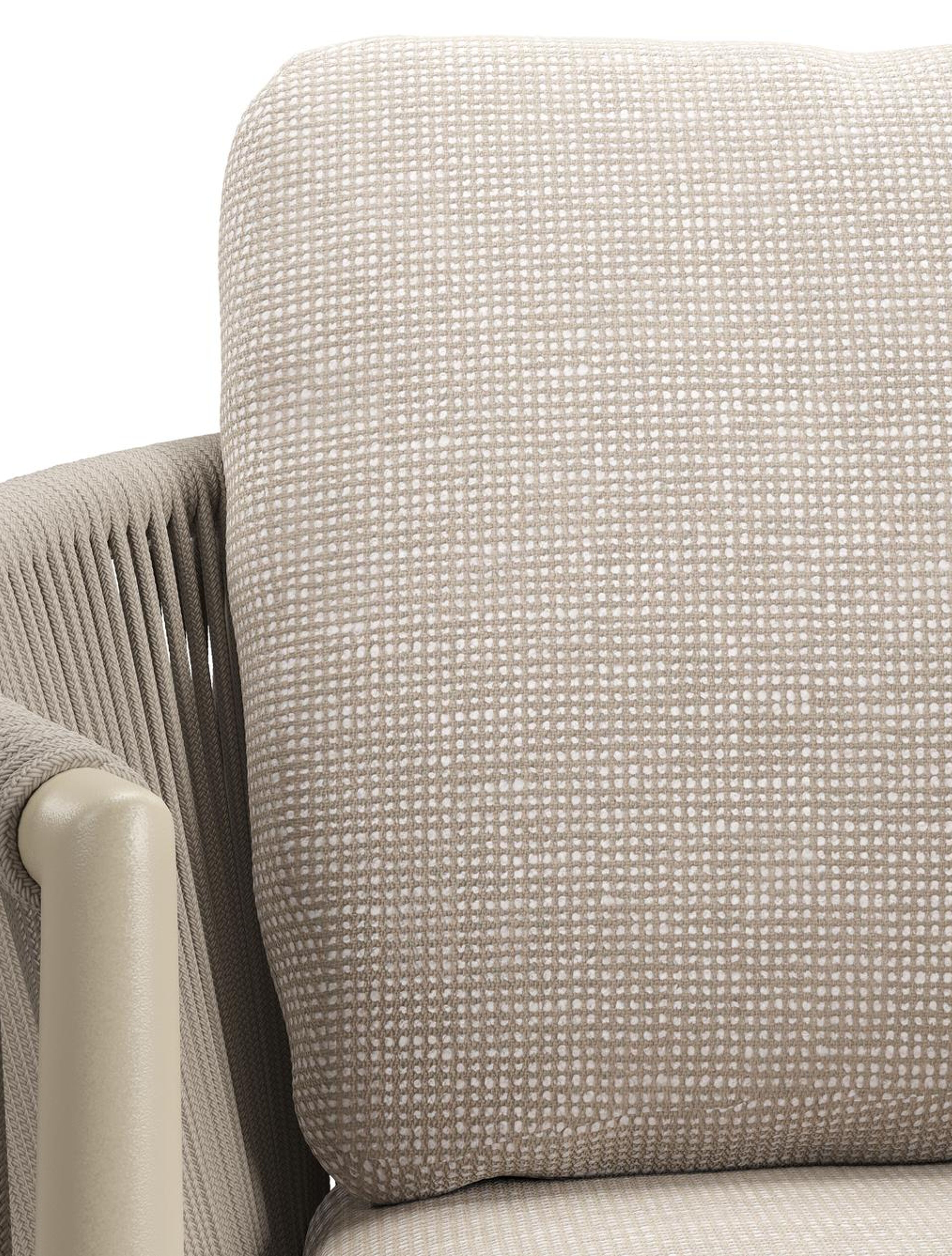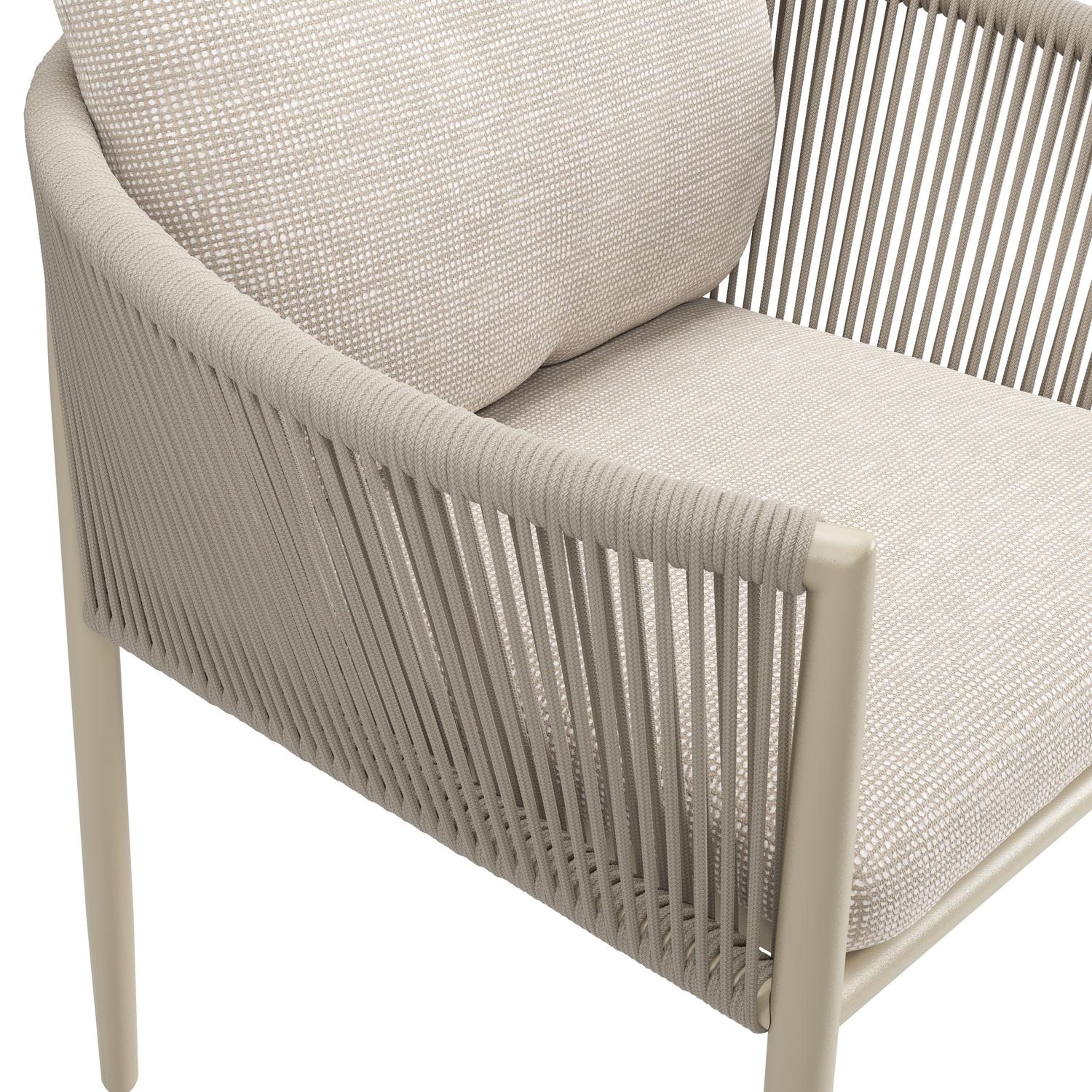 Organo tuinstoel in zwart aluminium en beige verticaal geweven ronde rope met stoelkussen in All Weather Sunbrella® Luxe Slow Farafra | Exterioo tuinmeubelen