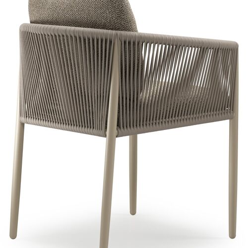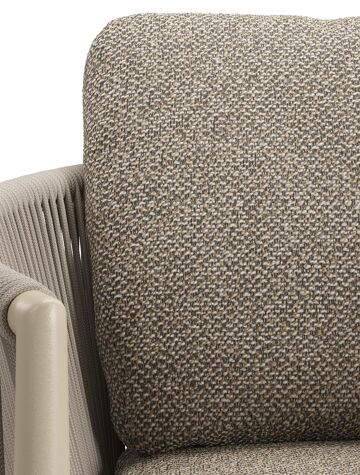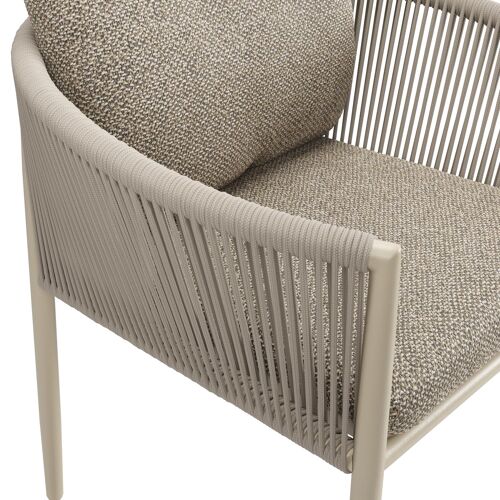Organo tuinstoel in zwart aluminium en beige verticaal geweven luxe vlakke rope met stoelkussen in All Weather Cosytica Madagascar Burch | Exterioo