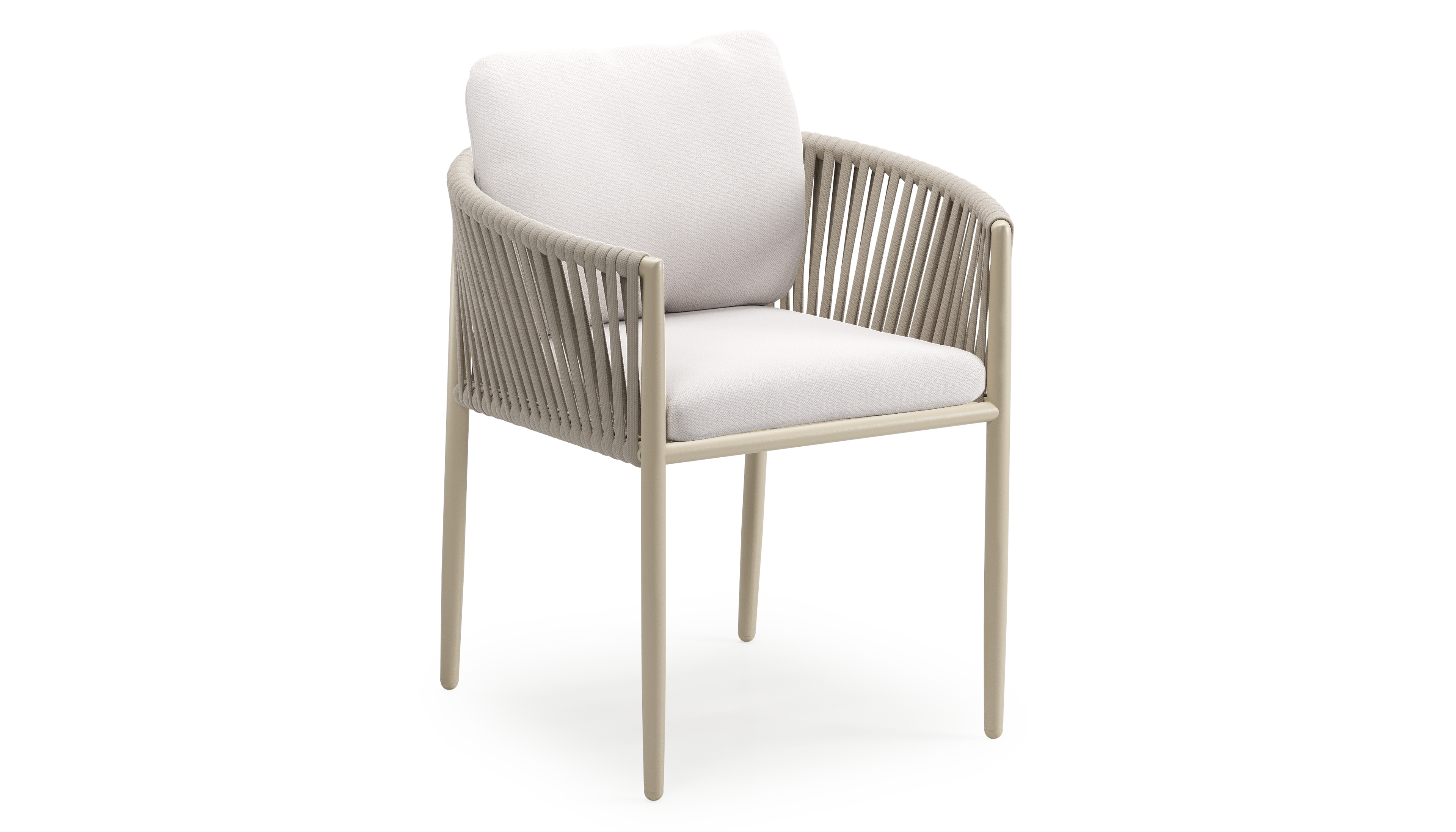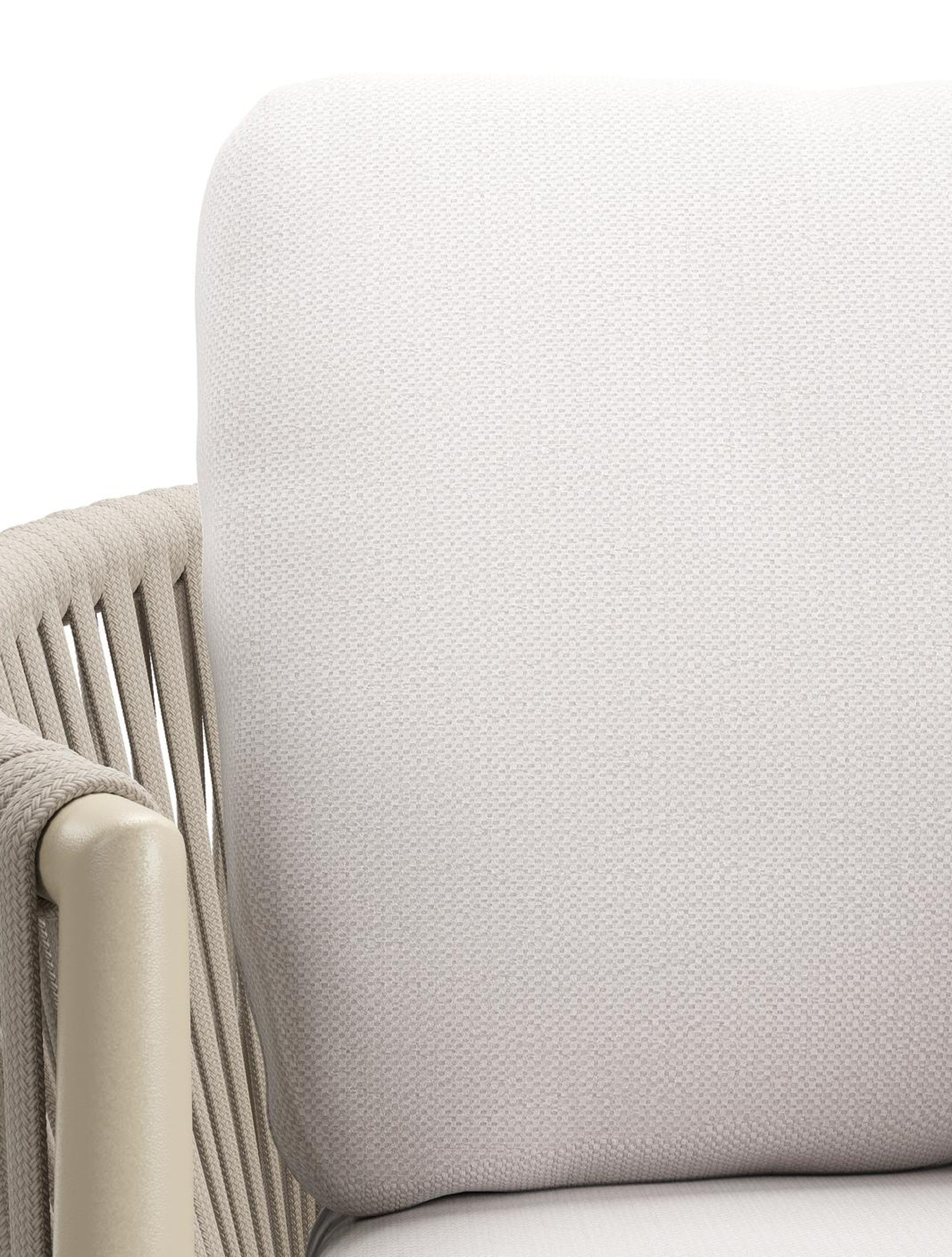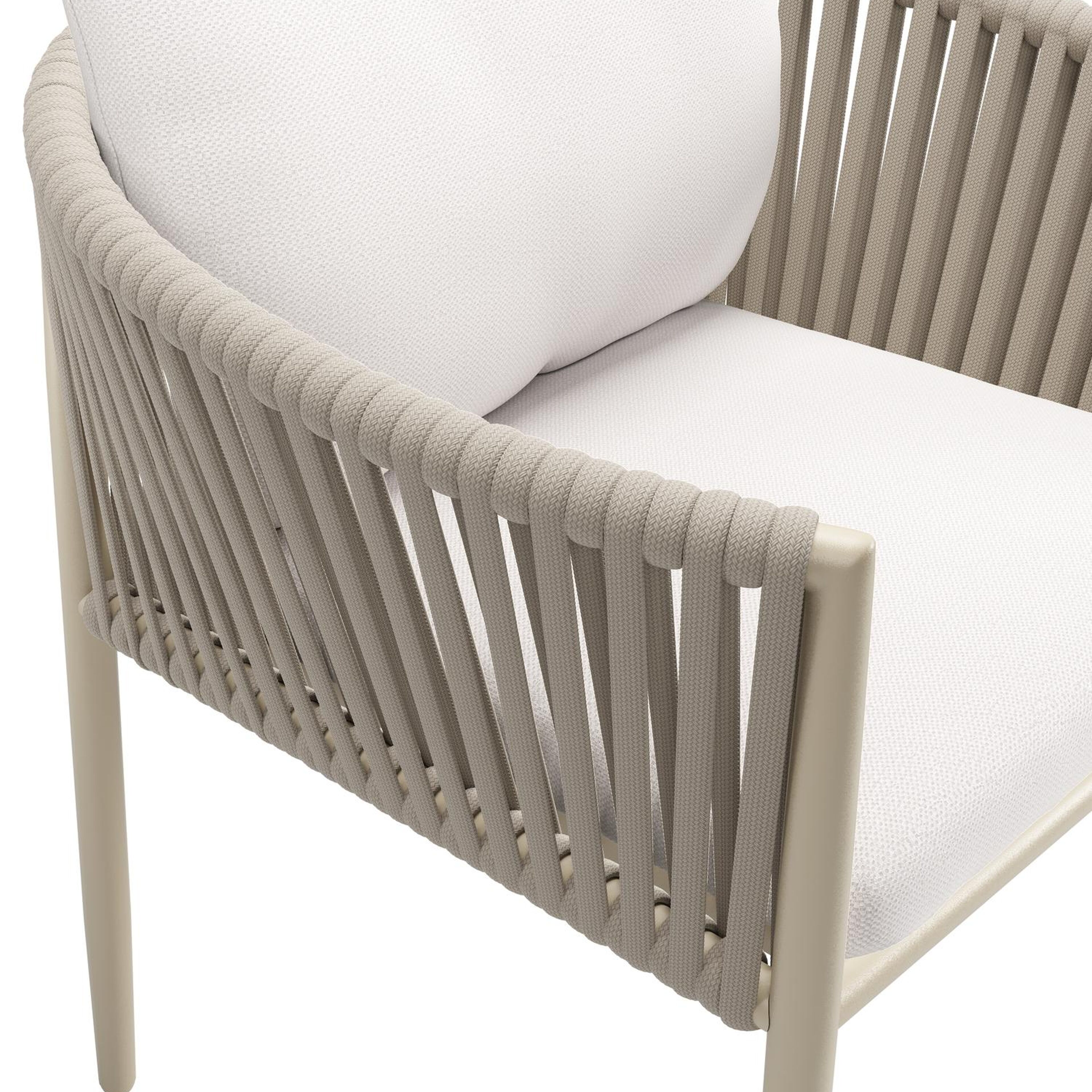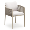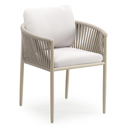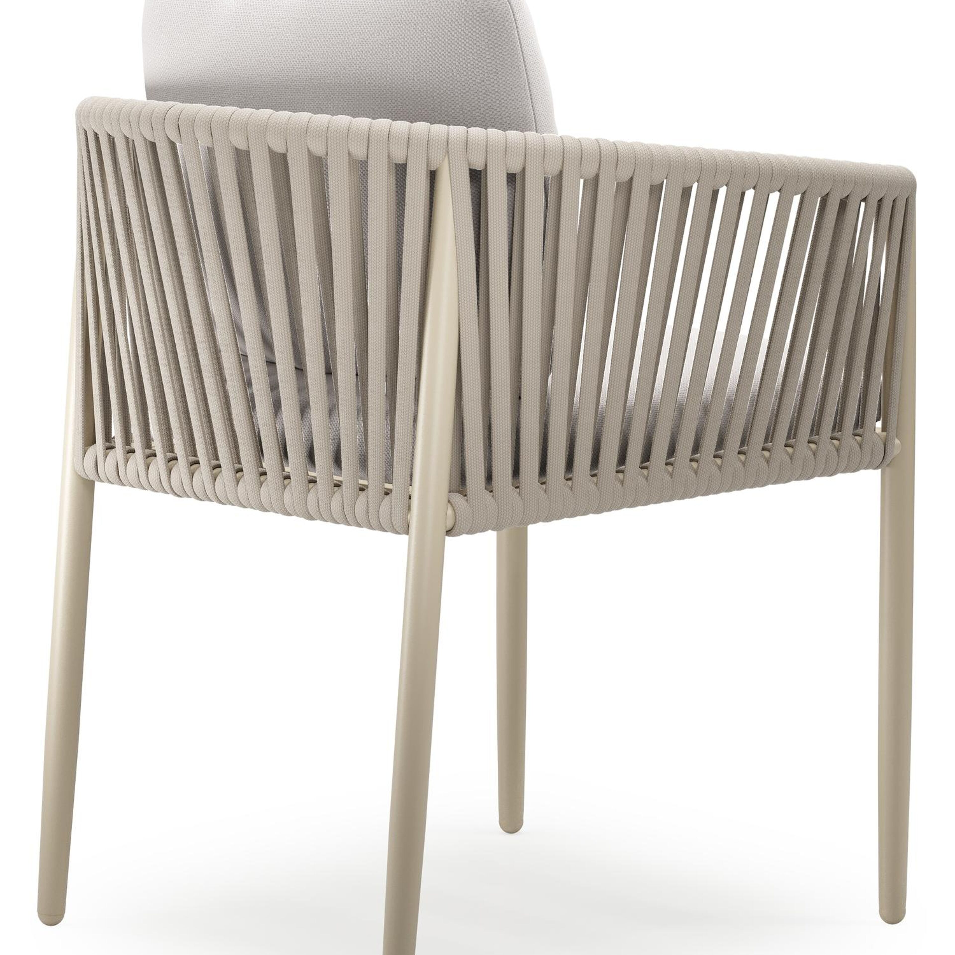 Organo tuinstoel in beige aluminium en beige verticaal geweven luxe vlakke rope met zitkussen in All Weather Sunbrella® Luxe Savane Whisper | Exterioo tuinmeubelen