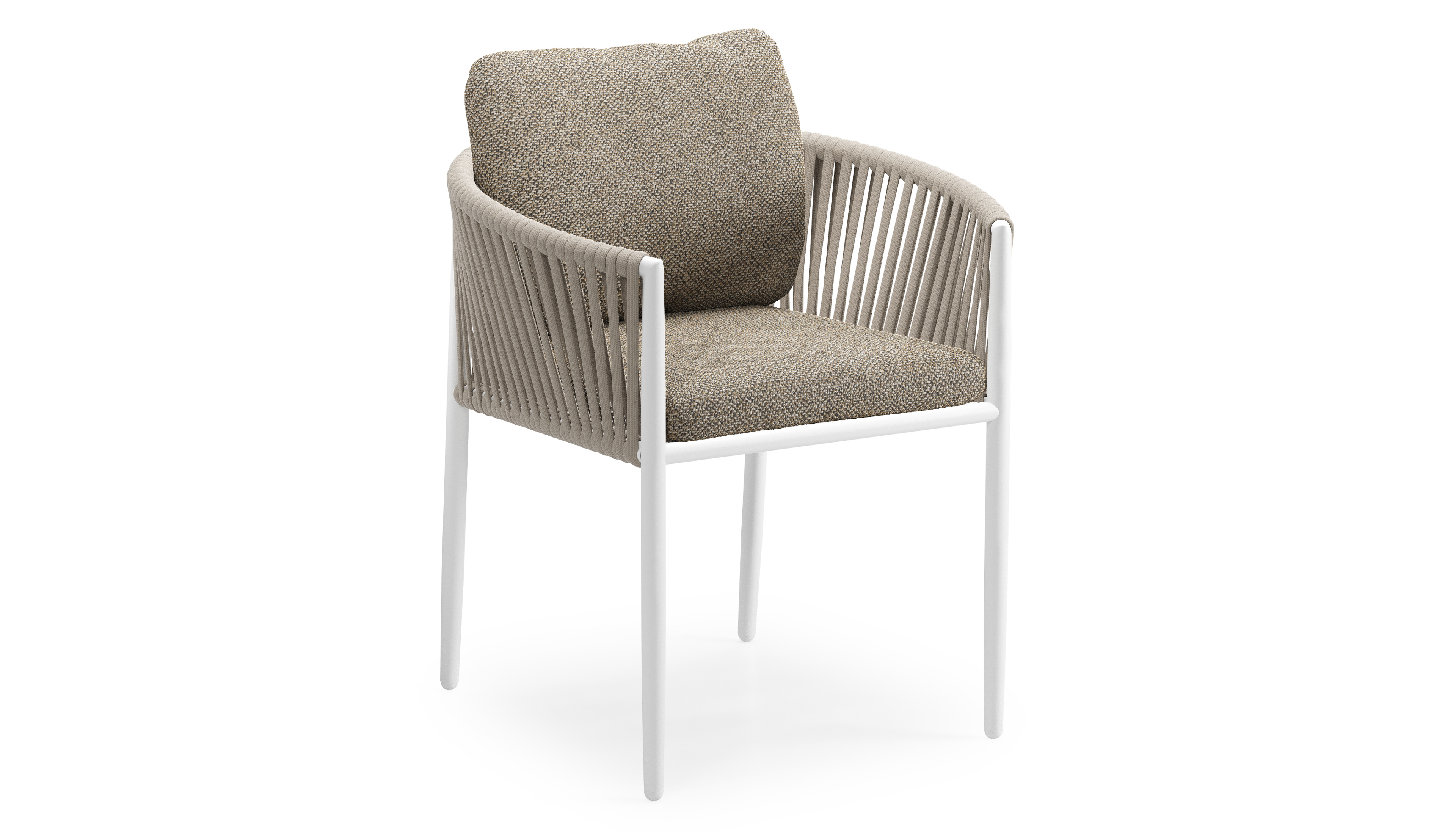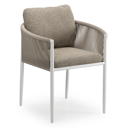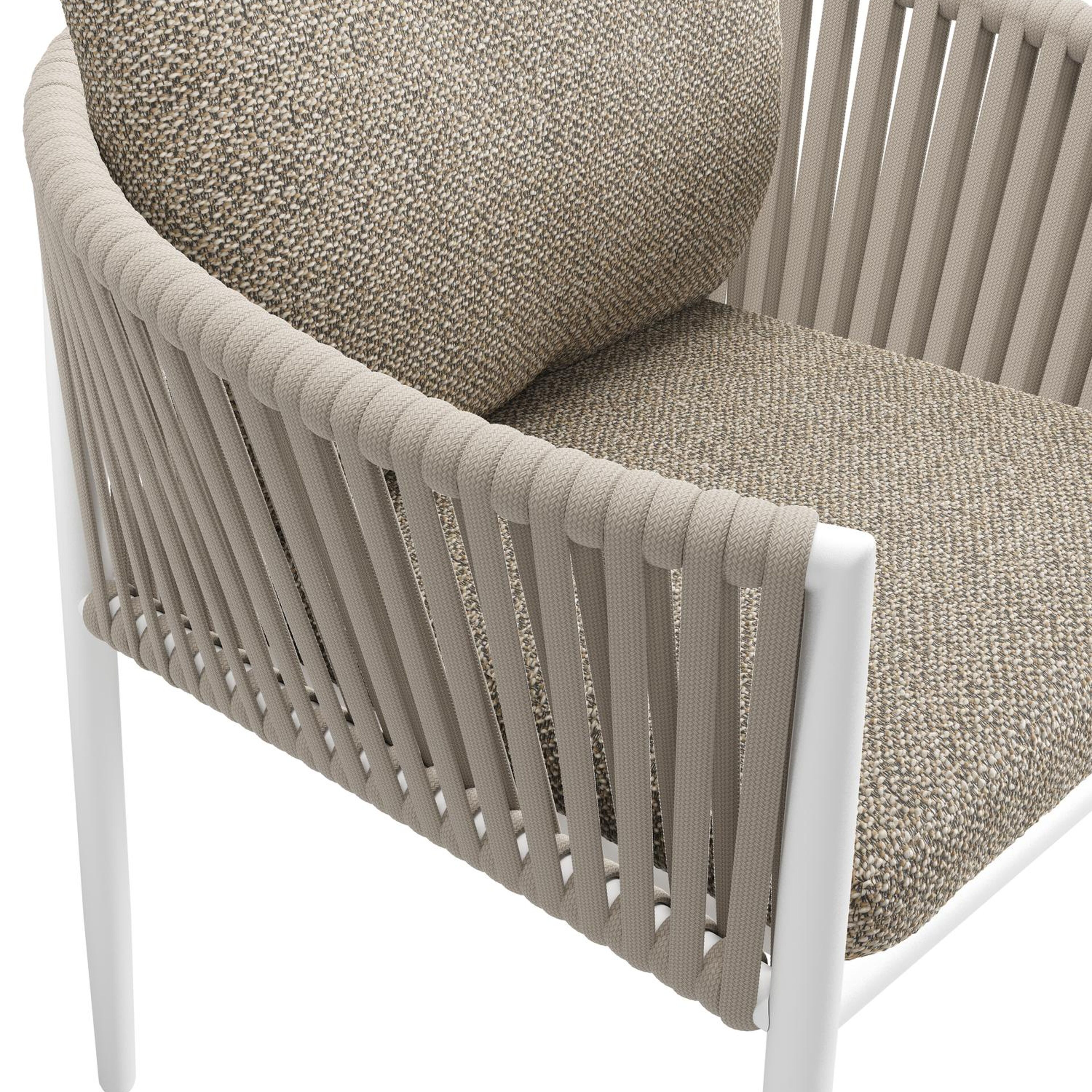 Organo tuinstoel in wit aluminium en beige verticaal geweven luxe vlakke rope met zitkussen in All Weather Cosytica Madagascar Burch | Exterioo tuinmeubelen