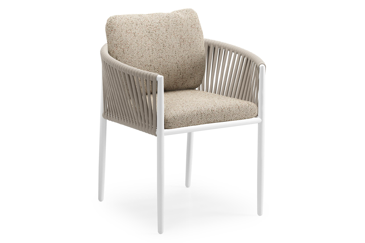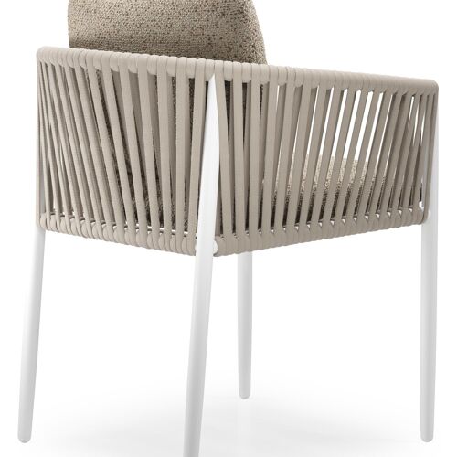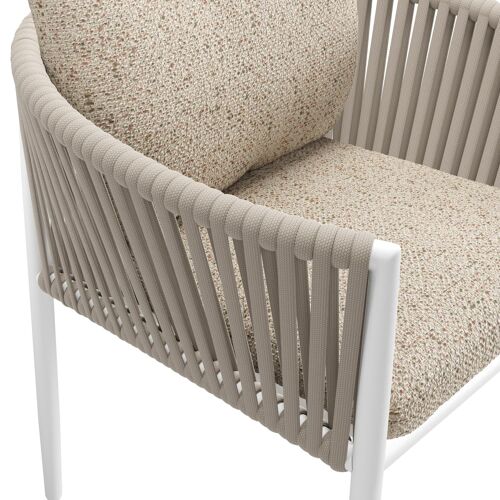 Organo tuinstoel in wit aluminium en beige verticaal geweven luxe vlakke rope met zitkussen in All Weather Cosytica Bora Jungle | Exterioo