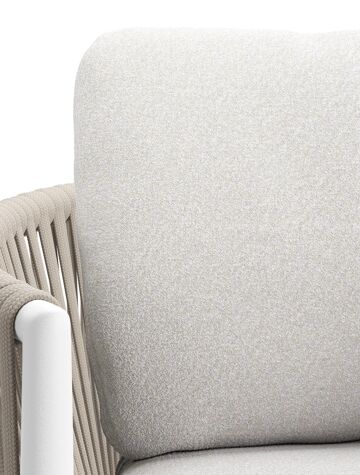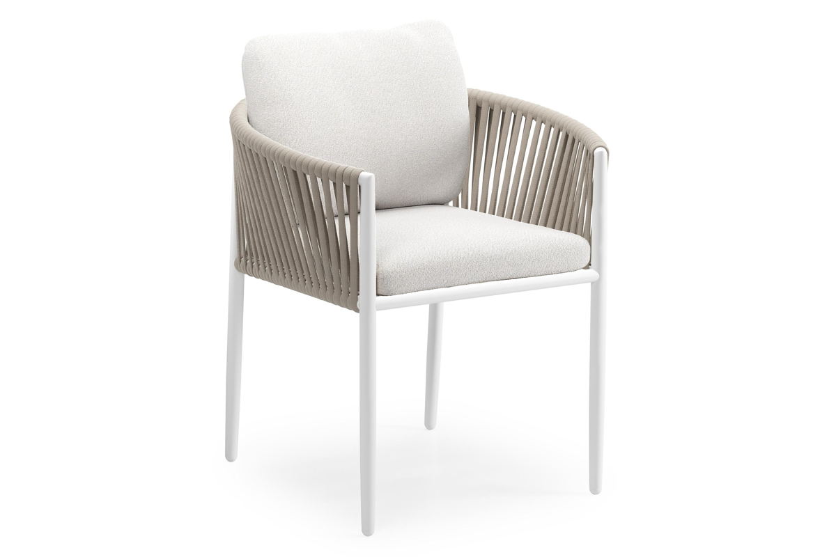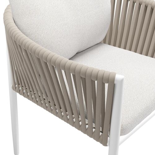 Organo tuinstoel in wit aluminium en beige verticaal geweven luxe vlakke rope met zitkussen in All Weather Solica Soul Optik | Exterioo
