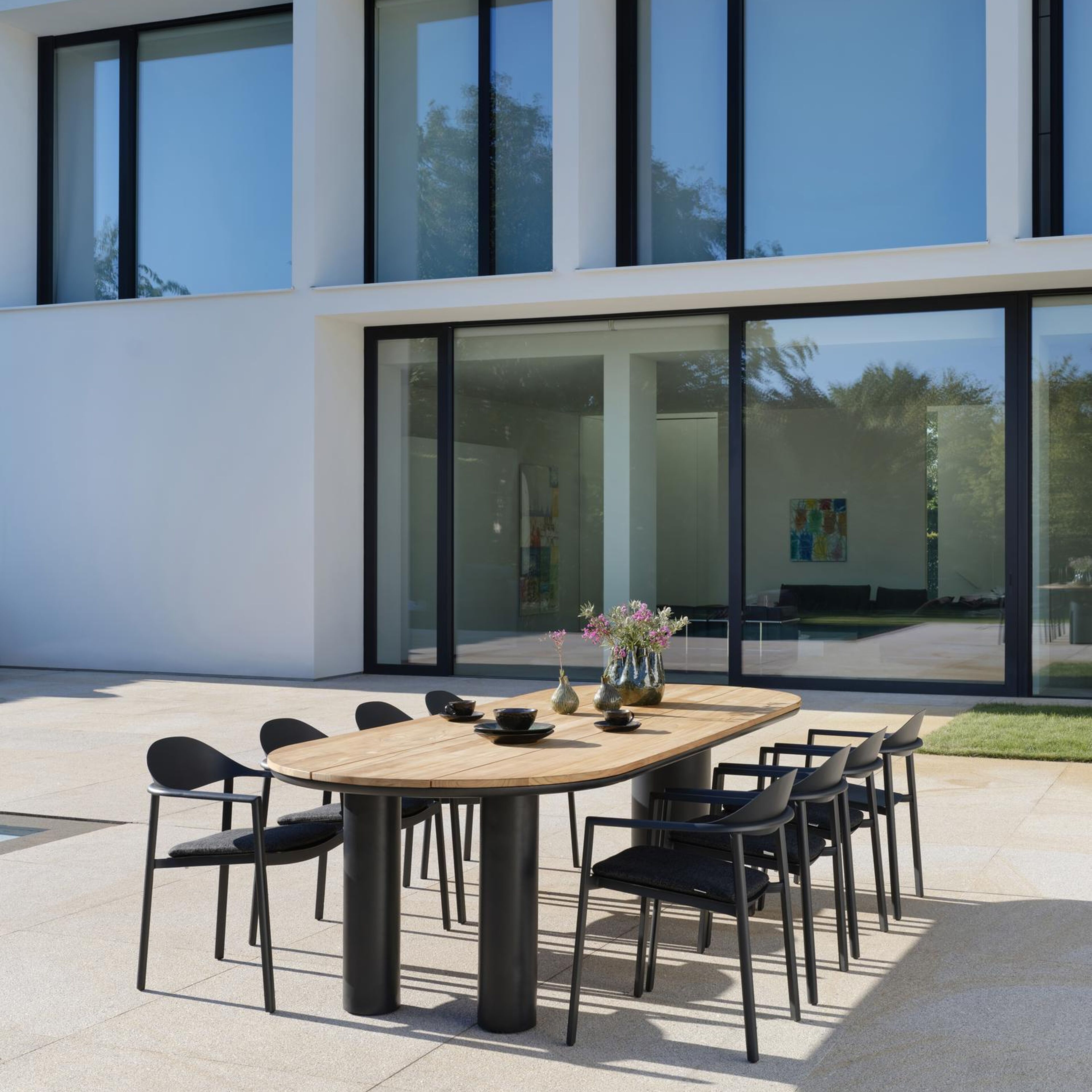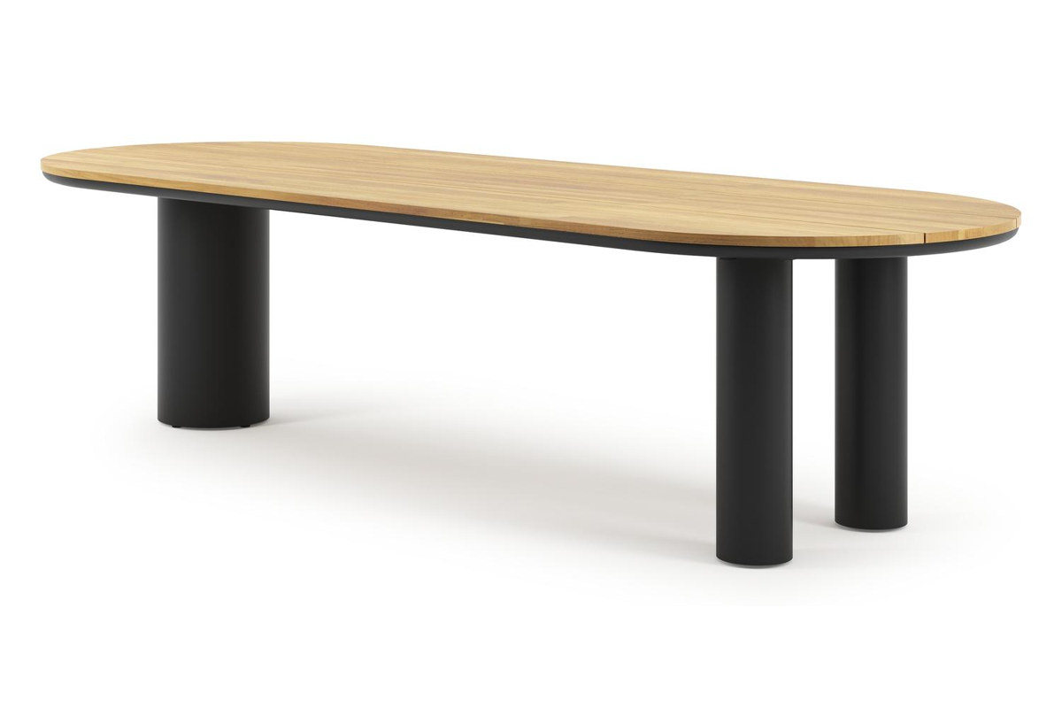 De Organo tuintafel onderscheidt zich door zijn uniek ontwerp, met een organisch gevormd tafelblad dat een eigentijdse uitstraling heeft. De tafel rust op een robuuste, dikke ronde poot en twee fijne ronde poten. Samen creëren ze een meesterlijke balans tussen luxe en moderniteit, waardoor deze tafel het pronkstuk van je buitenruimte wordt.