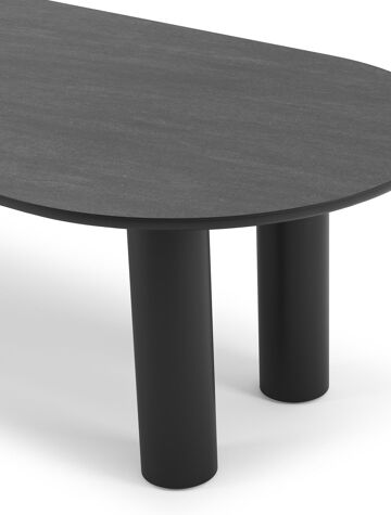 De Organo tuintafel onderscheidt zich door zijn uniek ontwerp, met een organisch gevormd tafelblad dat een eigentijdse uitstraling heeft. De tafel rust op een robuuste, dikke ronde poot en twee fijne ronde poten. Samen creëren ze een meesterlijke balans tussen luxe en moderniteit, waardoor deze tafel het pronkstuk van je buitenruimte wordt.