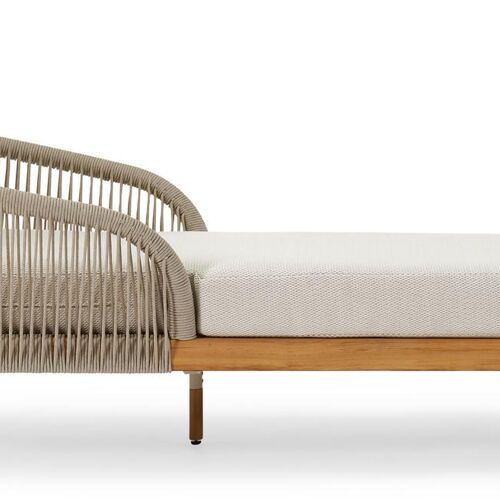 Het Orso ligbed vormt een harmonieus geheel door modern verticaal weefwerk te combineren met authentiek gecertificeerd teak. Het ligbedkussen is uniek en uiterst kwalitatief dankzij de Sunbrella® Luxe-stof. Sunbrella® Luxe is een stijlvolle, weerbestendige stof met een coating die niet enkel waterafstotend is maar ook beschermt tegen vuil, vlekken en vloeistoffen. De Sunbrella® Luxe stof is bestand tegen weer en wind, mag het hele jaar buiten blijven en toont zich jarenlang slijt- en kleurvast dankzij de tot in de kern gekleurde acrylvezel. De ademende stof wordt bij Bristol à La Carte gecombineerd met een dubbele laag quick dry foam, een comfortabel schuim met open poriënstructuur dat geen water ophoudt én snel droogt.