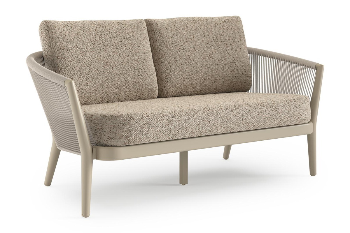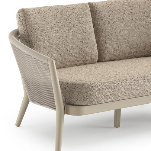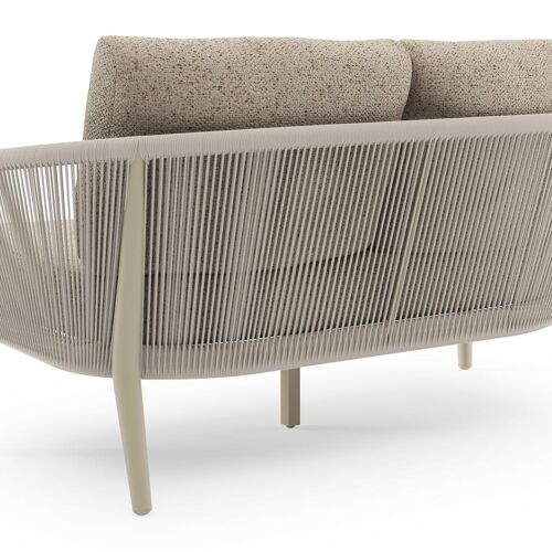 Orso loungebank in beige aluminium en beige verticaal geweven ronde rope met Bora Jungle all weather cosytica kussen | Exterioo