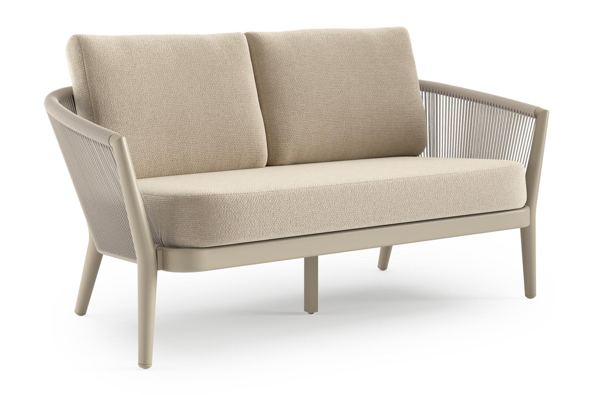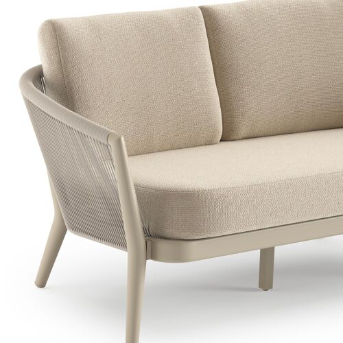Orso loungebank in beige aluminium en beige verticaal geweven ronde rope met Althea Chalk all weather cosytica kussen | Exterioo