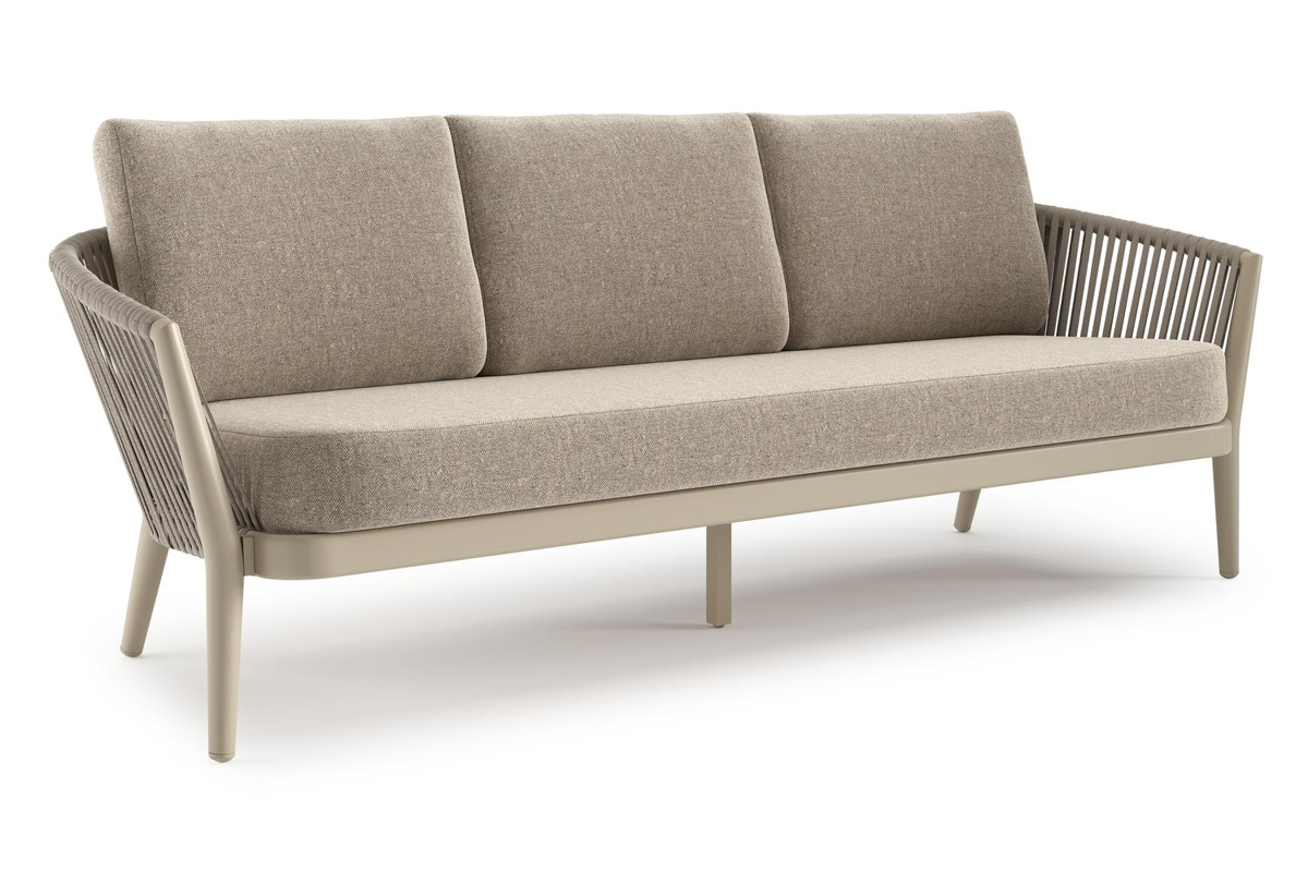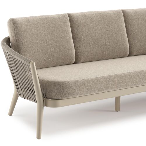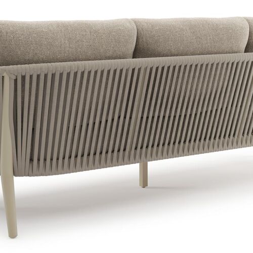 Orso loungebank in beige aluminium en beige verticaal geweven ronde rope met Chartres Pewter all weather sunbrella® luxe kussen | Exterioo