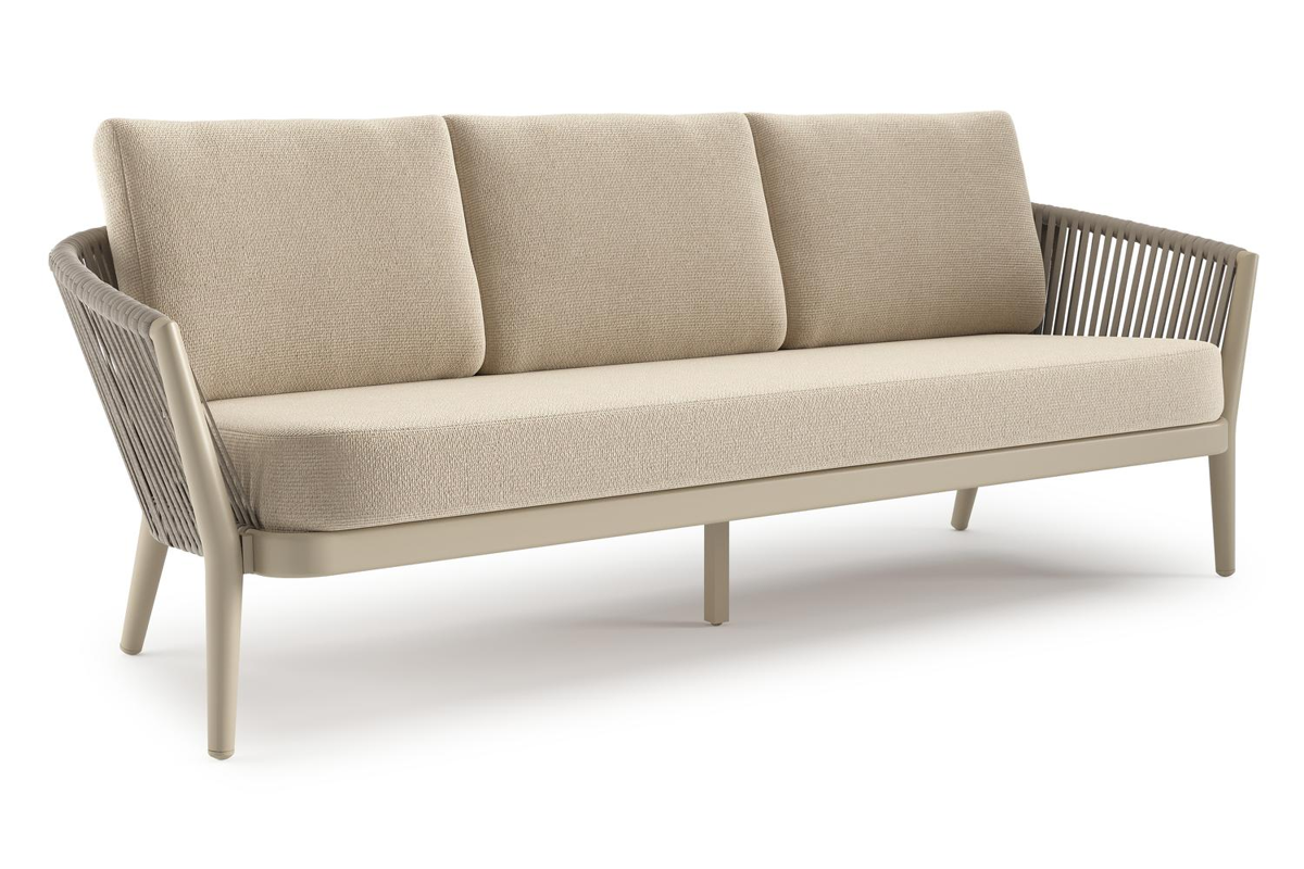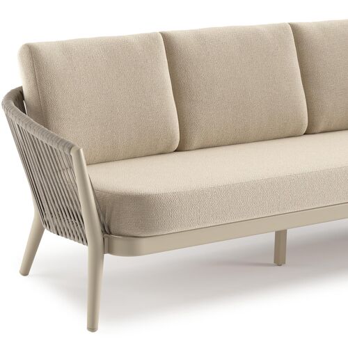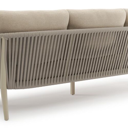 Orso loungebank in beige aluminium en beige verticaal geweven ronde rope met Althea Chalk all weather cosytica kussen | Exterioo