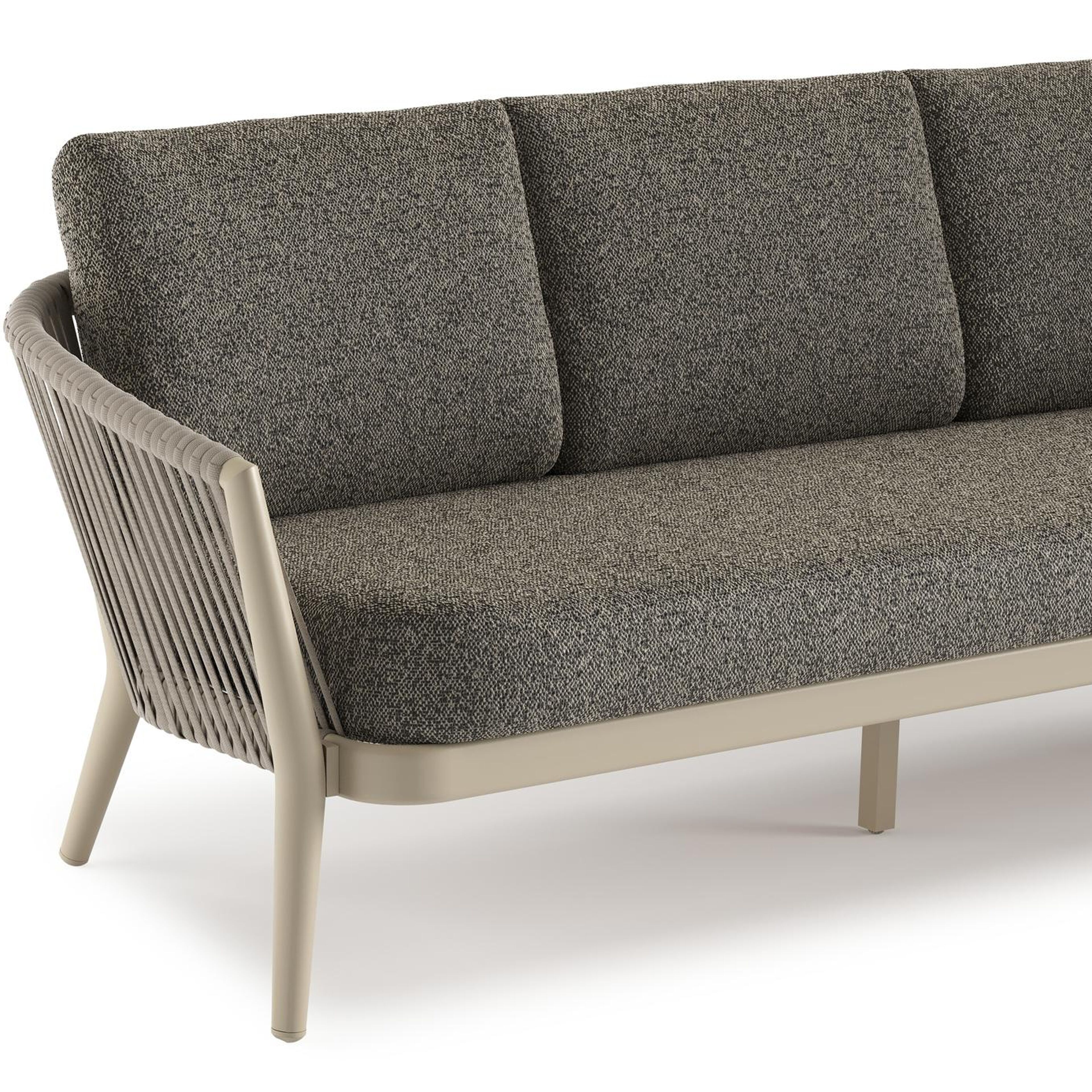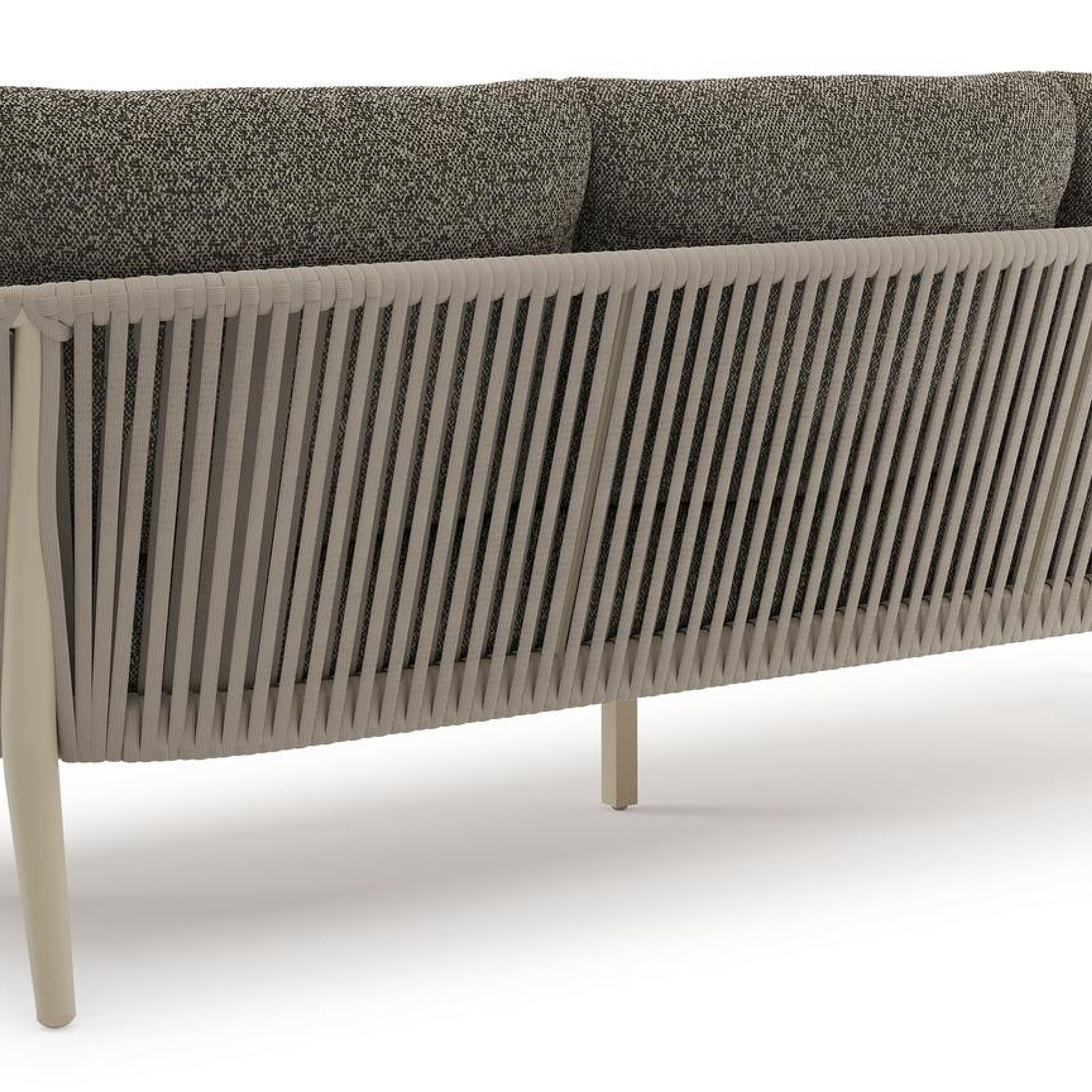 Orso loungebank in beige aluminium en beige verticaal geweven ronde rope met Marbella Tunder all weather cosytica kussen | Exterioo tuinmeubelen