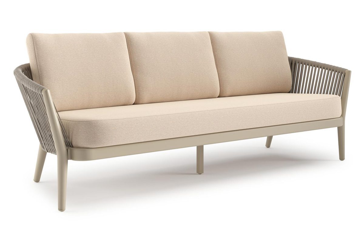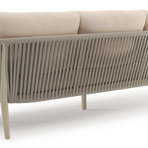 Orso loungebank in beige aluminium en beige verticaal geweven ronde rope met Heritage Papyrus all weather sunbrella® luxe kussen | Exterioo