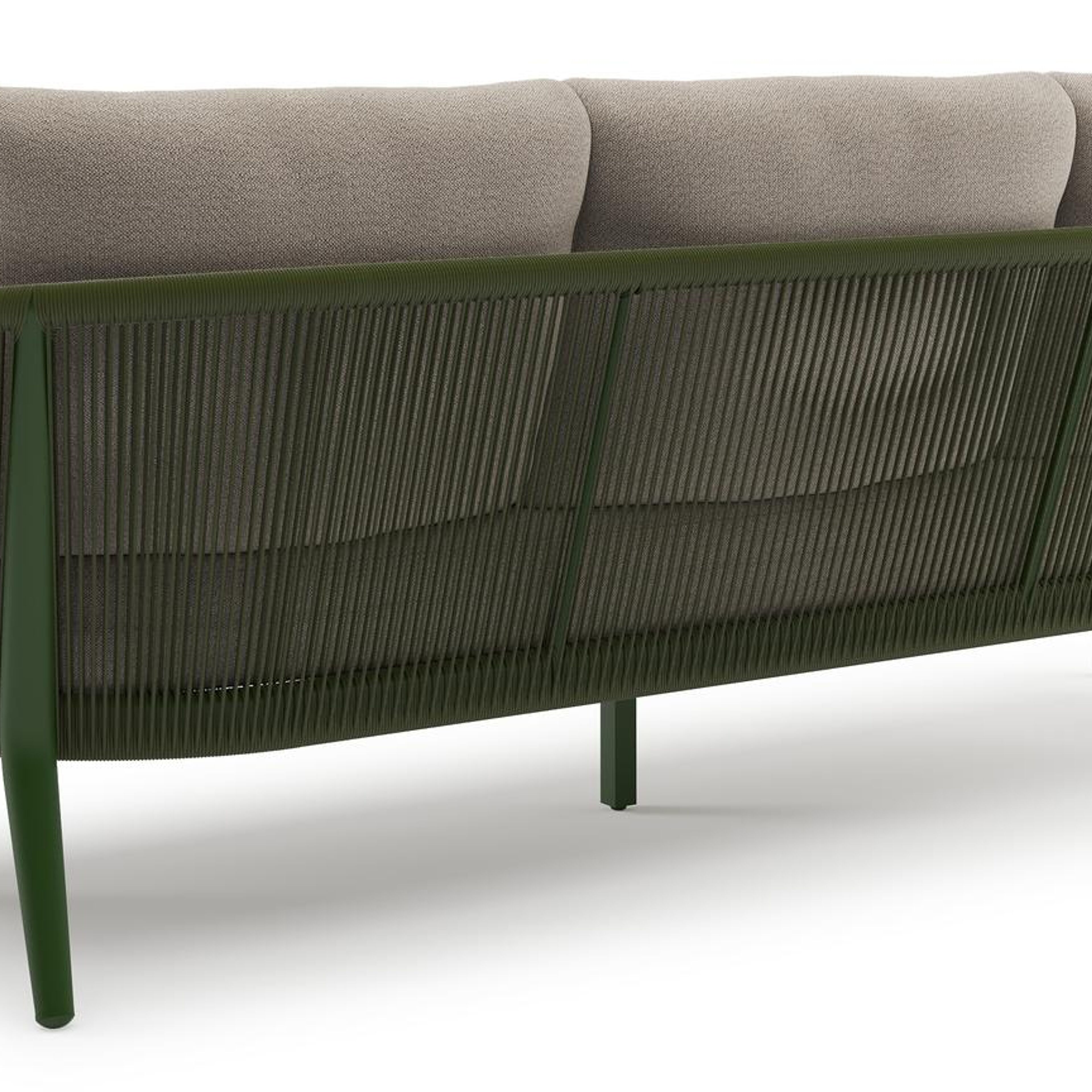 Orso loungebank in groen aluminium en groen verticaal geweven ronde rope met Savane Coconut all weather sunbrella® luxe kussen | Exterioo tuinmeubelen
