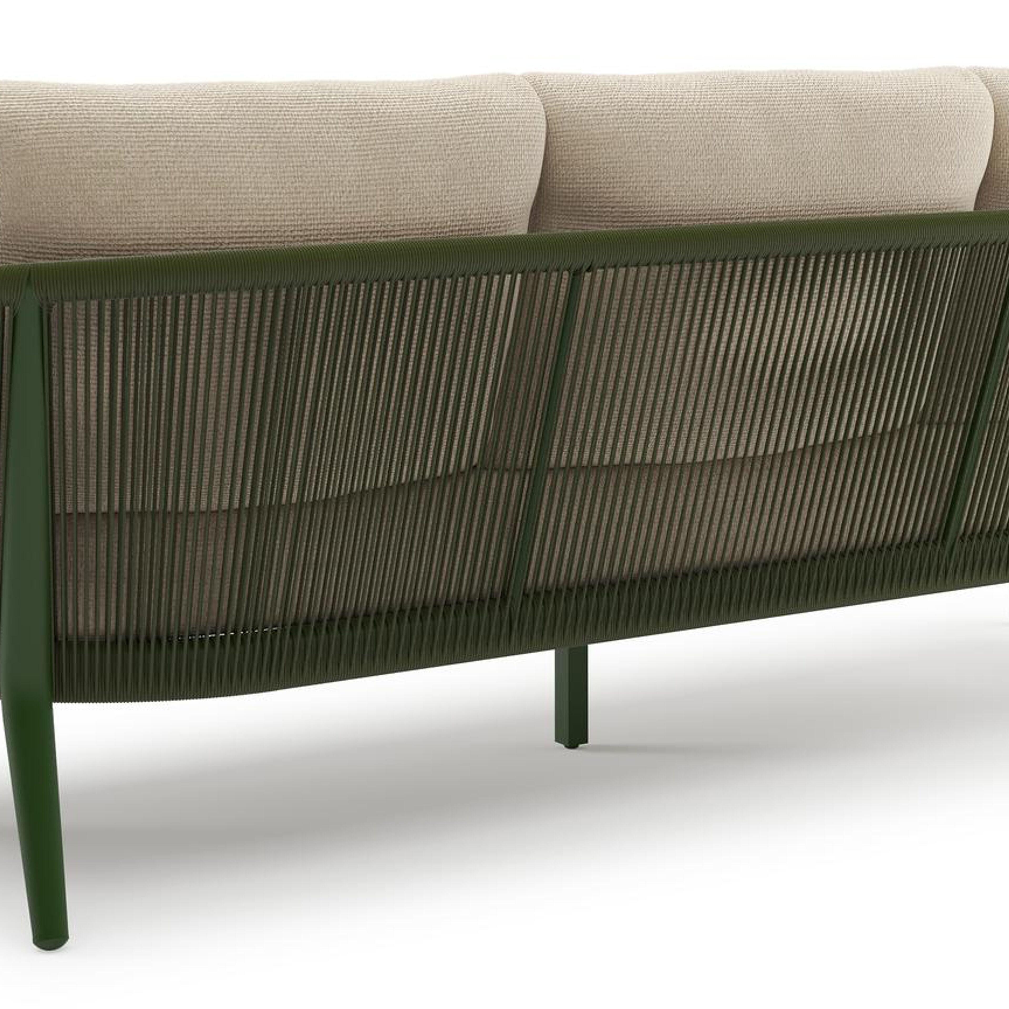 Orso loungebank in groen aluminium en groen verticaal geweven ronde rope met Althea Chalk all weather cosytica kussen | Exterioo tuinmeubelen