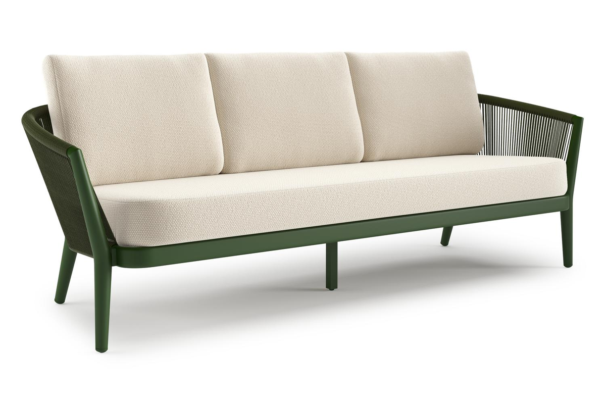 Orso loungebank in groen aluminium en groen verticaal geweven ronde rope met Althea Off White all weather cosytica kussen | Exterioo
