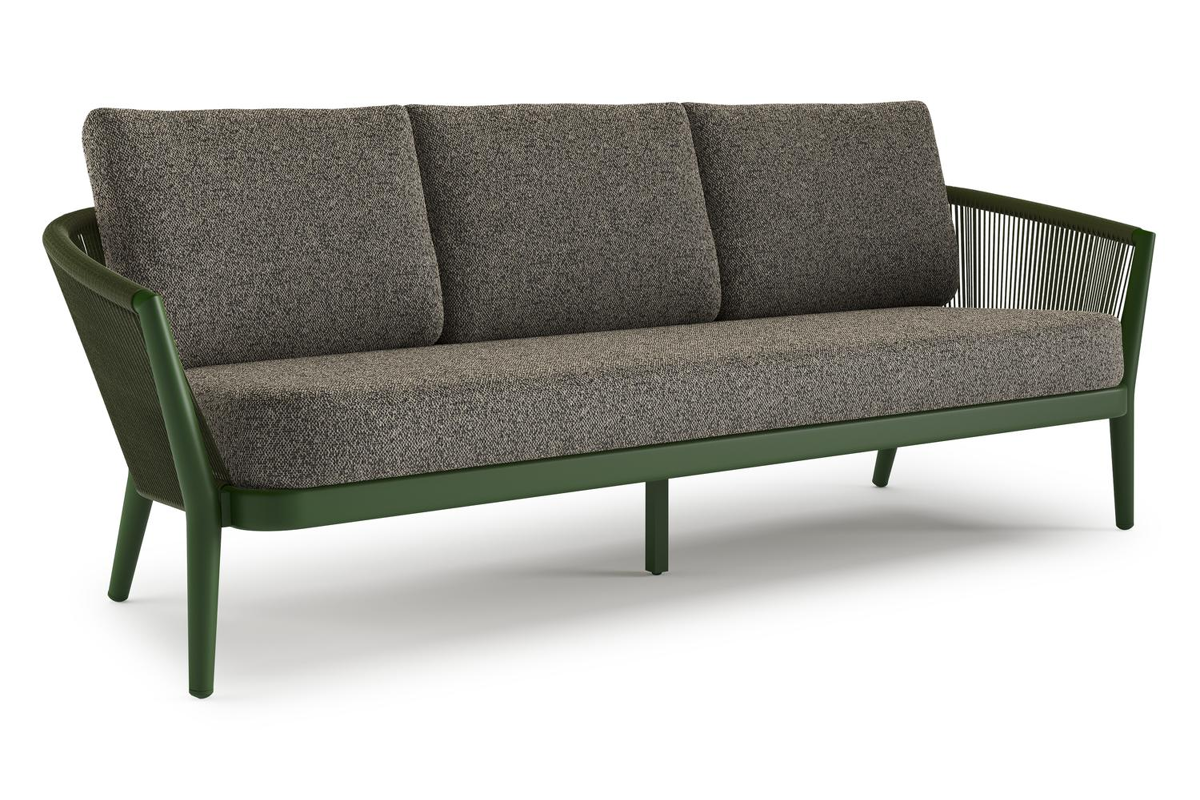 Orso loungebank in groen aluminium en groen verticaal geweven ronde rope met Marbella Tunder all weather cosytica kussen | Exterioo