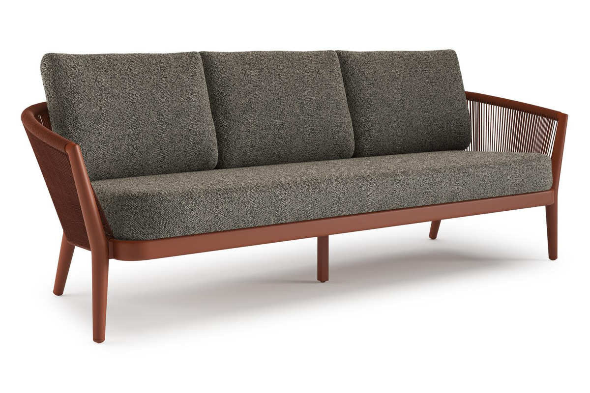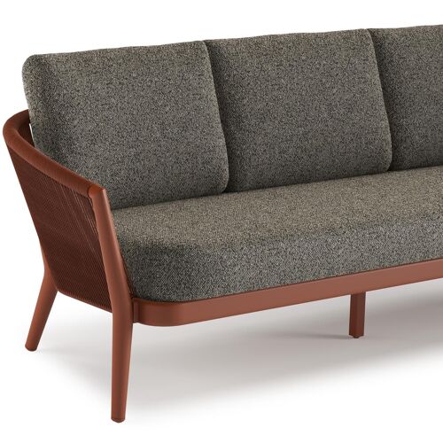 Orso loungebank in roestbruin aluminium en roestbruin verticaal geweven ronde rope met Marbella Tunder all weather cosytica kussen | Exterioo