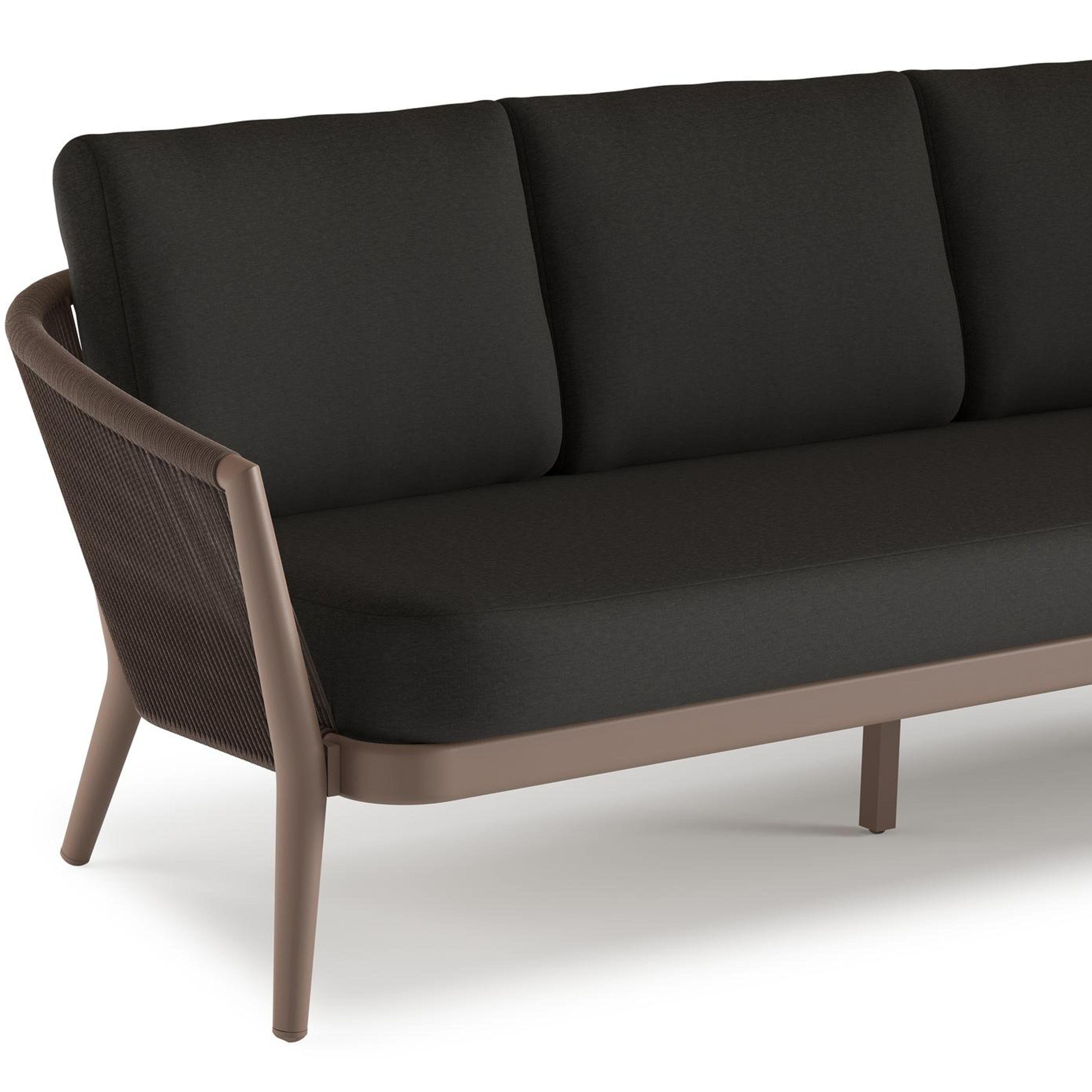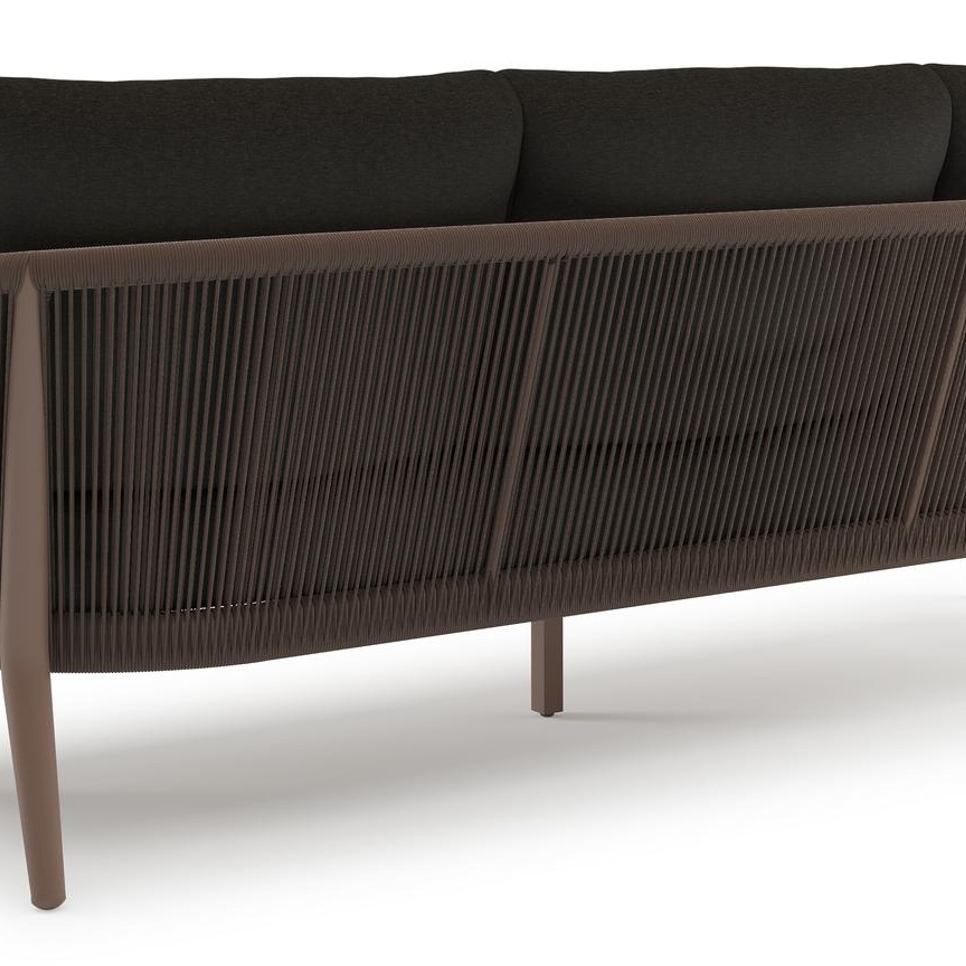 Orso loungebank in taupe aluminiumen zwart verticaal geweven ronde rope met Heritage Char all weather sunbrella® luxe kussen | Exterioo tuinmeubelen