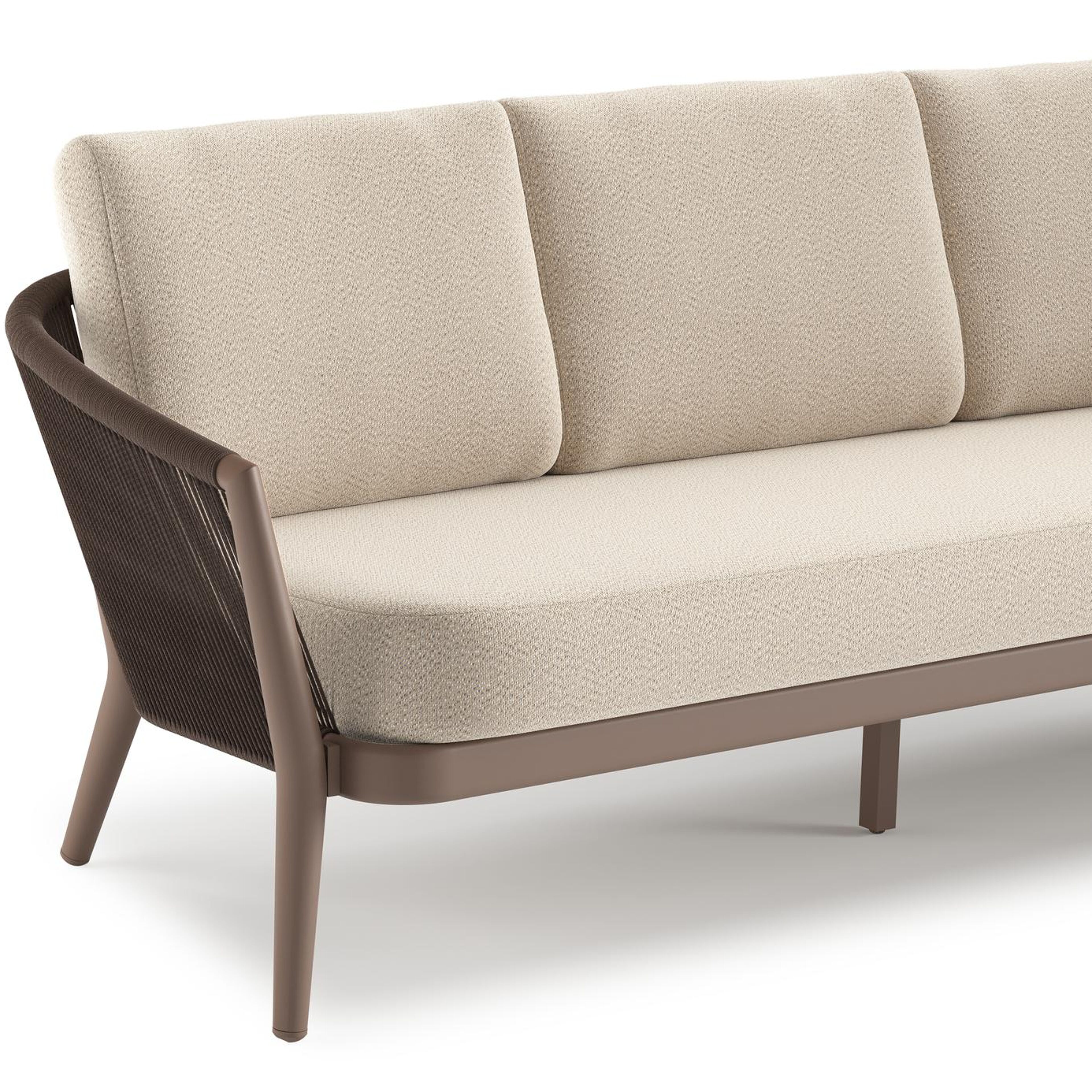Orso loungebank in taupe aluminiumen zwart verticaal geweven ronde rope met Lopi Sand all weather sunbrella® luxe kussen | Exterioo tuinmeubelen