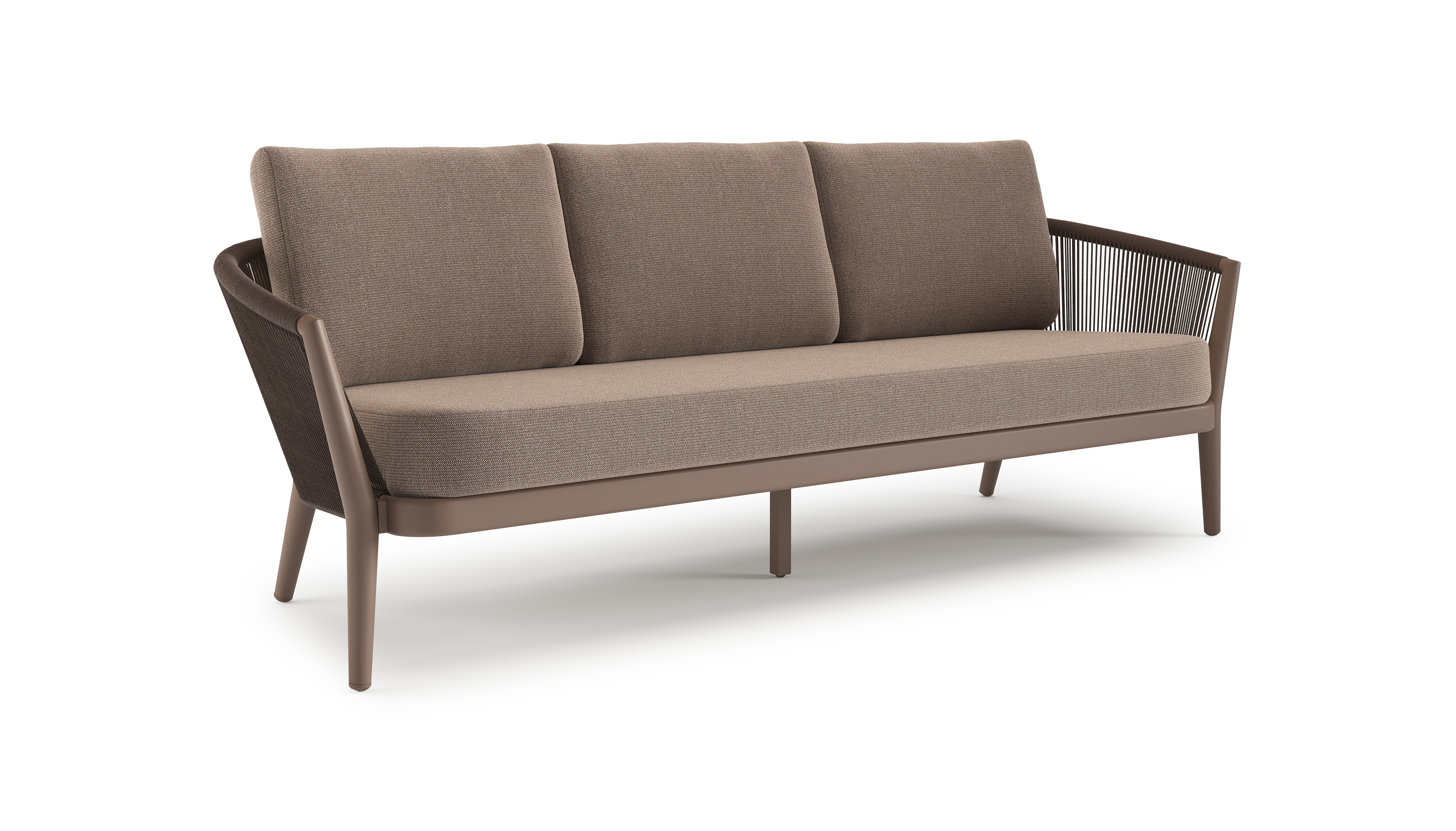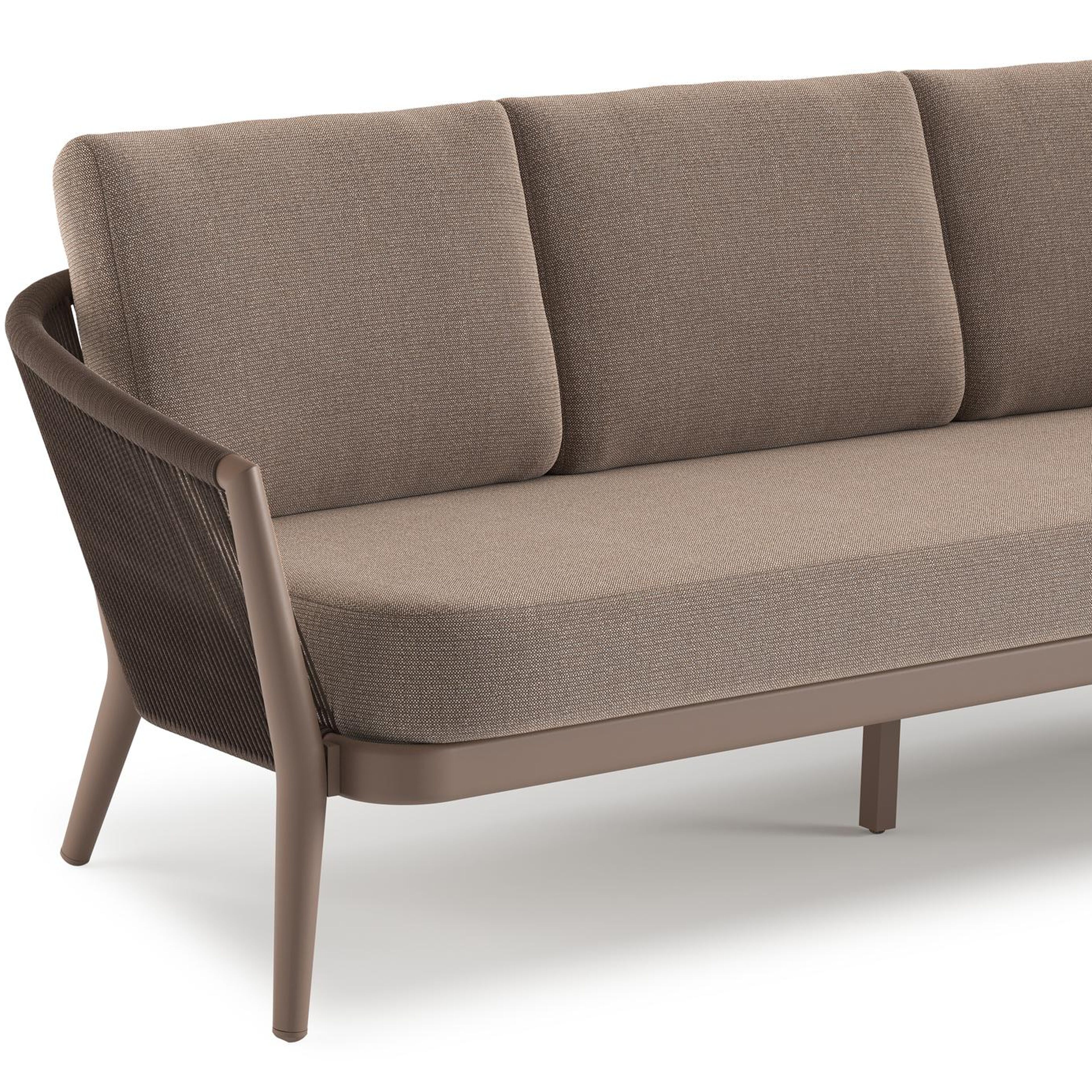 Orso loungebank in taupe aluminiumen zwart verticaal geweven ronde rope met Savane Earth all weather sunbrella® luxe kussen | Exterioo tuinmeubelen
