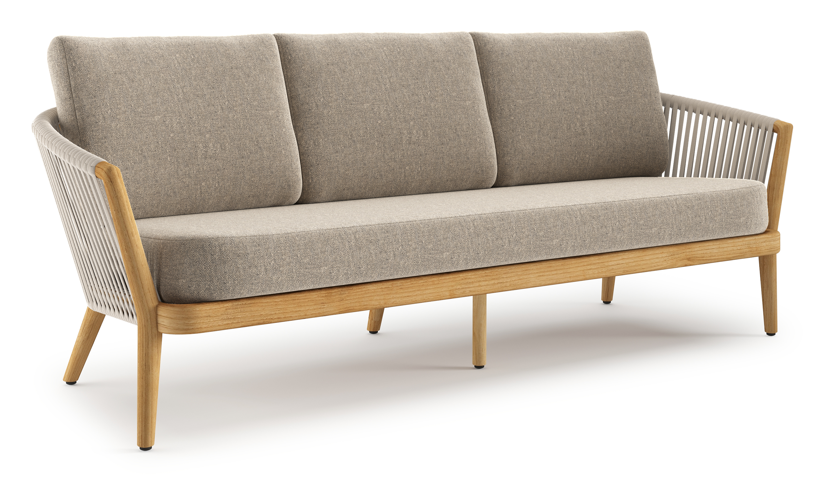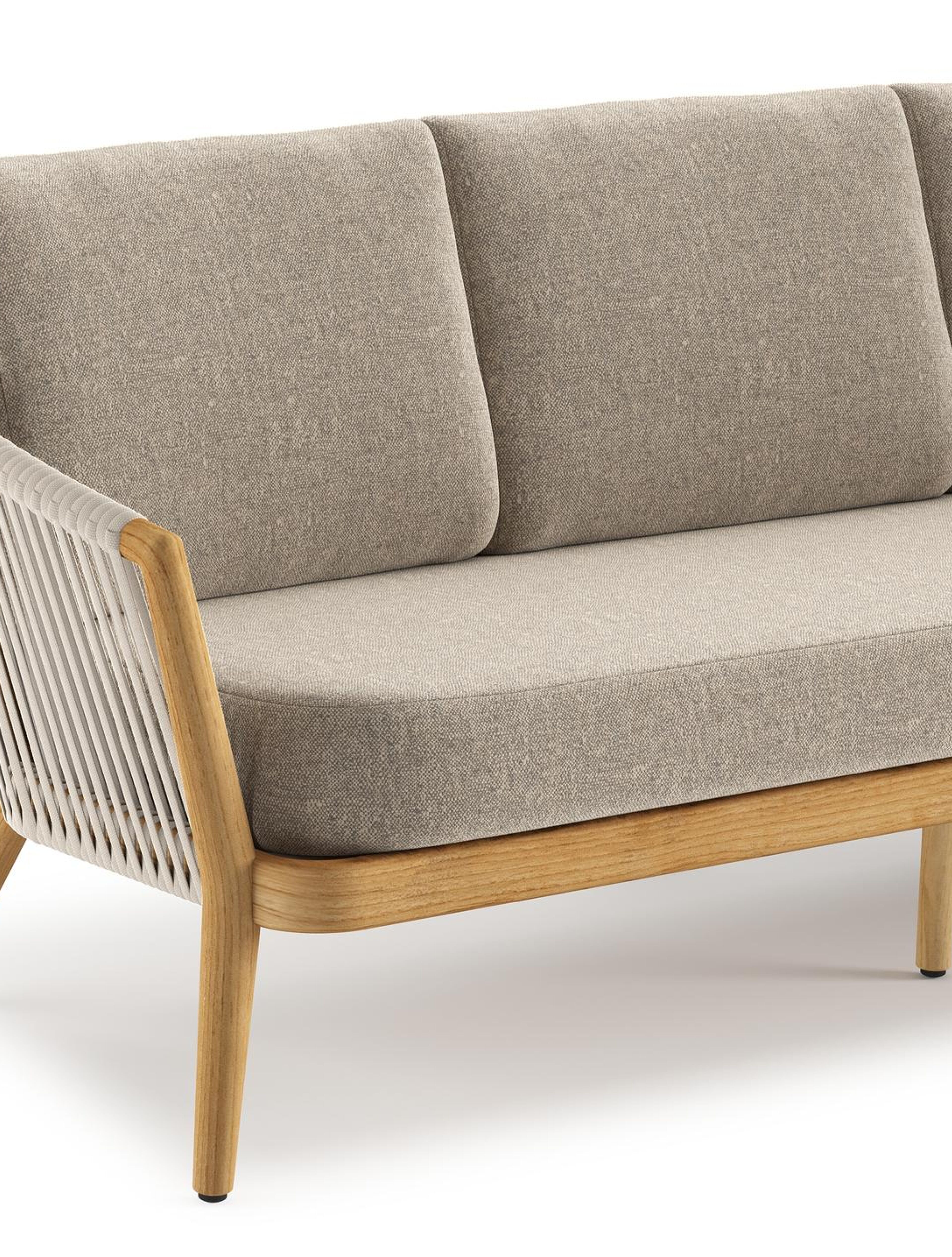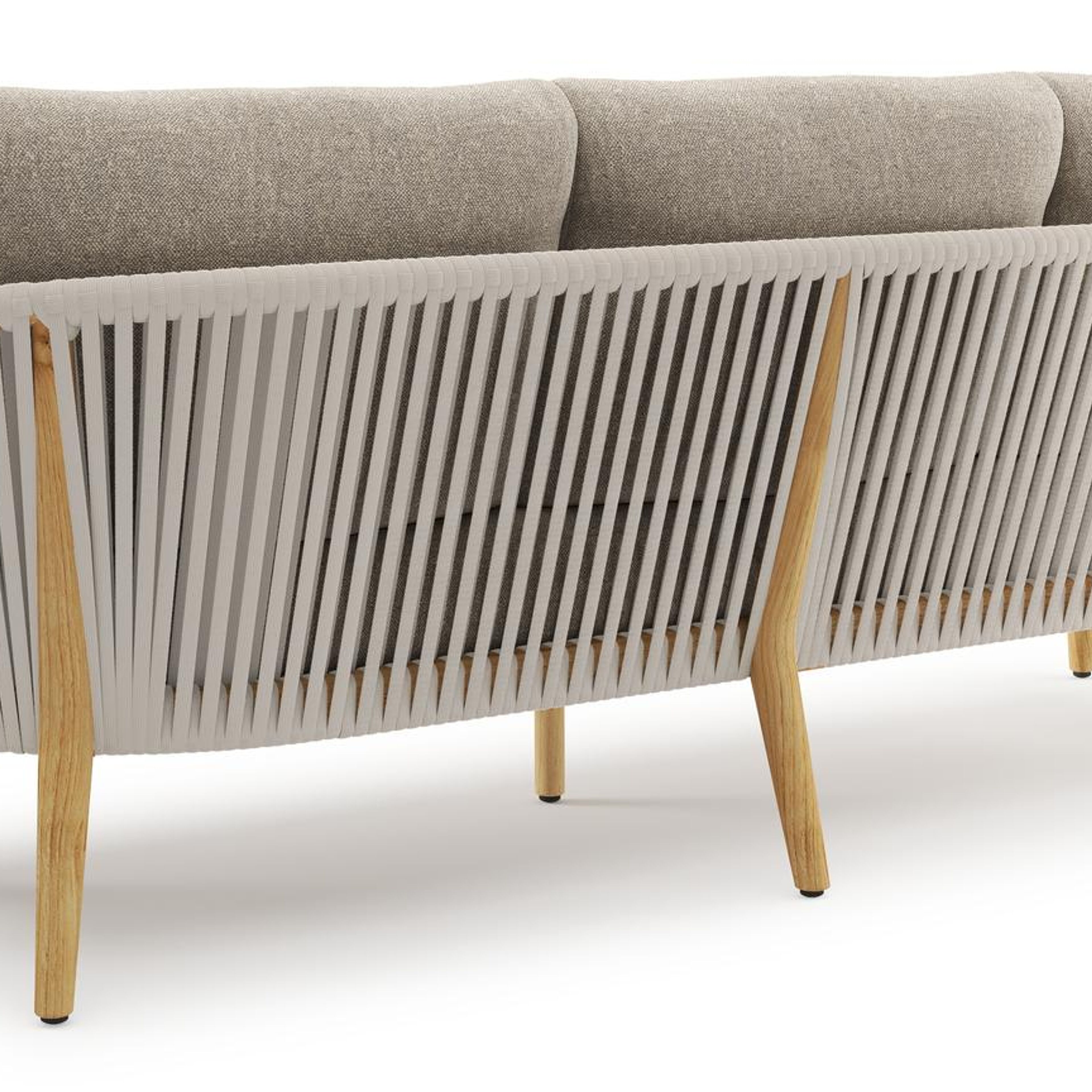 Orso loungebank in teak en beige verticaal geweven luxe vlakke rope met Chartres Pewter all weather sunbrella® luxe kussen | Exterioo tuinmeubelen