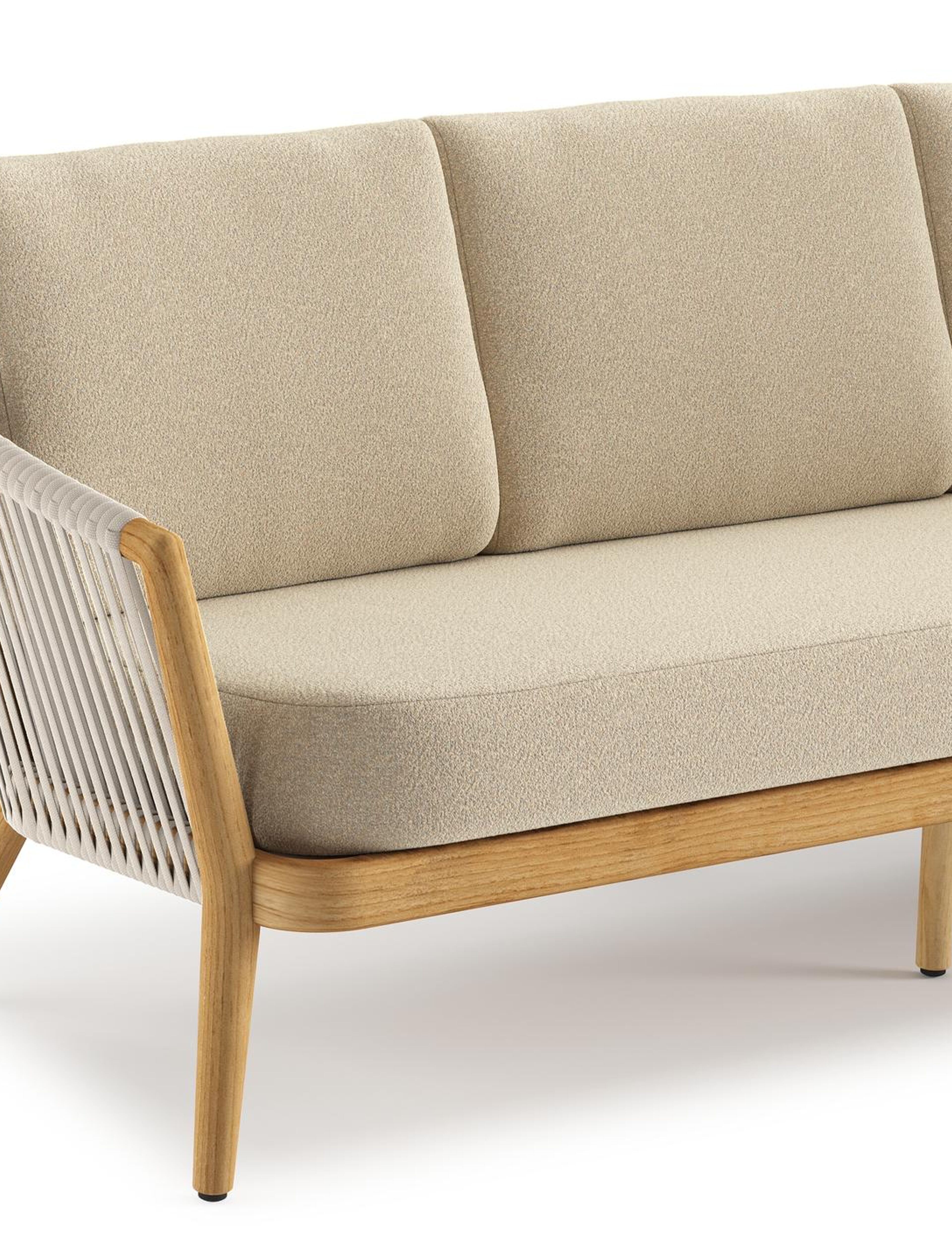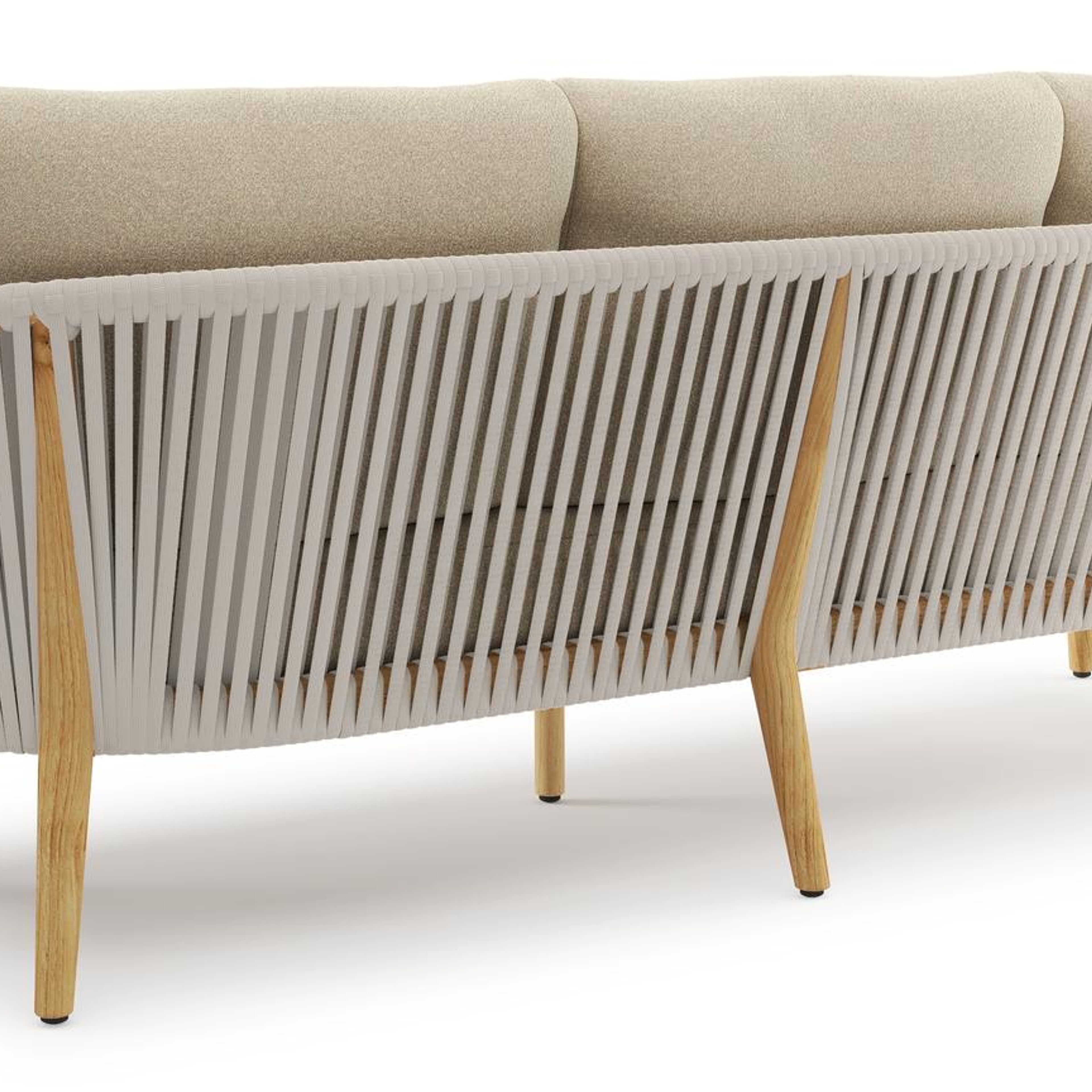 Orso loungebank in teak en beige verticaal geweven luxe vlakke rope met Soul Papyrus all weather solica kussen | Exterioo tuinmeubelen