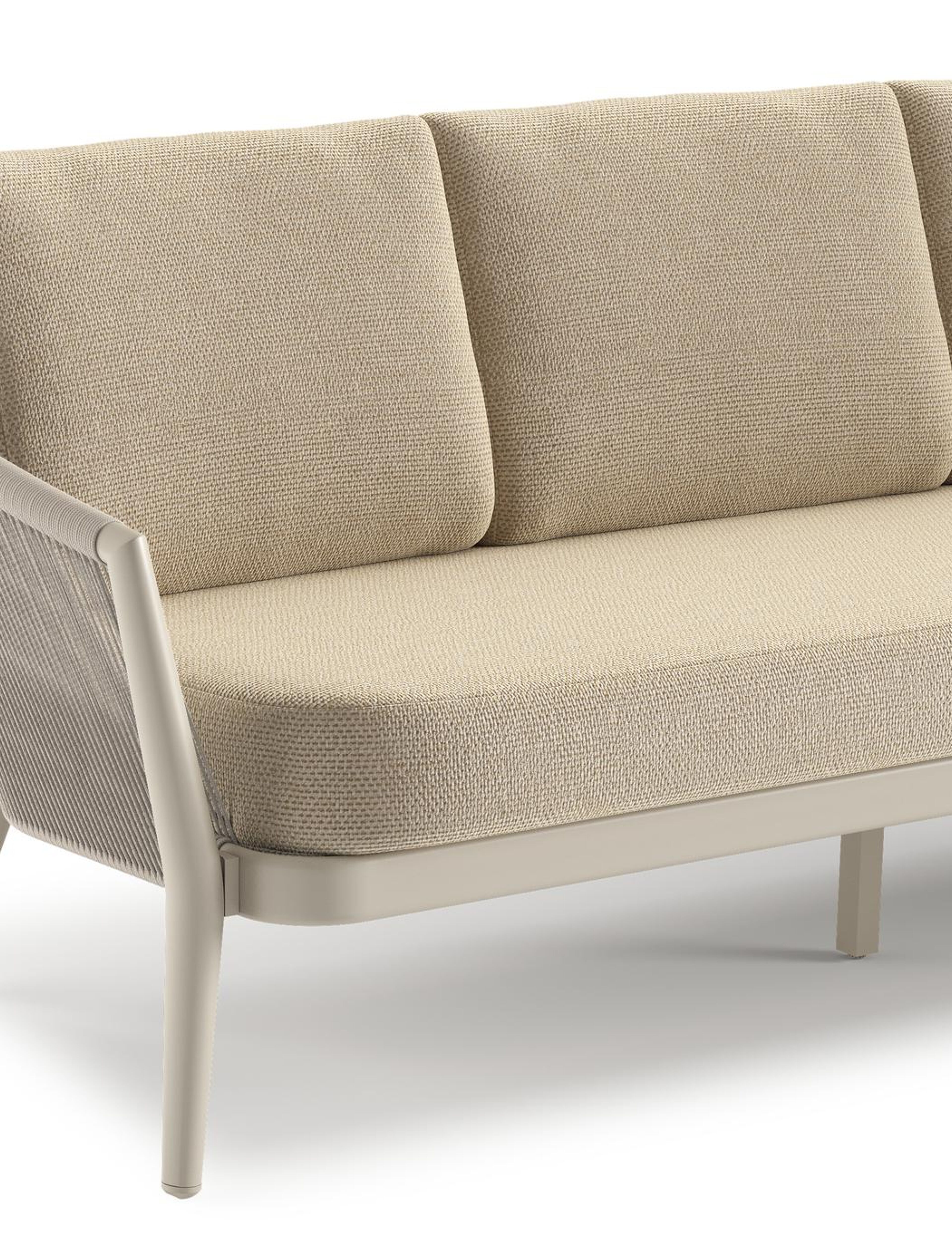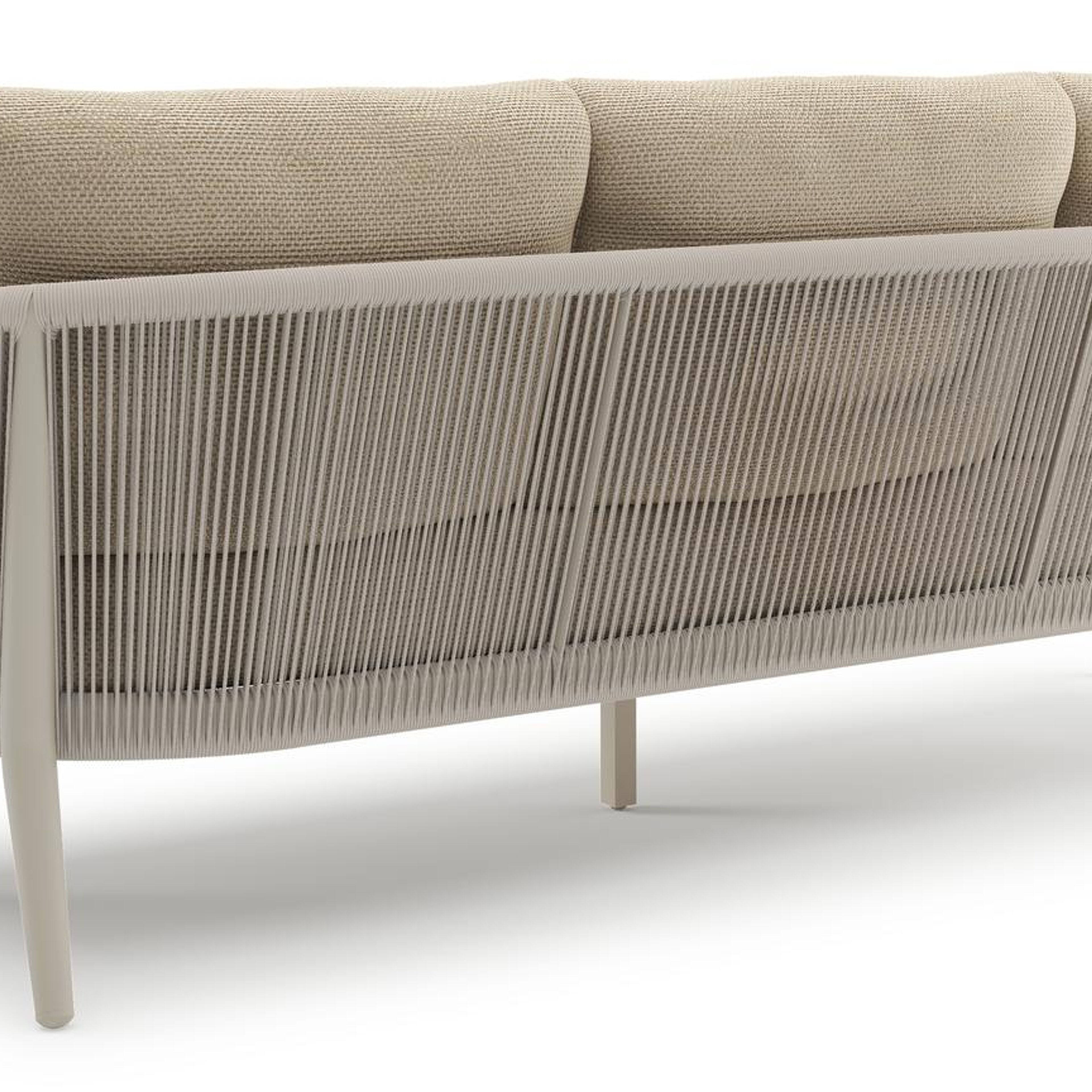 Orso loungebank in beige aluminium en beige verticaal geweven ronde rope met Althea Camel all weather cosytica kussen | Exterioo tuinmeubelen