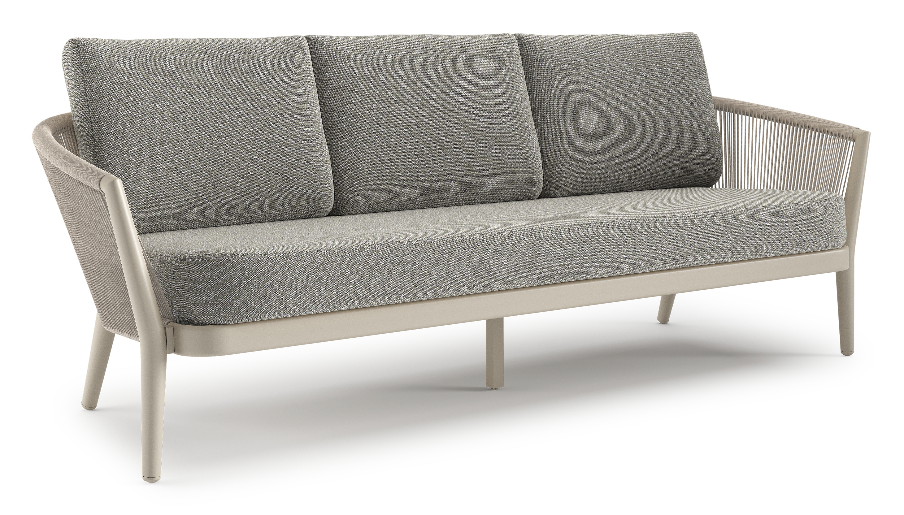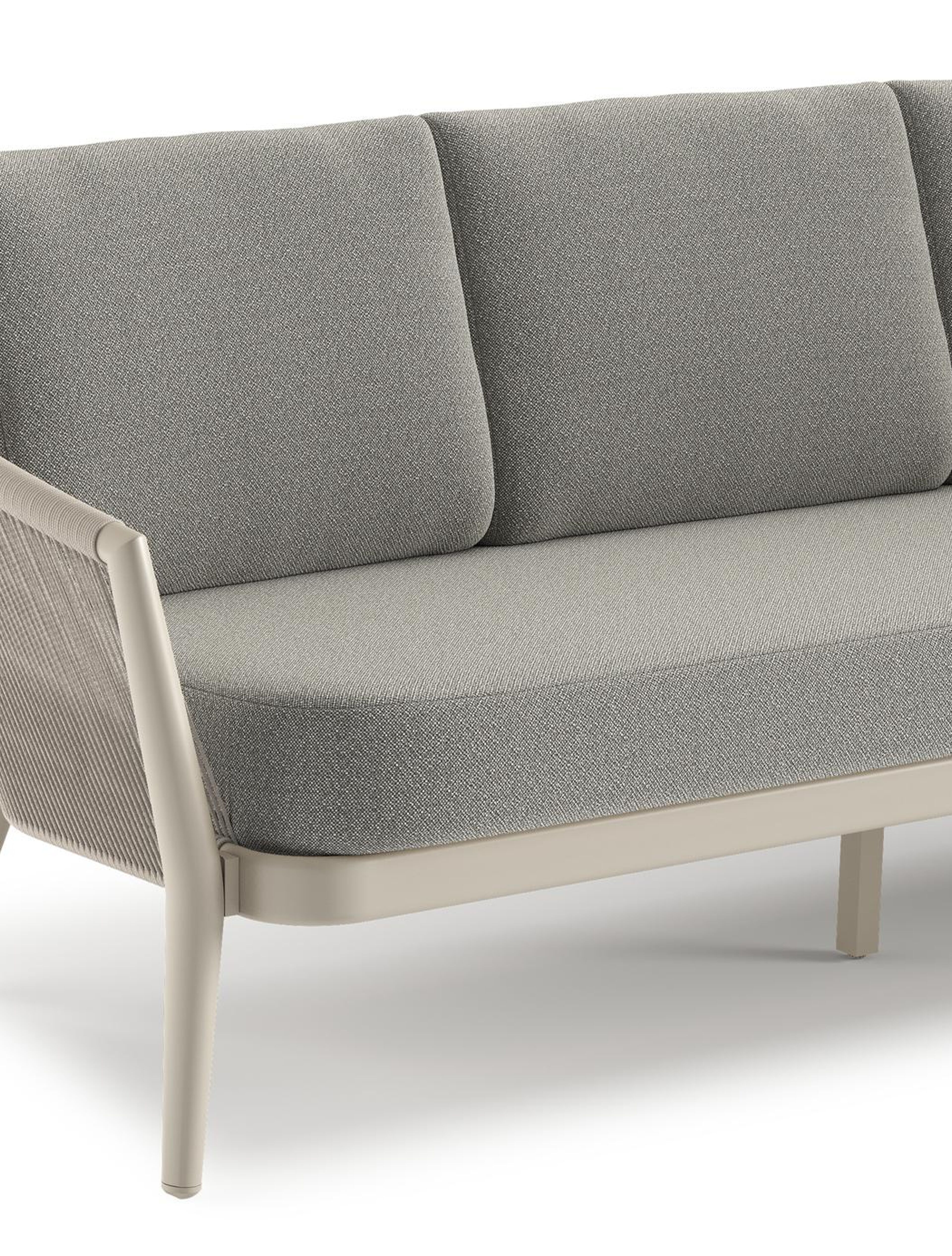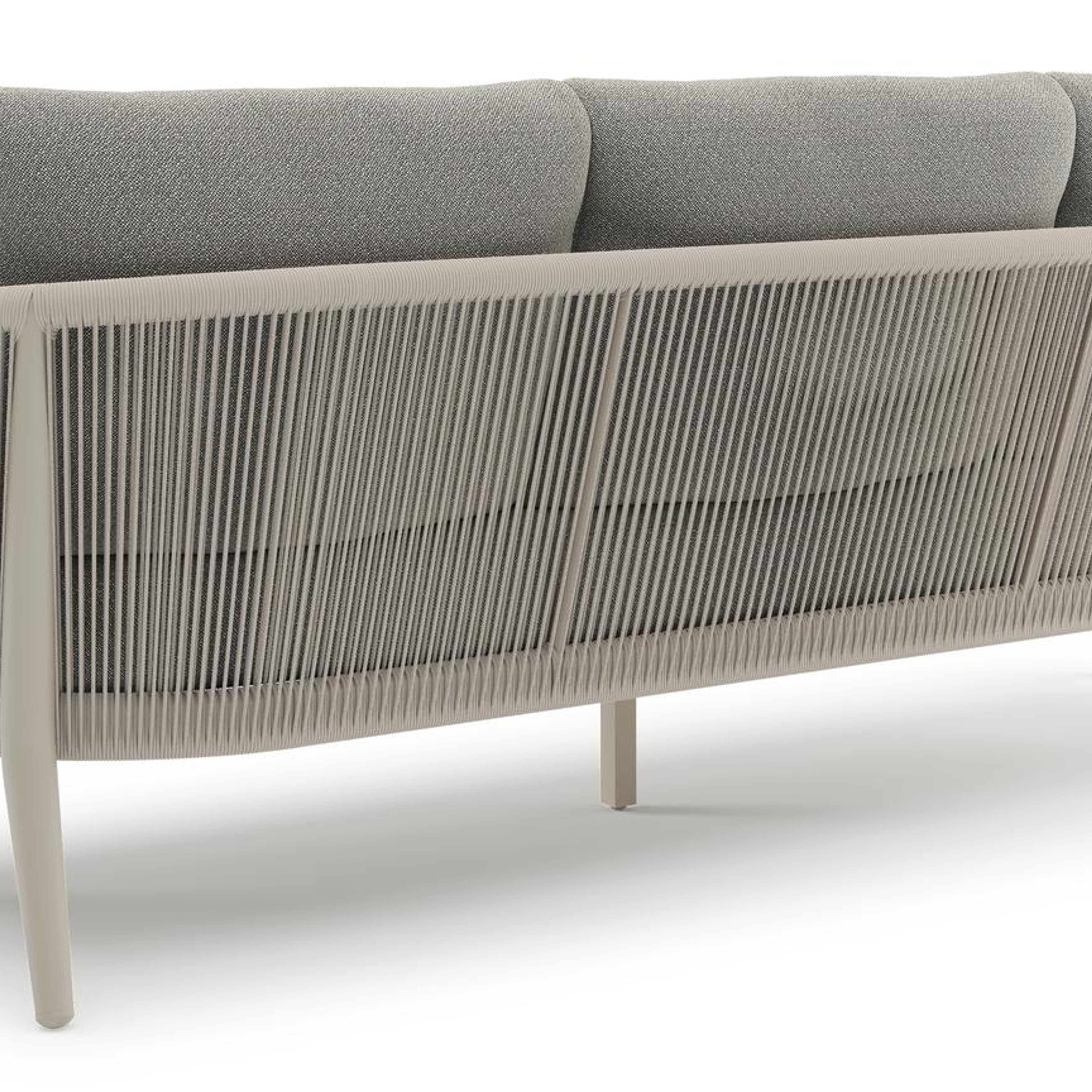 Orso loungebank in beige aluminium en beige verticaal geweven ronde rope met Savane Tunder all weather sunbrella® luxe kussen | Exterioo tuinmeubelen