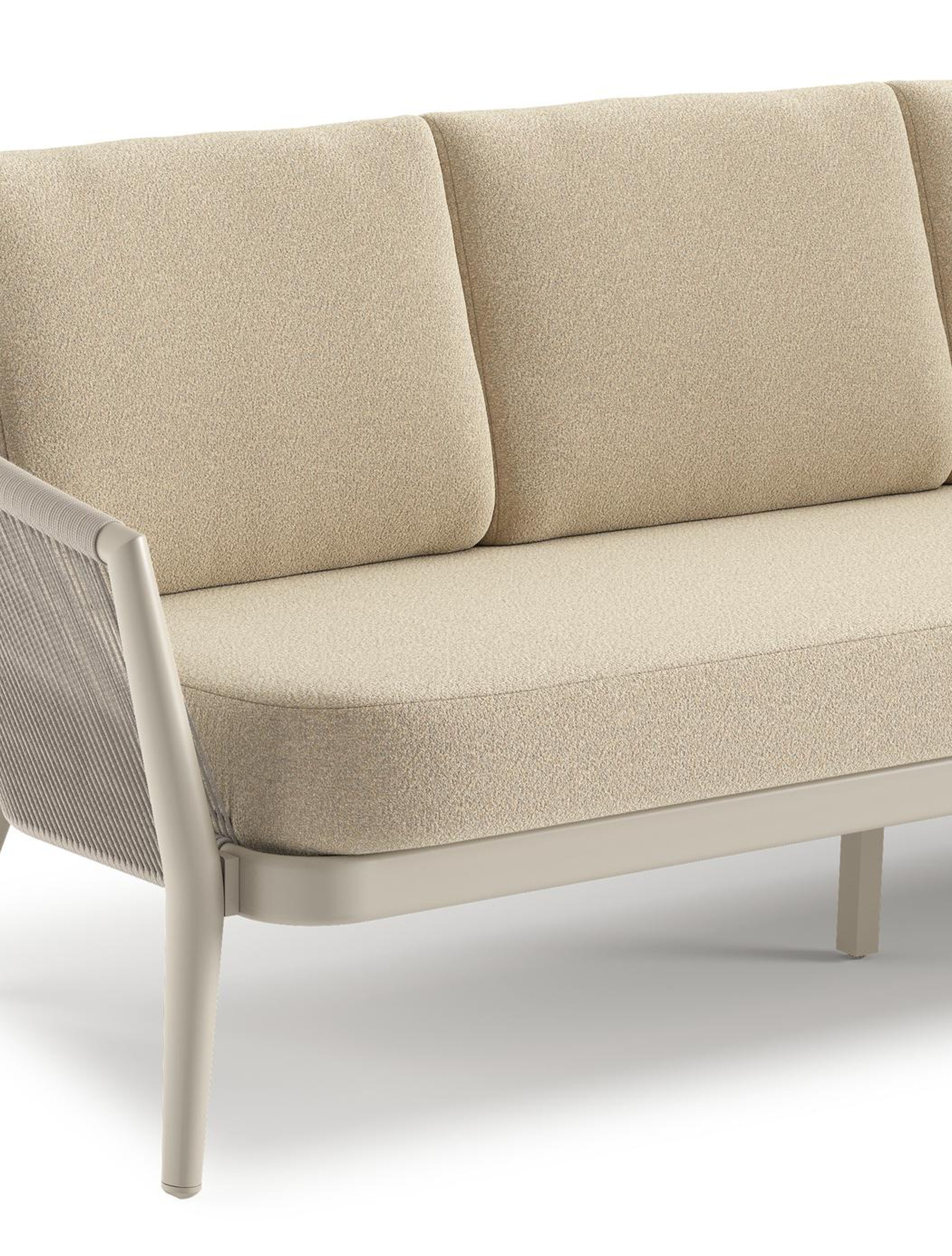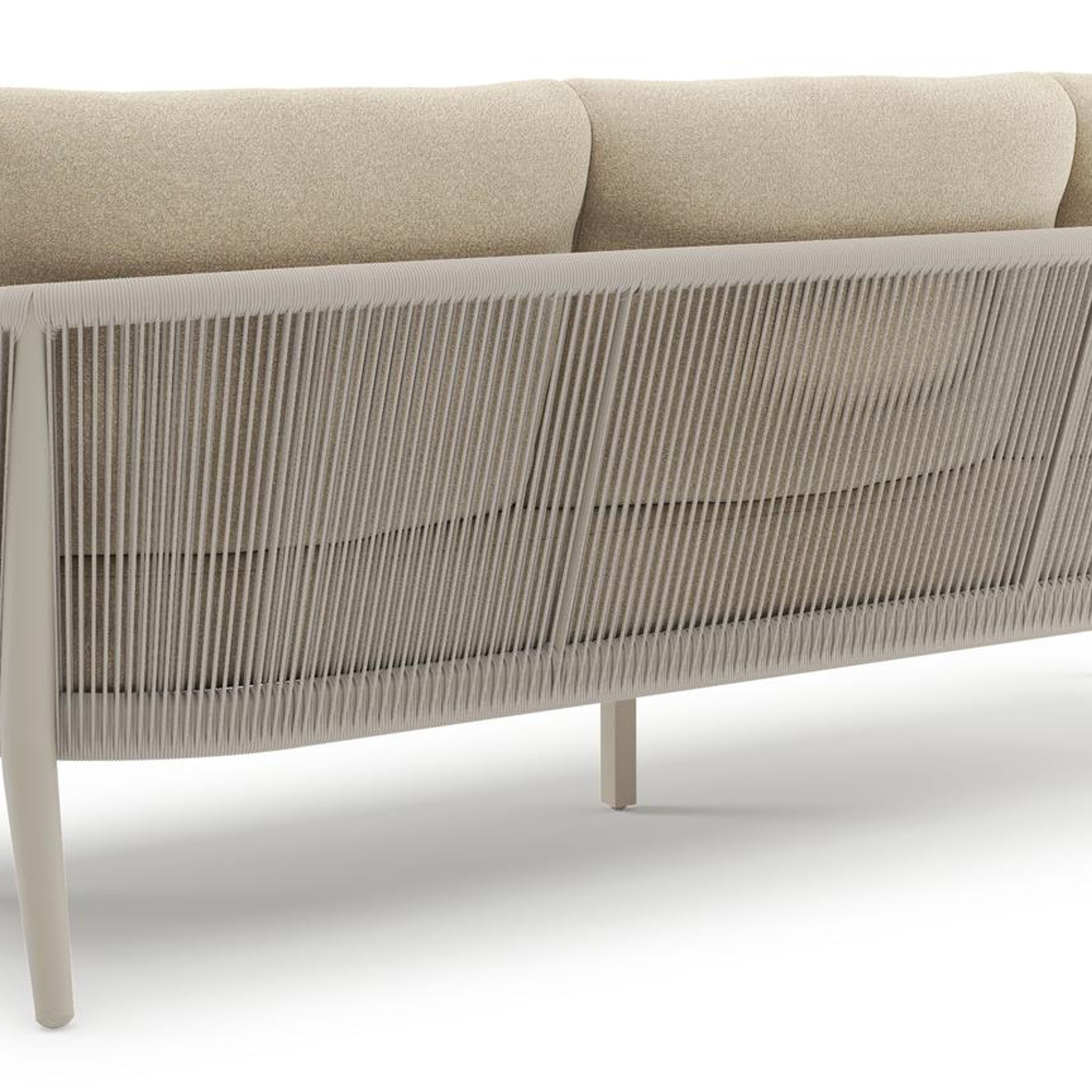 Orso loungebank in beige aluminium en beige verticaal geweven ronde rope met Soul Papyrus all weather solica kussen | Exterioo tuinmeubelen