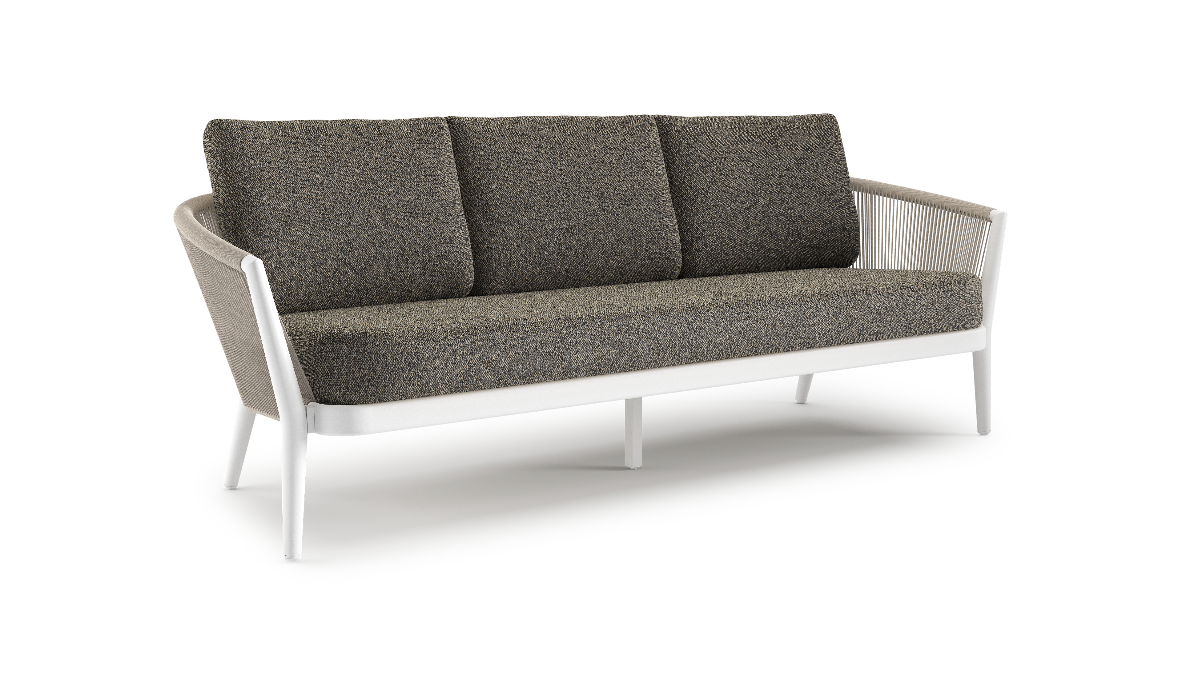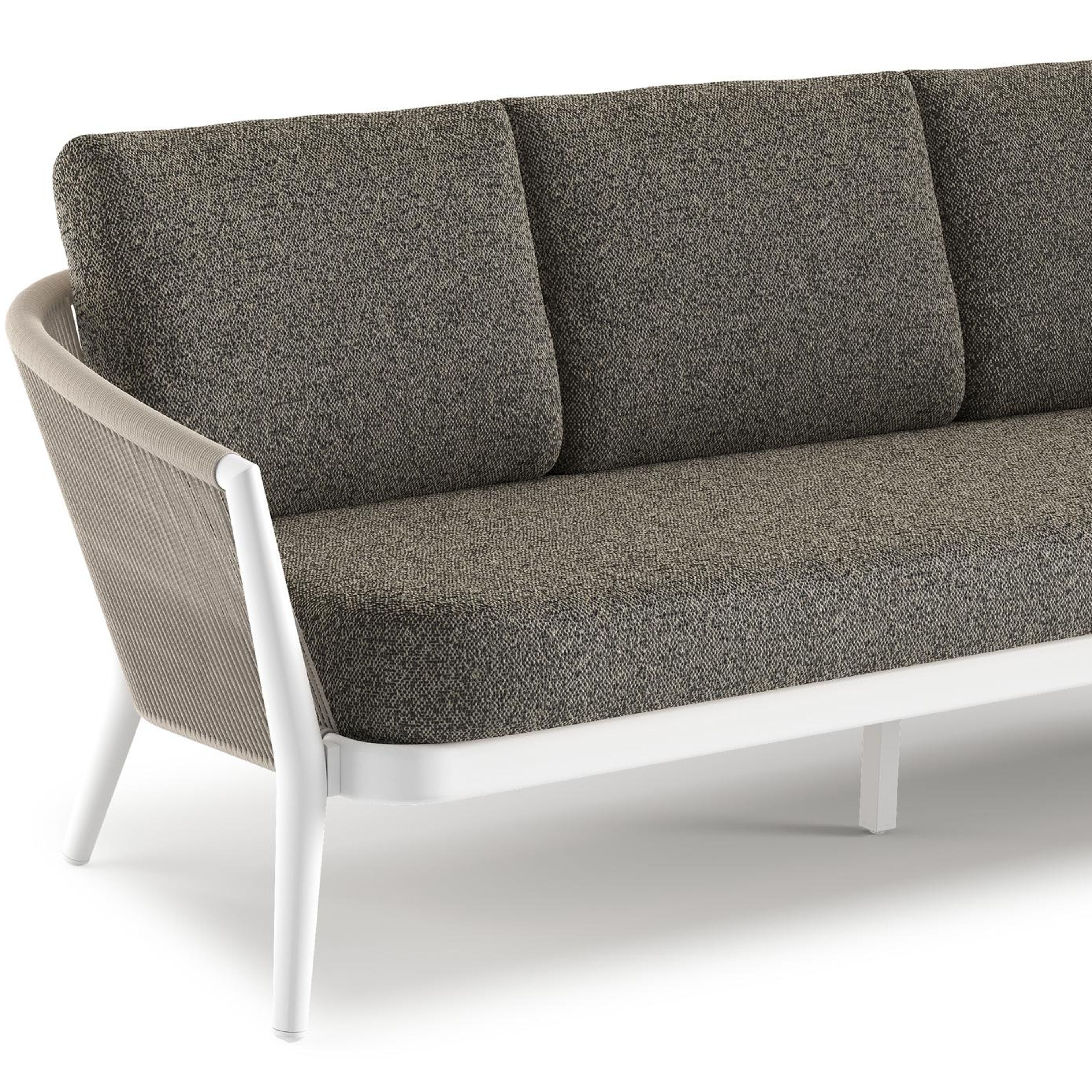 Orso loungebank in wit aluminium en beige verticaal geweven ronde rope met Marbella Tunder all weather cosytica kussen | Exterioo tuinmeubelen