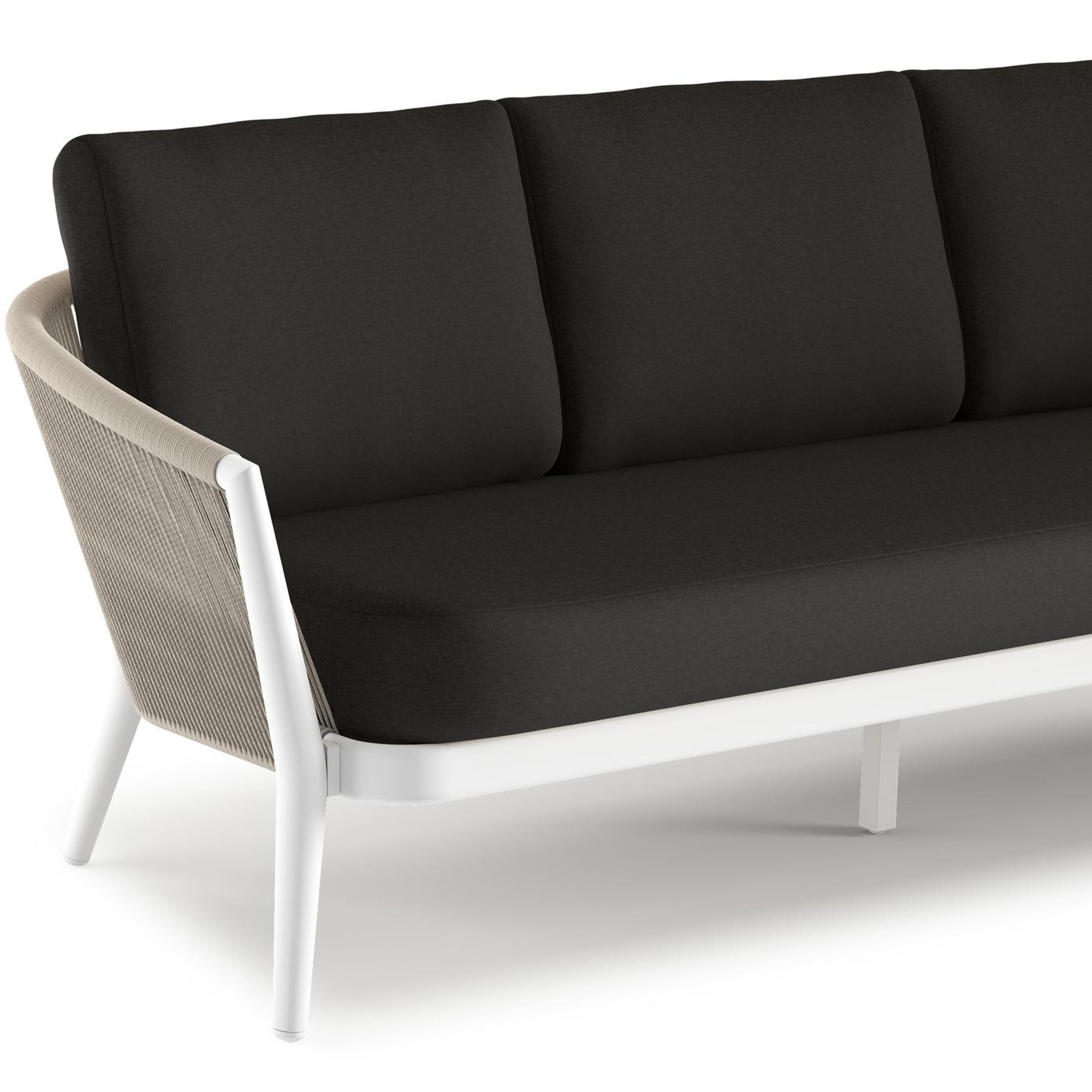 Orso loungebank in wit aluminium en beige verticaal geweven ronde rope met Heritage Char all weather sunbrella® luxe kussen | Exterioo tuinmeubelen