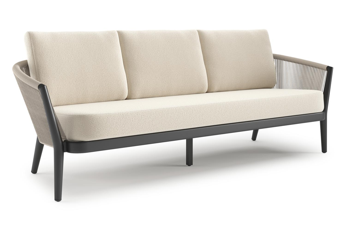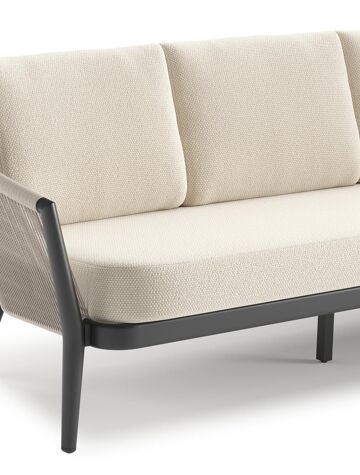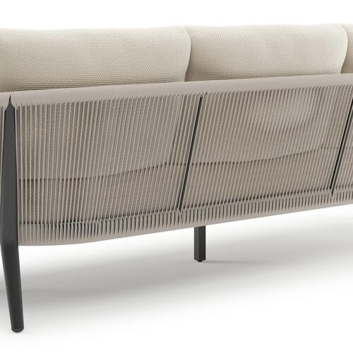 Orso loungebank in zwart aluminium en beige verticaal geweven ronde rope met Althea Off White all weather cosytica kussen | Exterioo