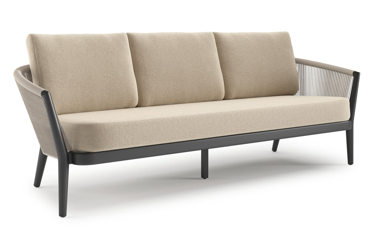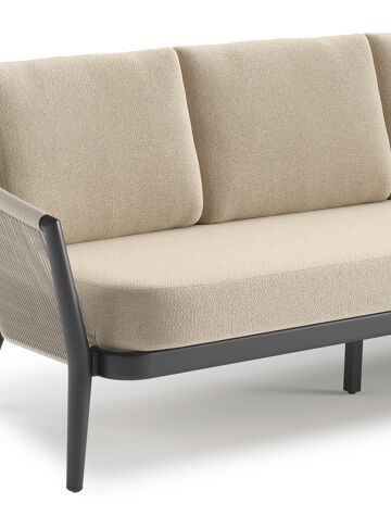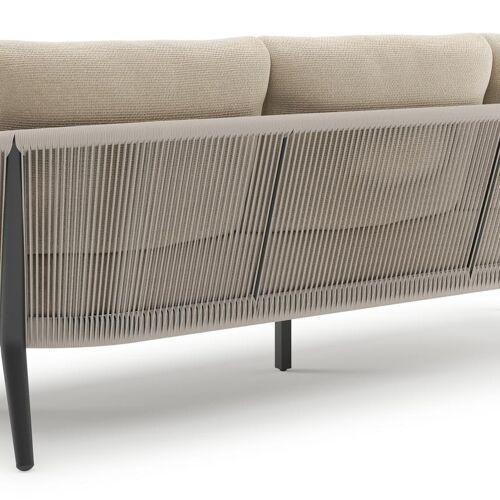 Orso loungebank in zwart aluminium en beige verticaal geweven ronde rope met Althea Chalk all weather cosytica kussen | Exterioo