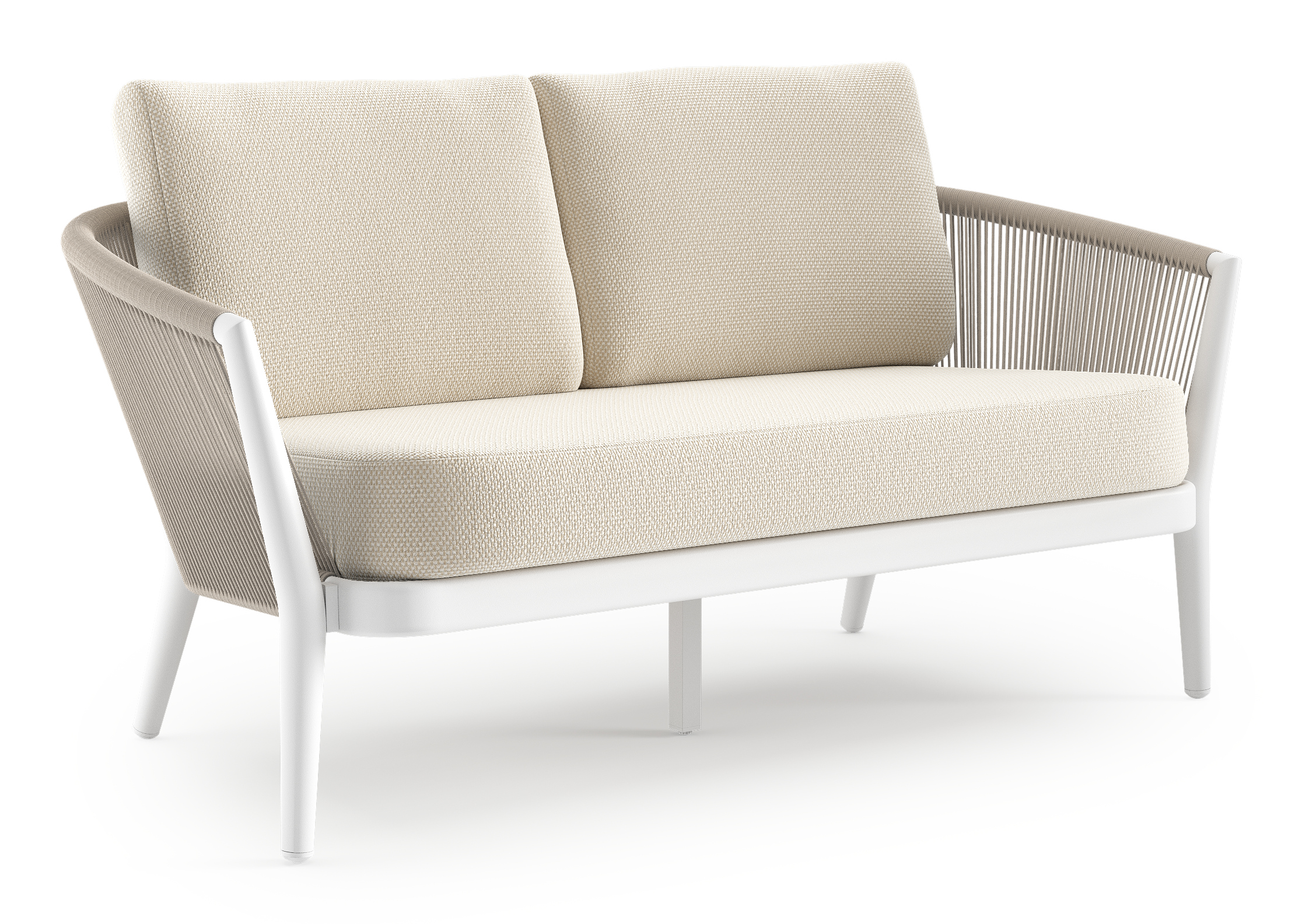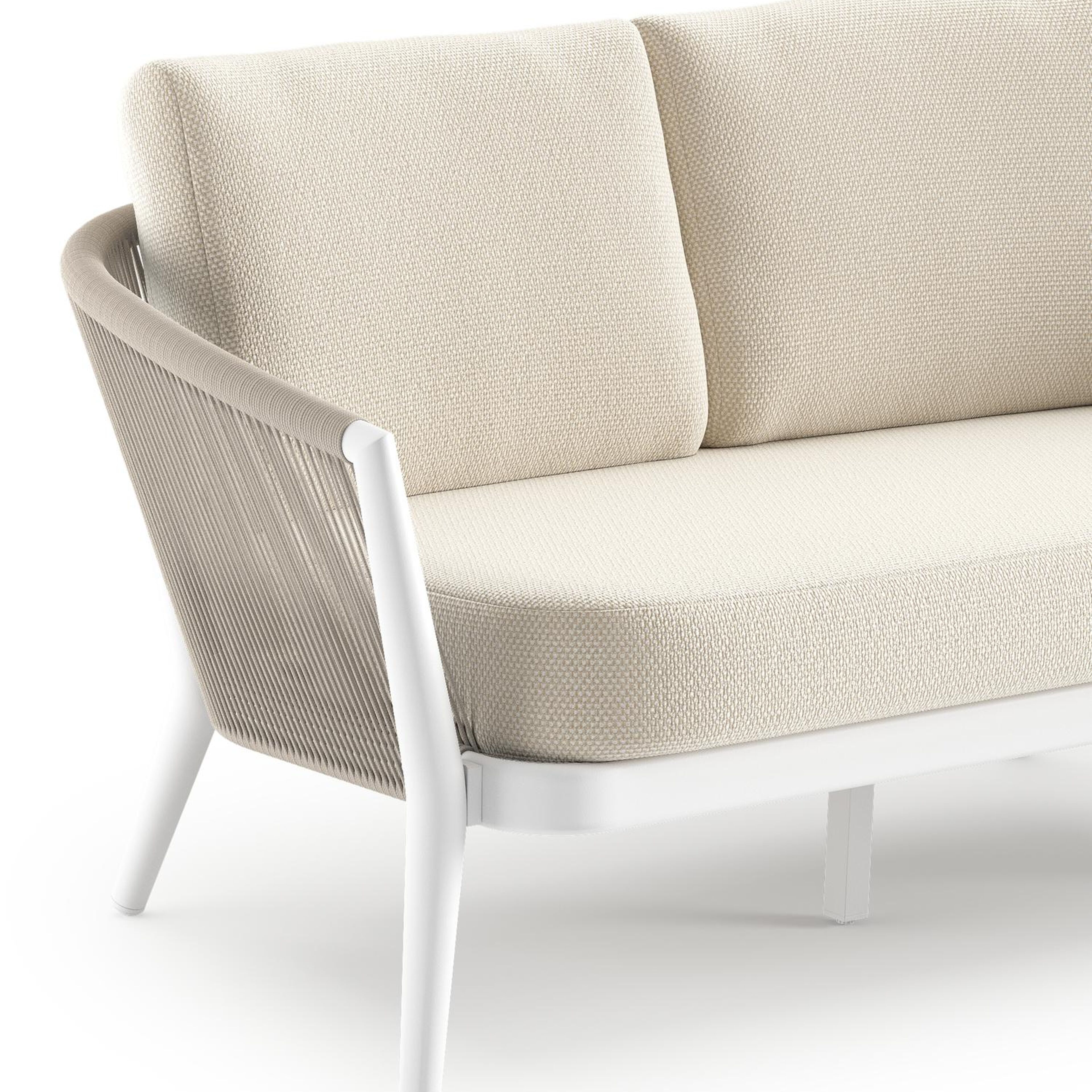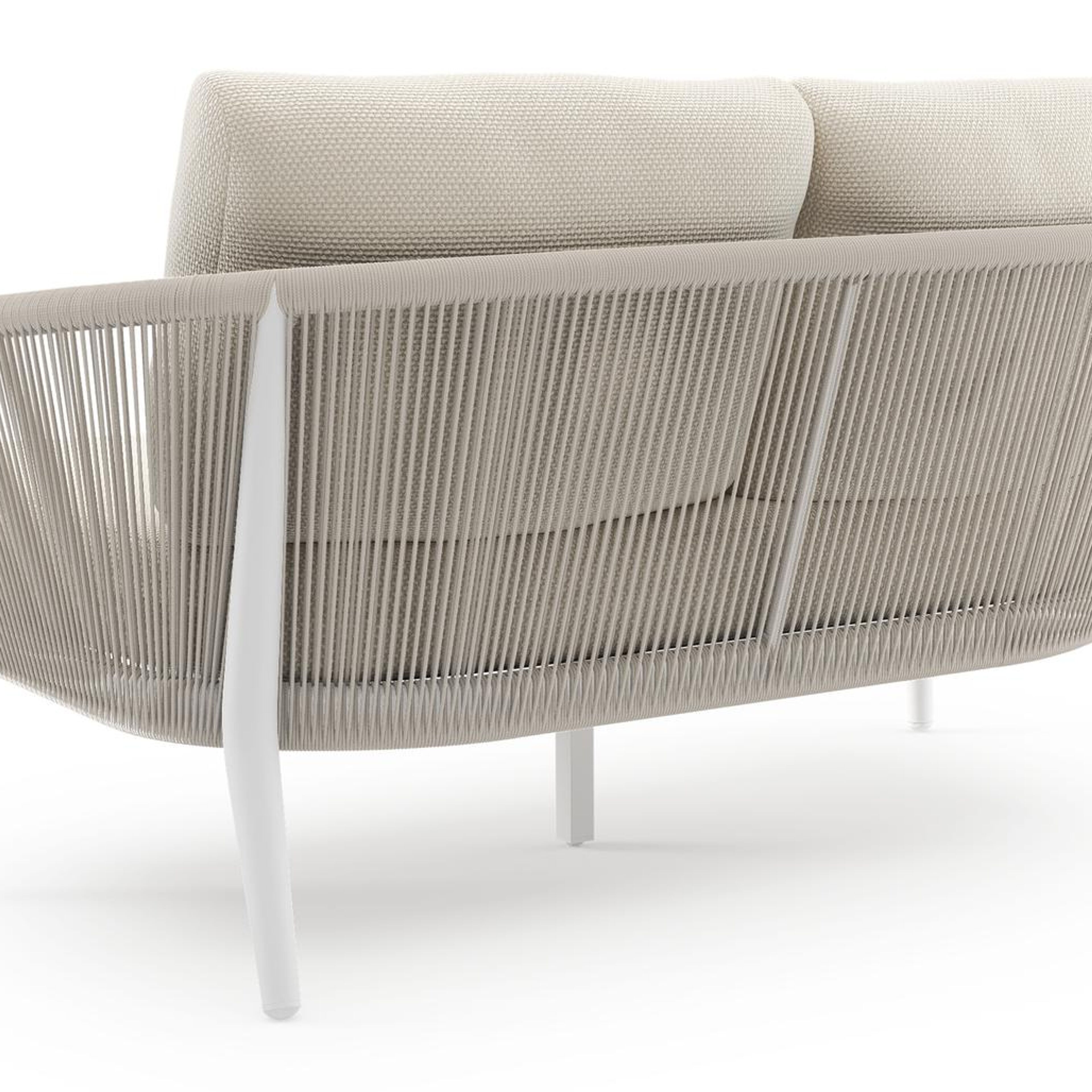 Orso loungebank in wit aluminium en beige verticaal geweven ronde rope met Althea Off White all weather cosytica kussen | Exterioo tuinmeubelen
