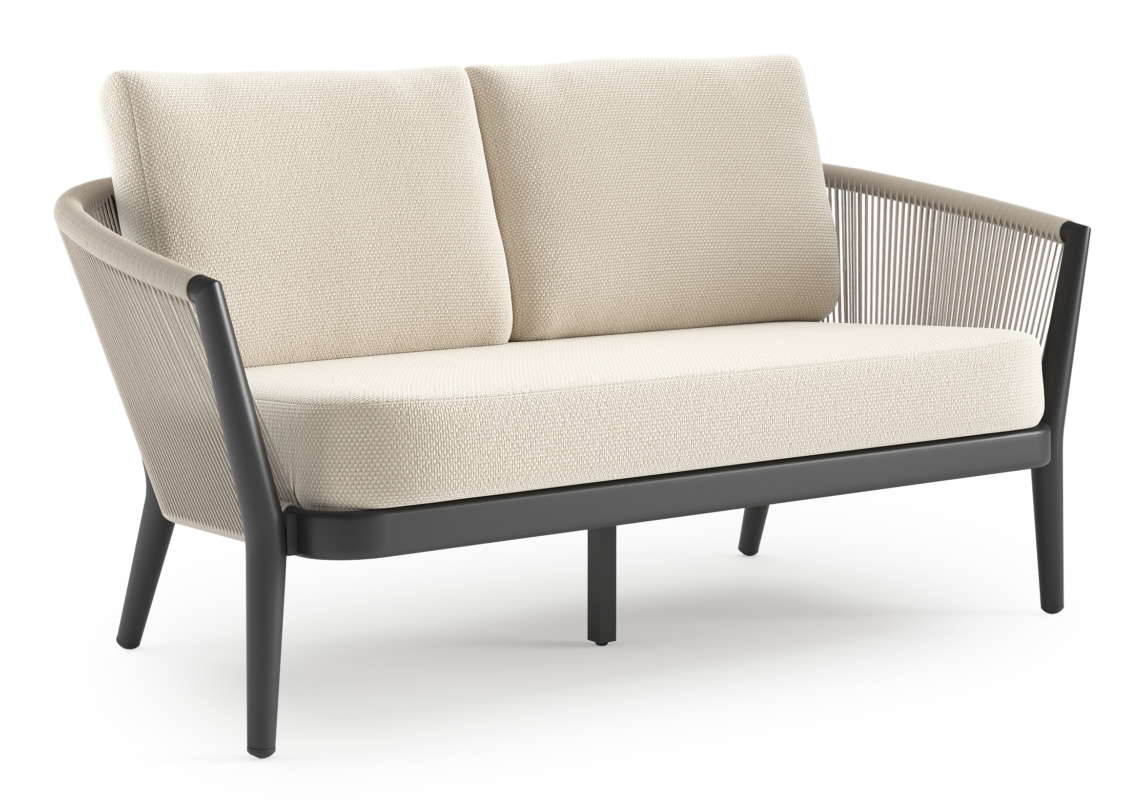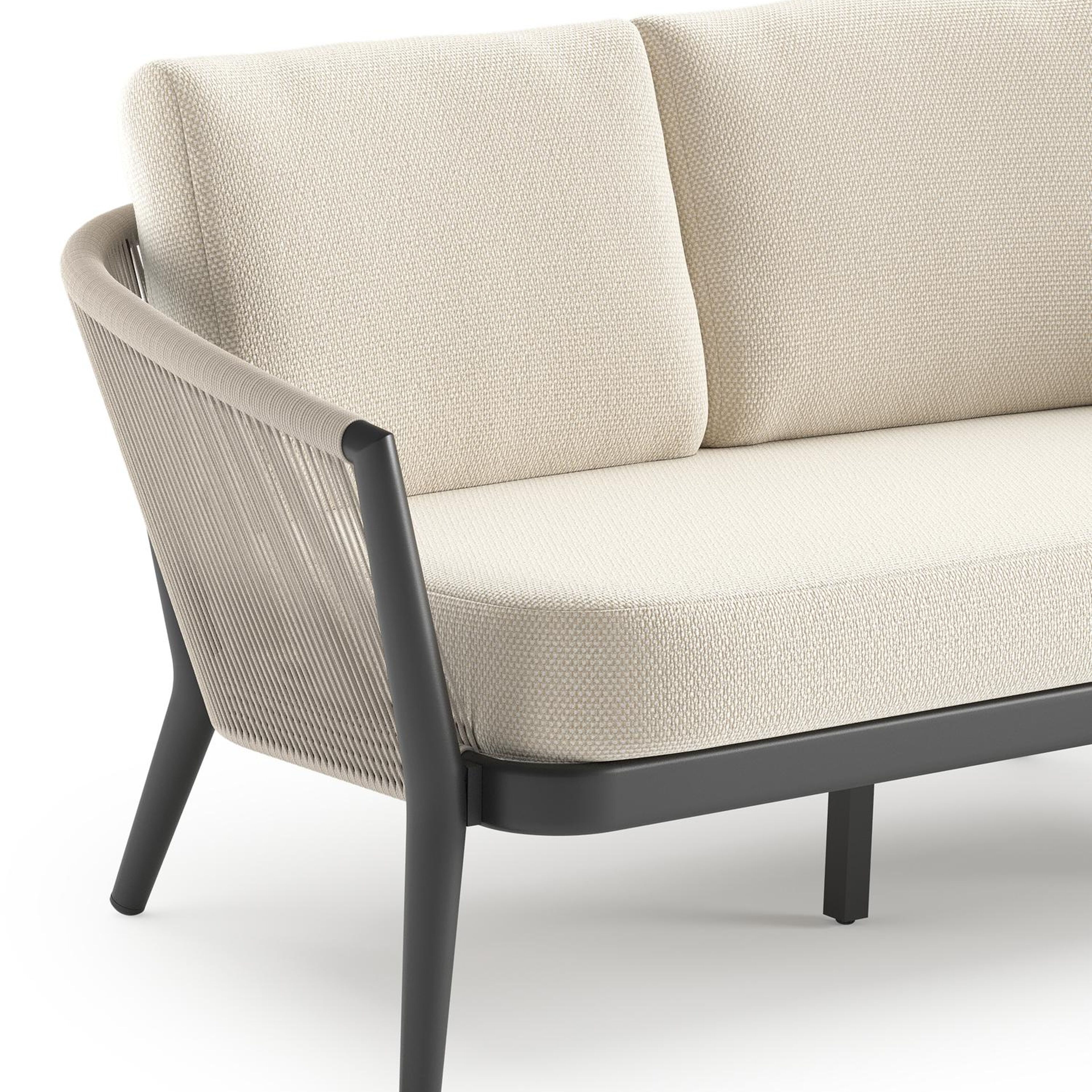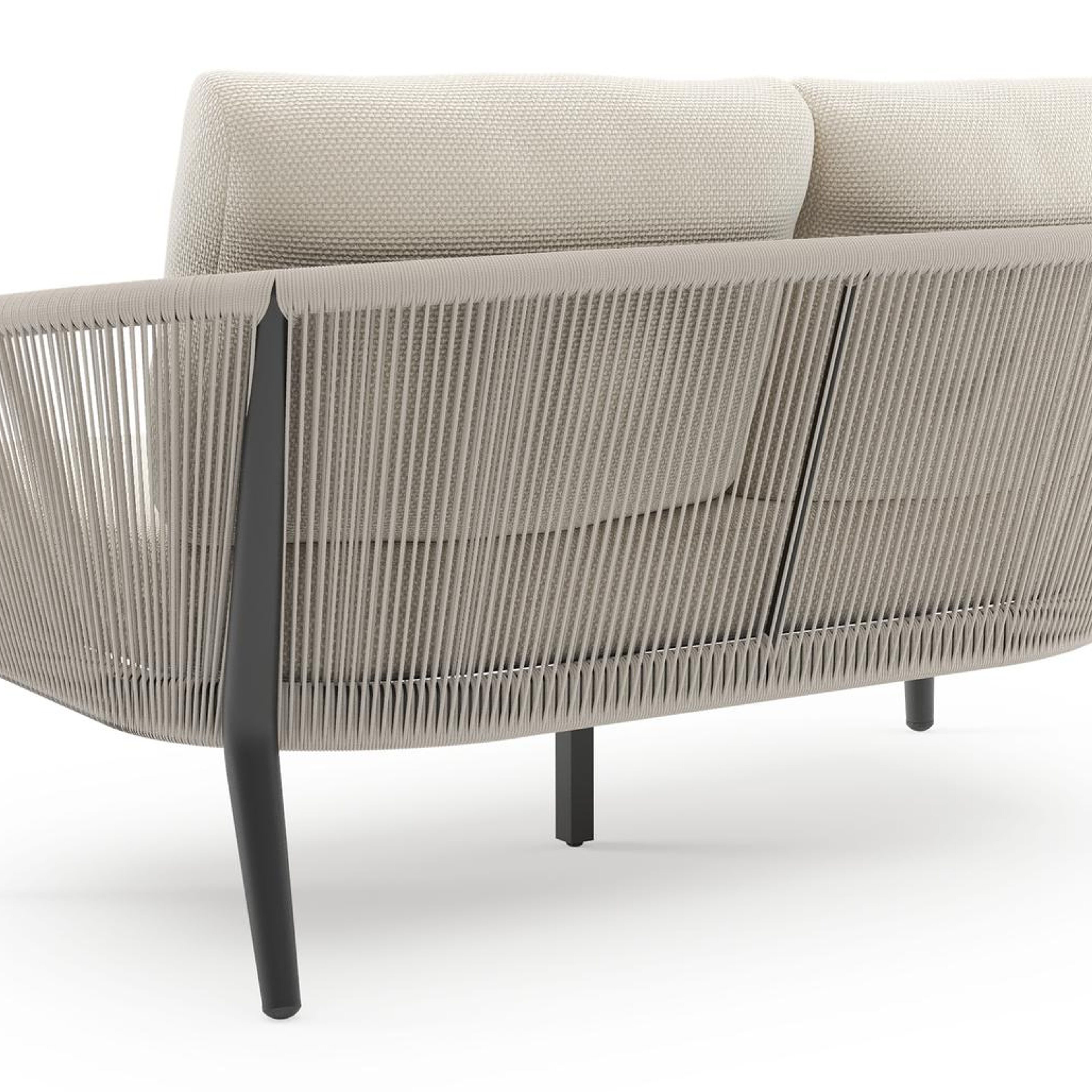Orso loungebank in zwart aluminium en beige verticaal geweven ronde rope met Althea Off White all weather cosytica kussen | Exterioo tuinmeubelen