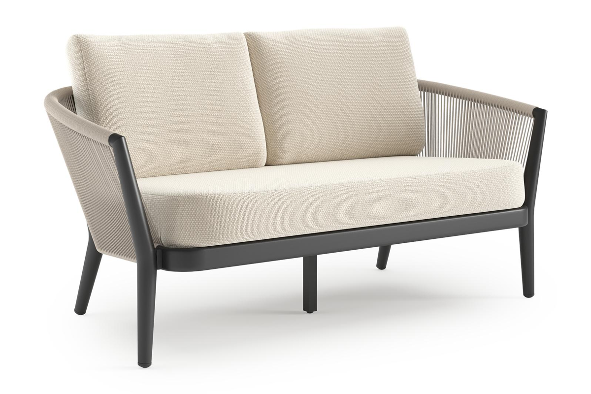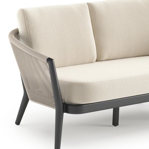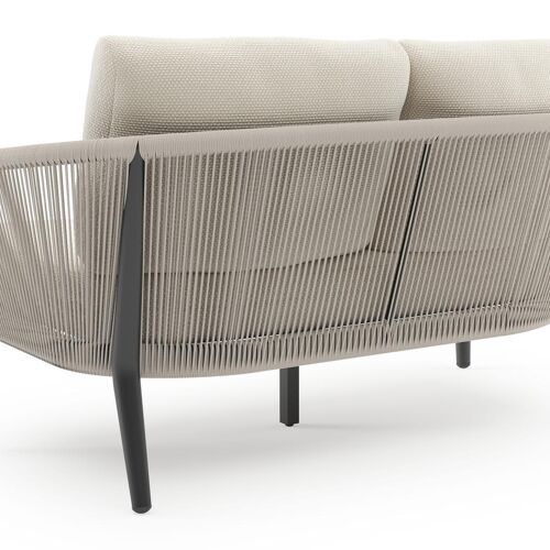 Orso loungebank in zwart aluminium en beige verticaal geweven ronde rope met Althea Off White all weather cosytica kussen | Exterioo