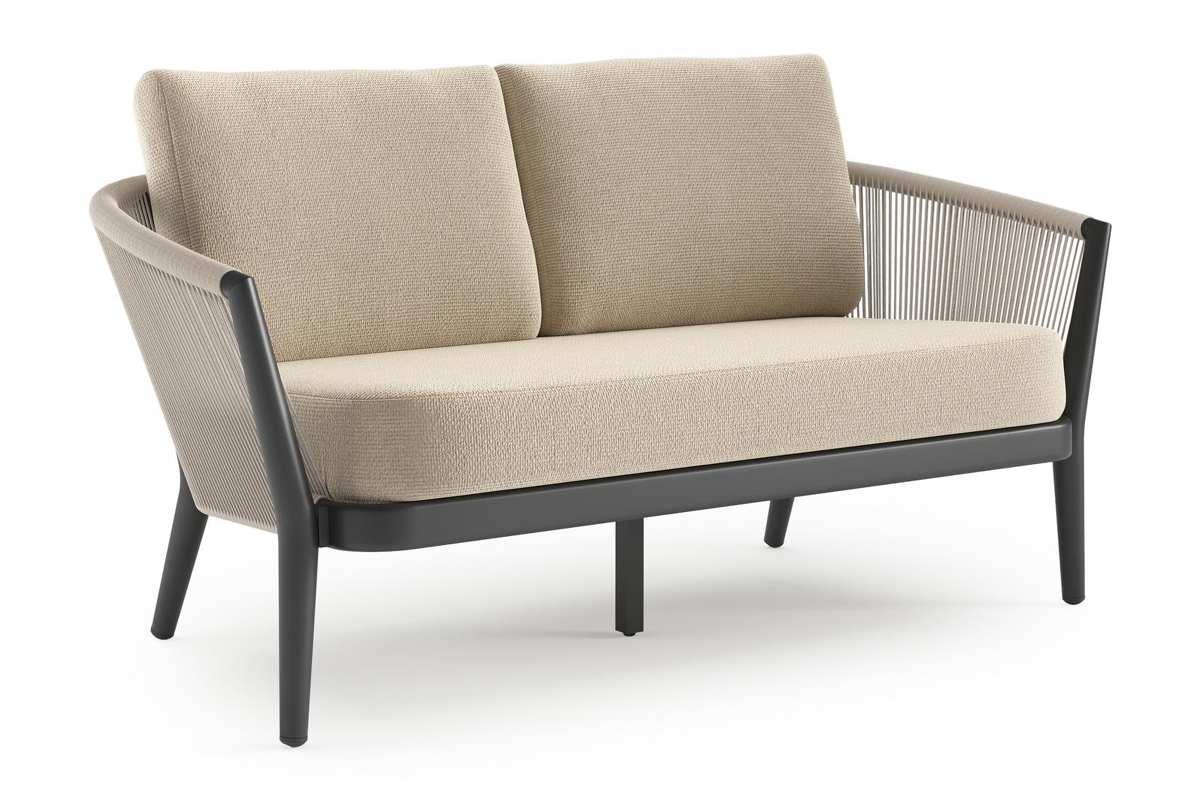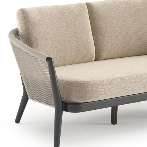 Orso loungebank in zwart aluminium en beige verticaal geweven ronde rope met Althea Chalk all weather cosytica kussen | Exterioo