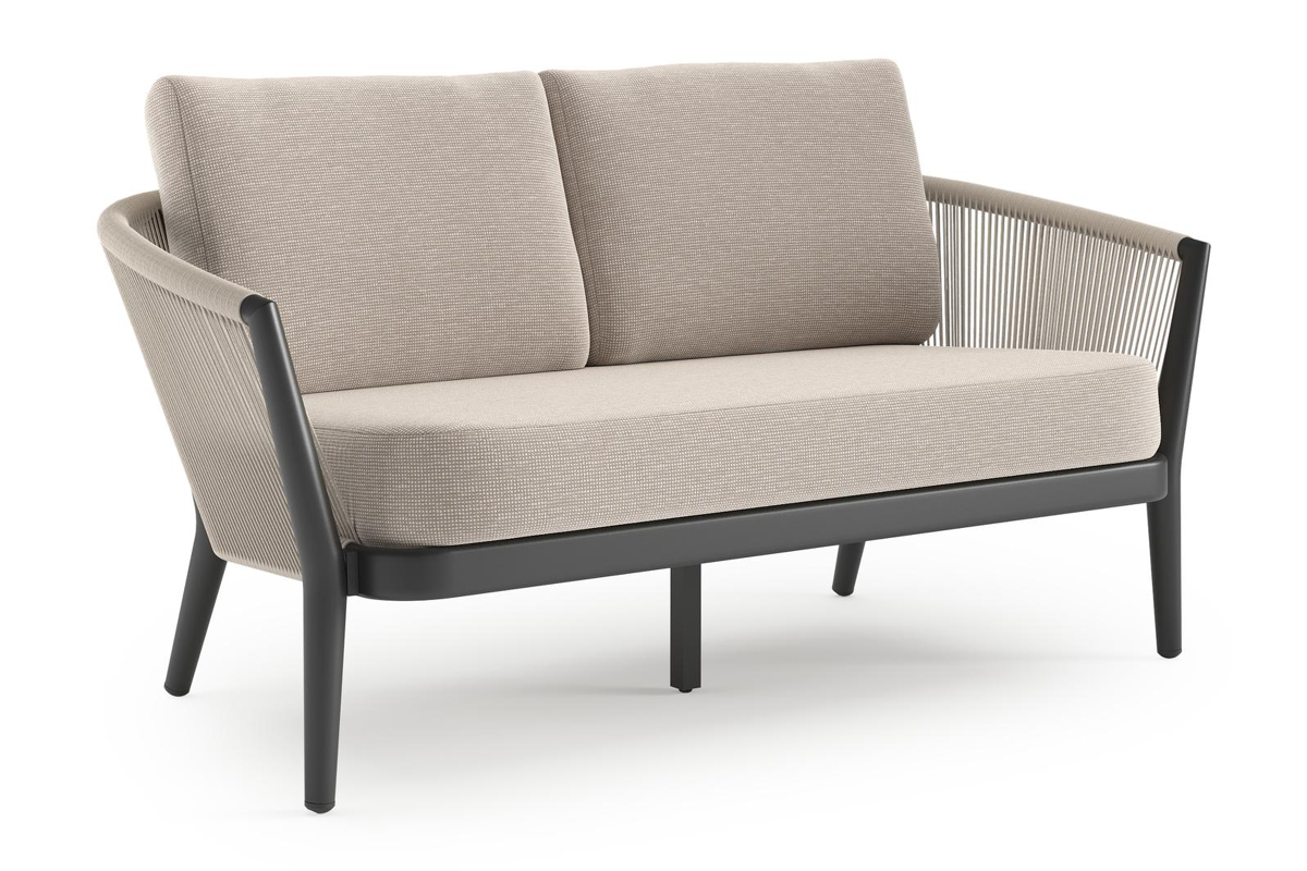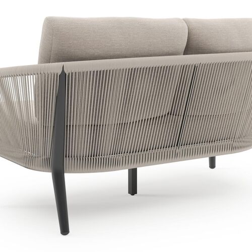 Orso loungebank in zwart aluminium en beige verticaal geweven ronde rope met Slow Farafra all weather sunbrella® luxe kussen | Exterioo