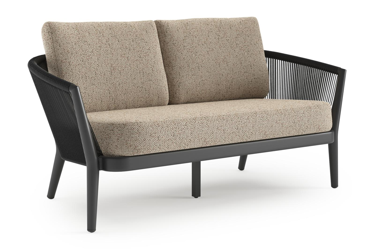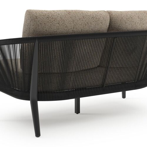 Orso loungebank in zwart aluminium en zwart verticaal geweven ronde rope met Bora Jungle all weather cosytica kussen | Exterioo