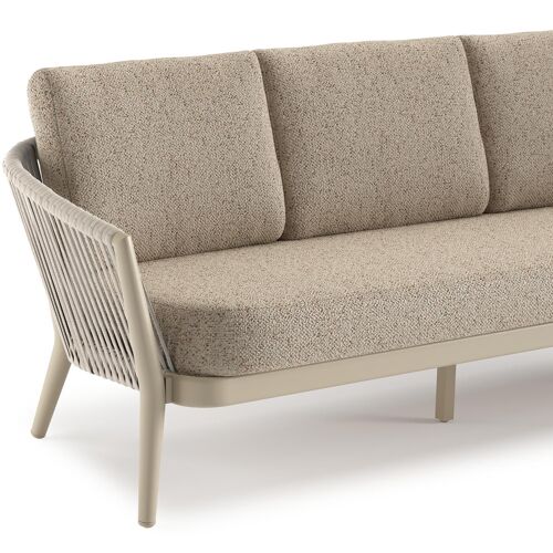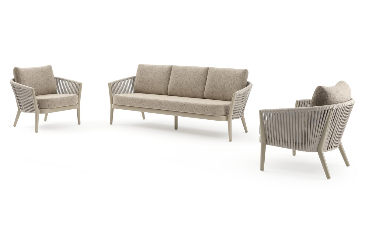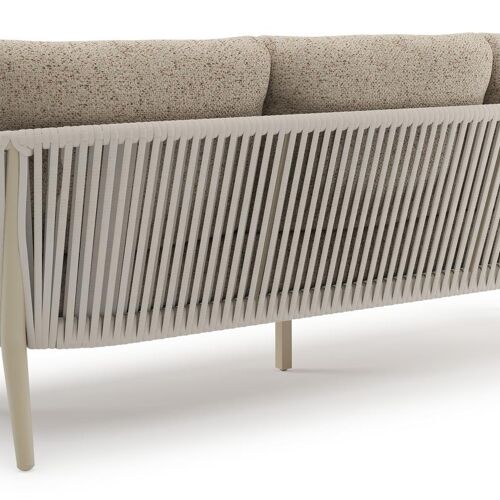 Orso loungeset in beige aluminium en beige verticaal geweven ronde rope met Bora Jungle all weather cosytica kussen | Exterioo