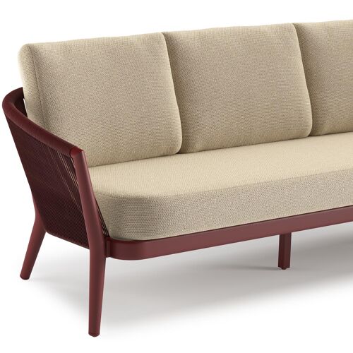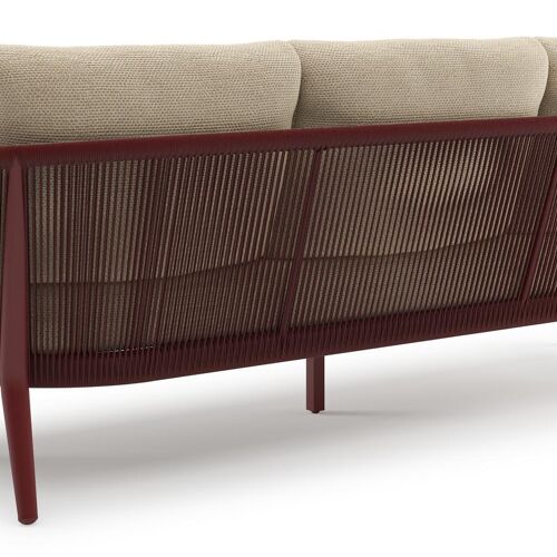 Orso loungeset in ruby aluminium en ruby verticaal geweven ronde rope met Althea Camel all weather cosytica kussen | Exterioo