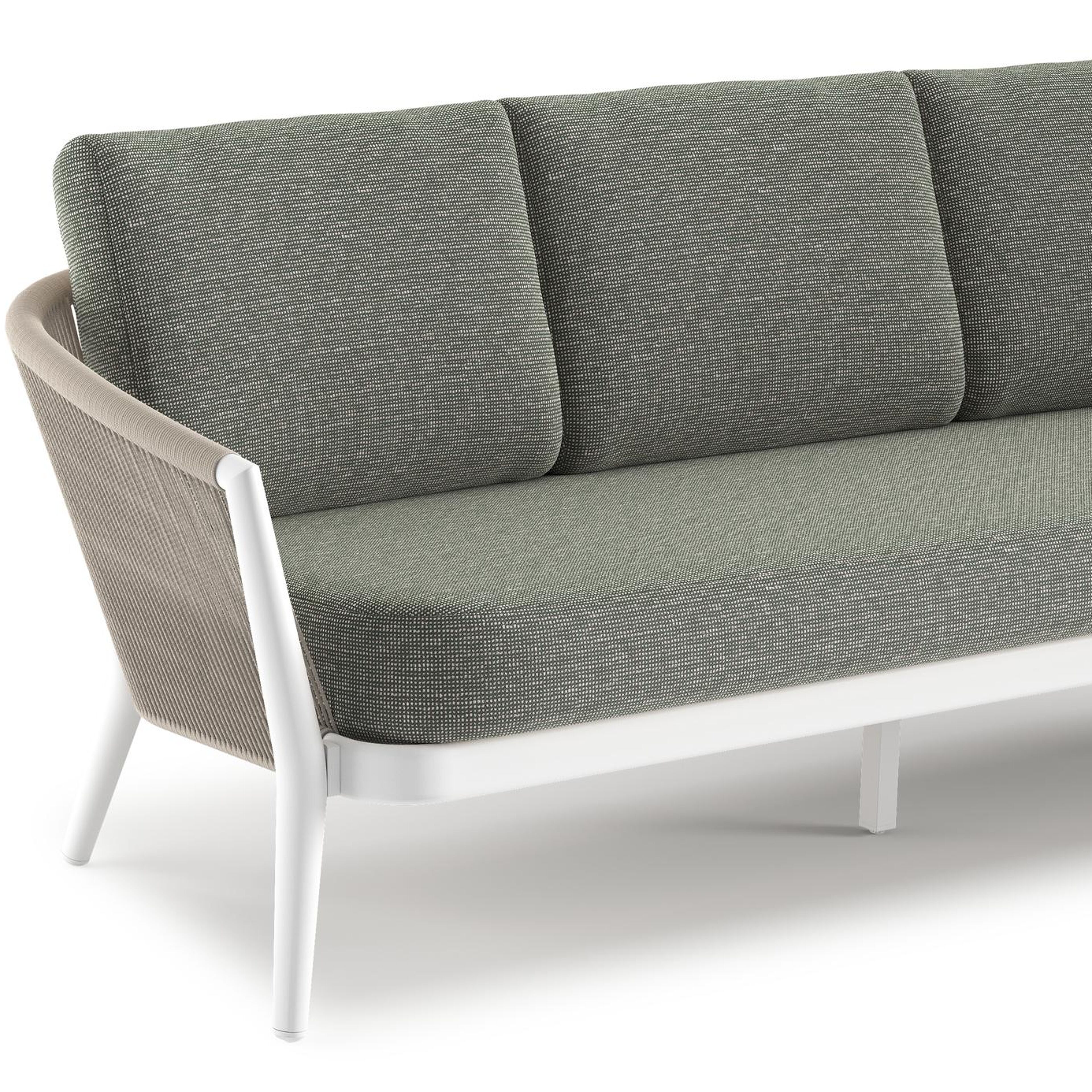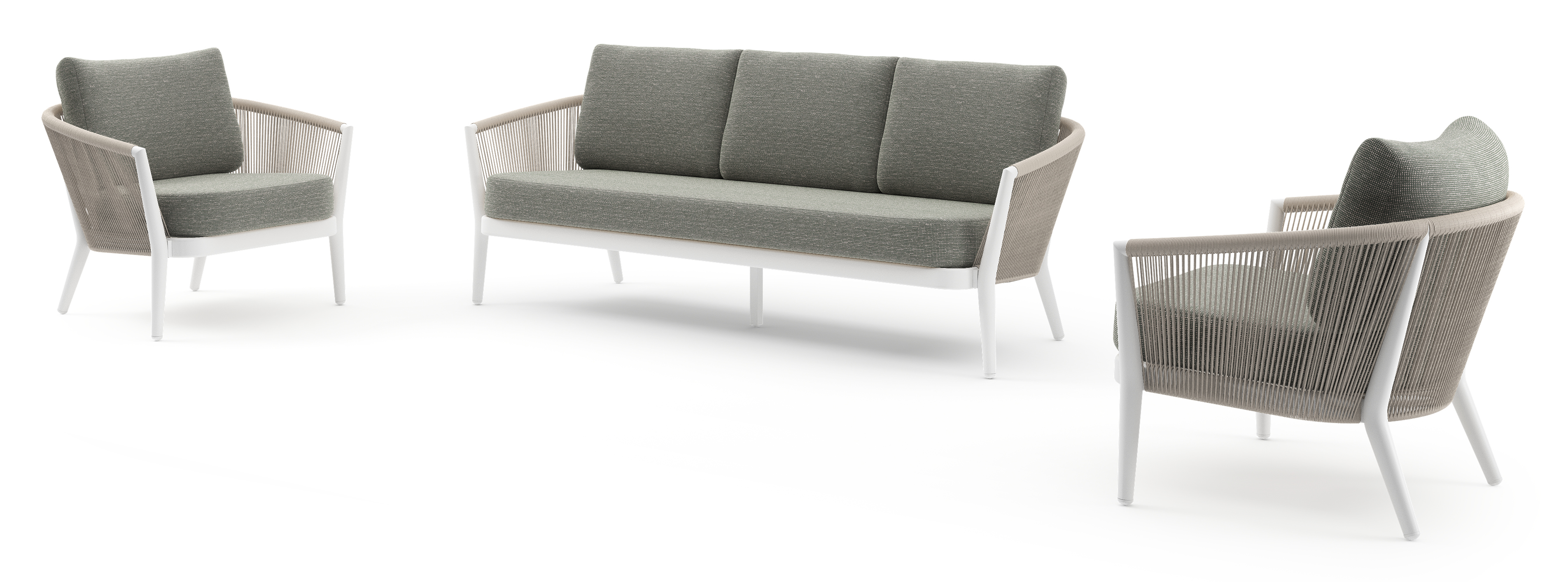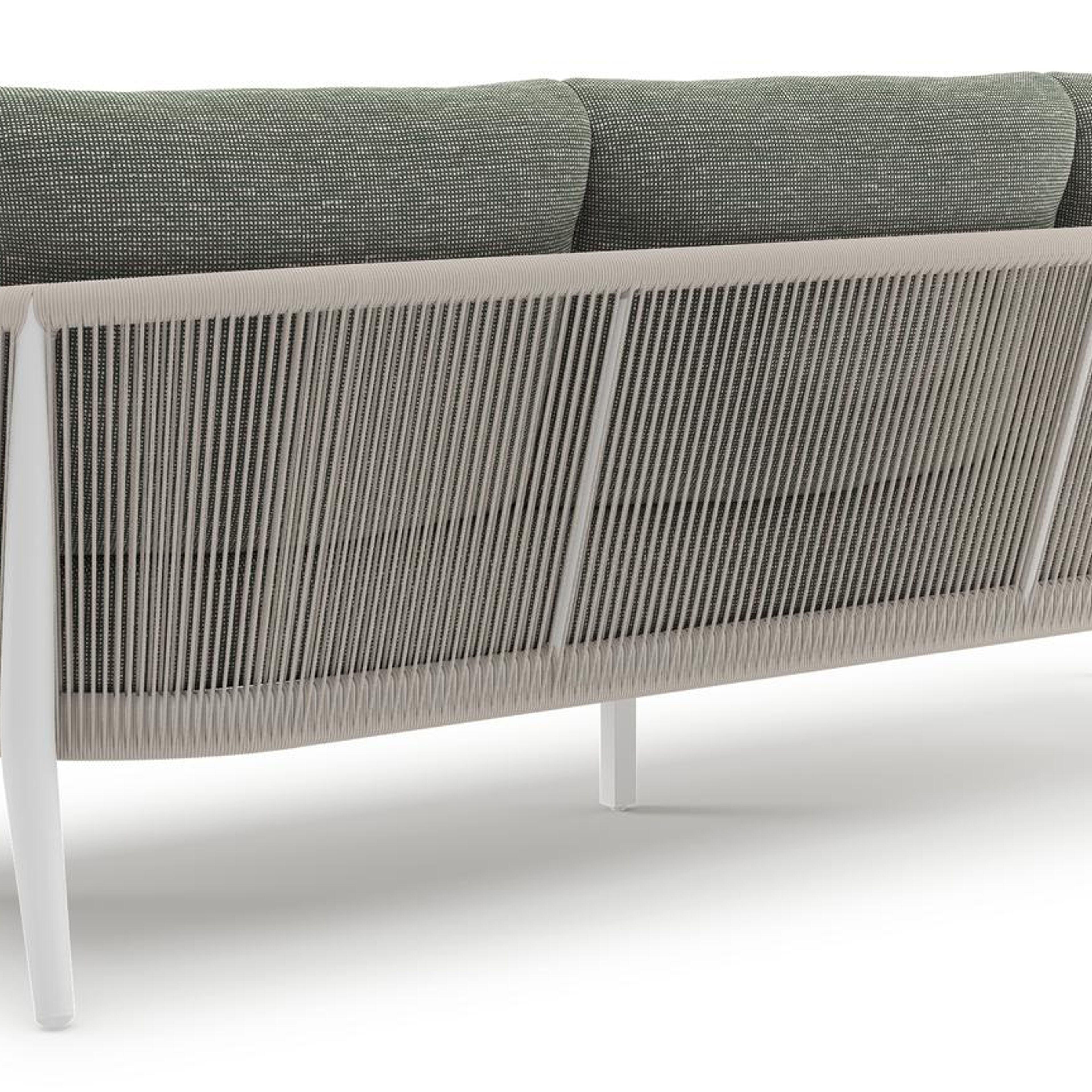 Orso loungeset in wit aluminium en beige verticaal geweven ronde rope met Slow Fern all weather sunbrella® luxe kussen | Exterioo tuinmeubelen