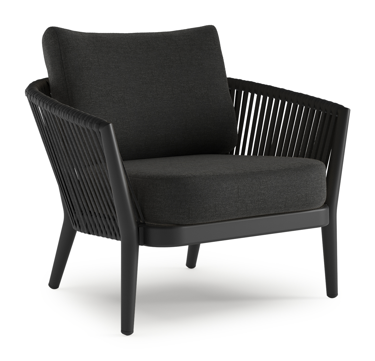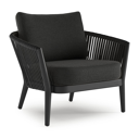 Orso loungestoel in zwart aluminium en verticaal geweven ronde rope met chartres sooty all weather sunbrella® luxe kussen | Exterioo tuinmeubelen