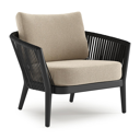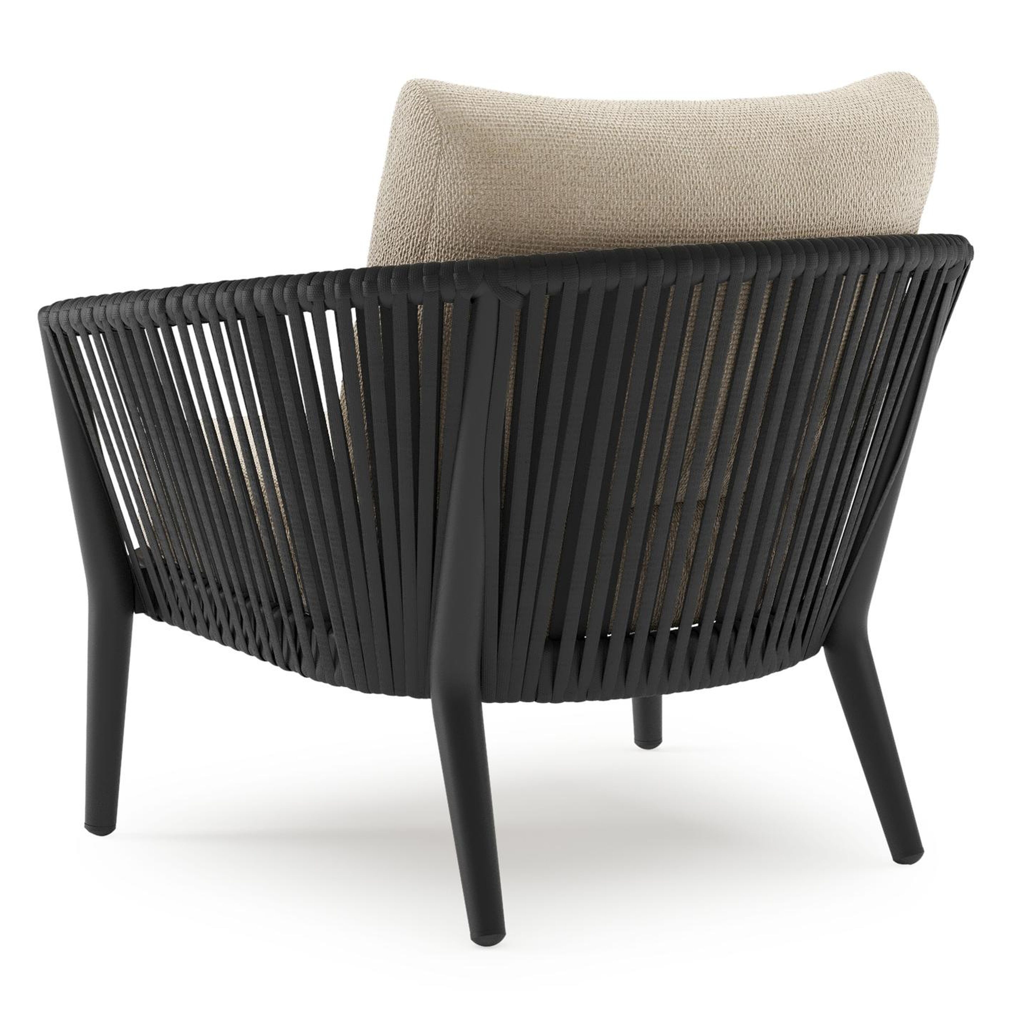 Orso loungestoel in zwart aluminium en zwart verticaal geweven ronde rope met Althea Chalk all weather cosytica kussen | Exterioo tuinmeubelen