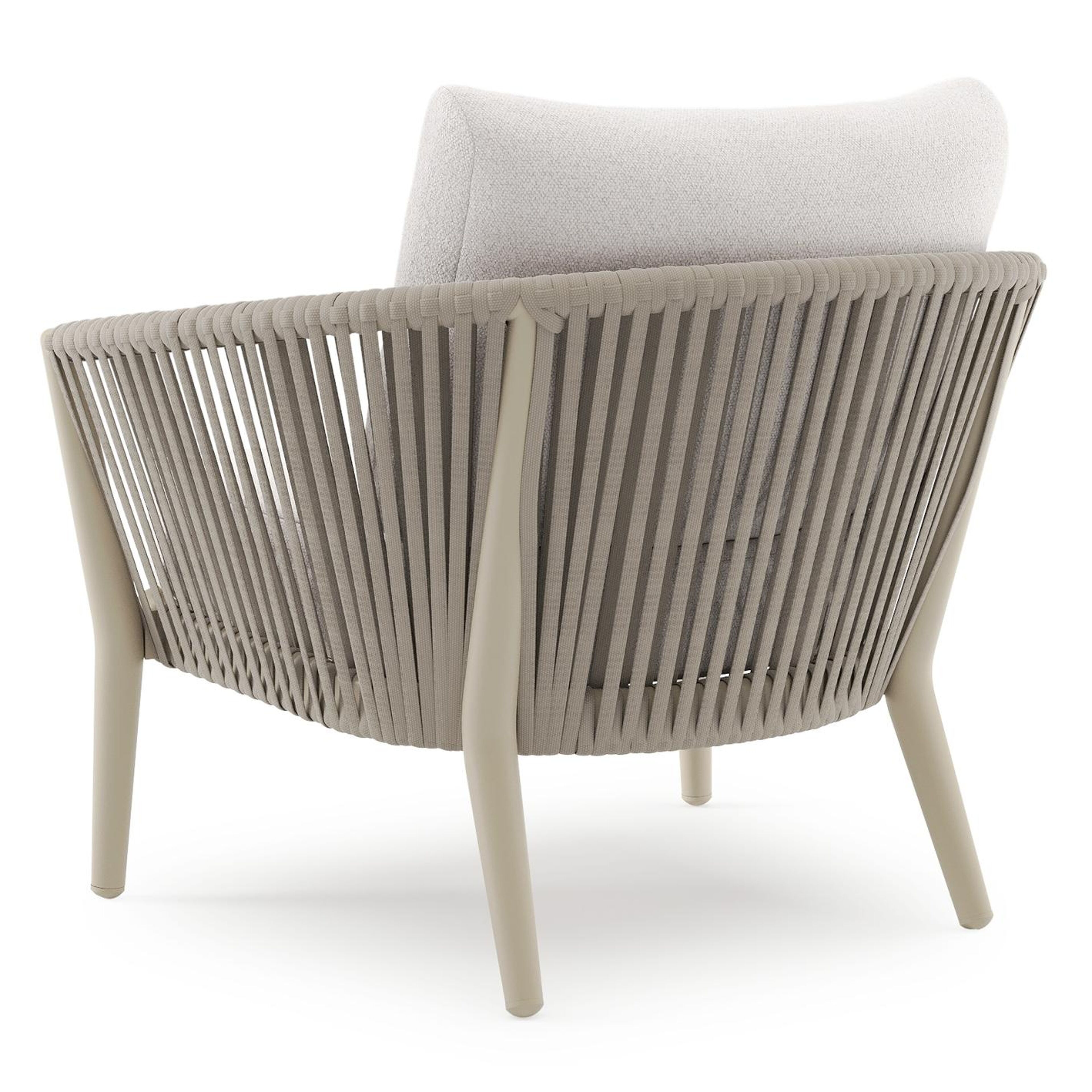 Orso loungestoel in beige aluminium en beige verticaal geweven luxe vlakke rope met Ego Eggshell all weather solica kussen | Exterioo tuinmeubelen