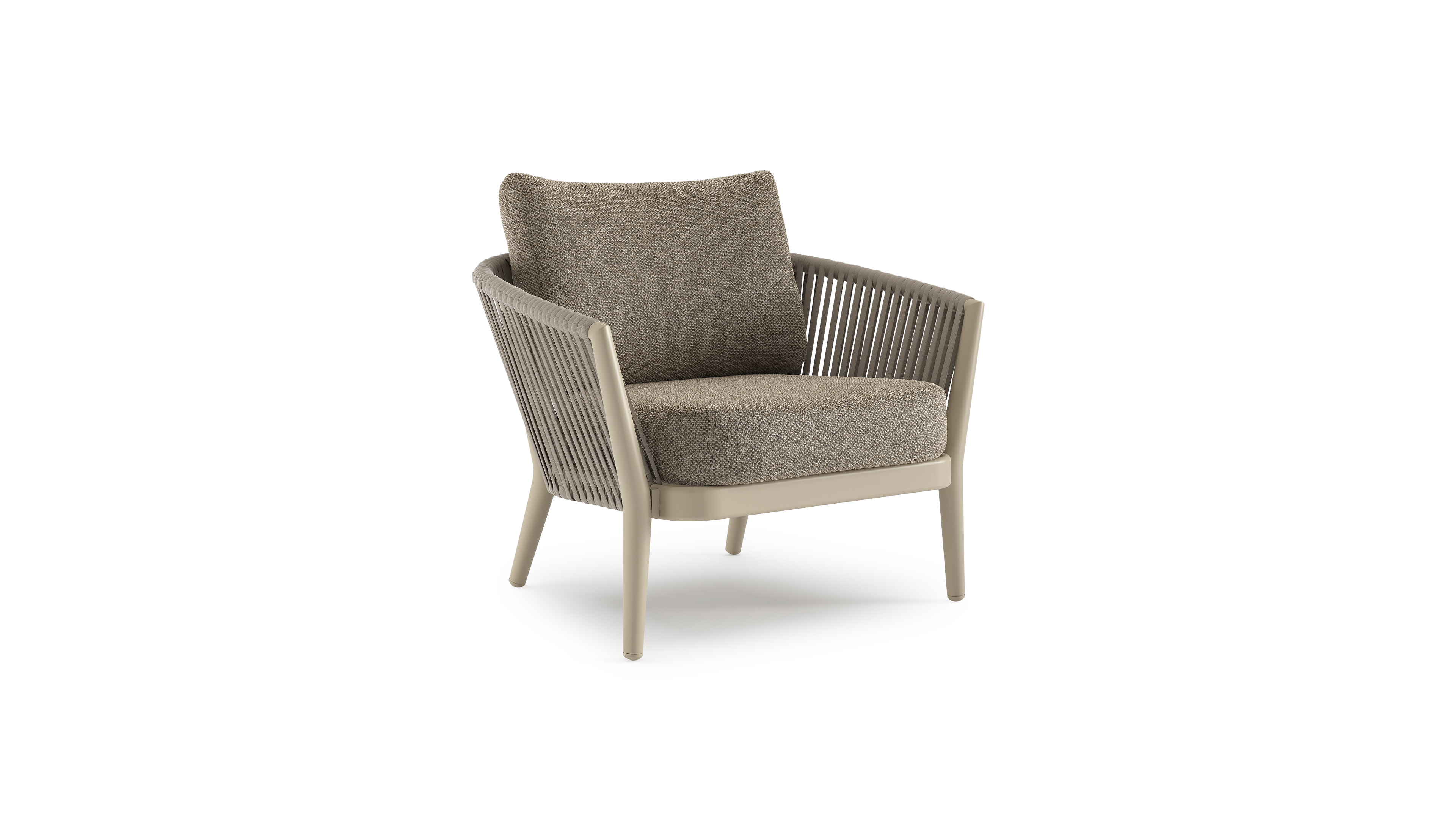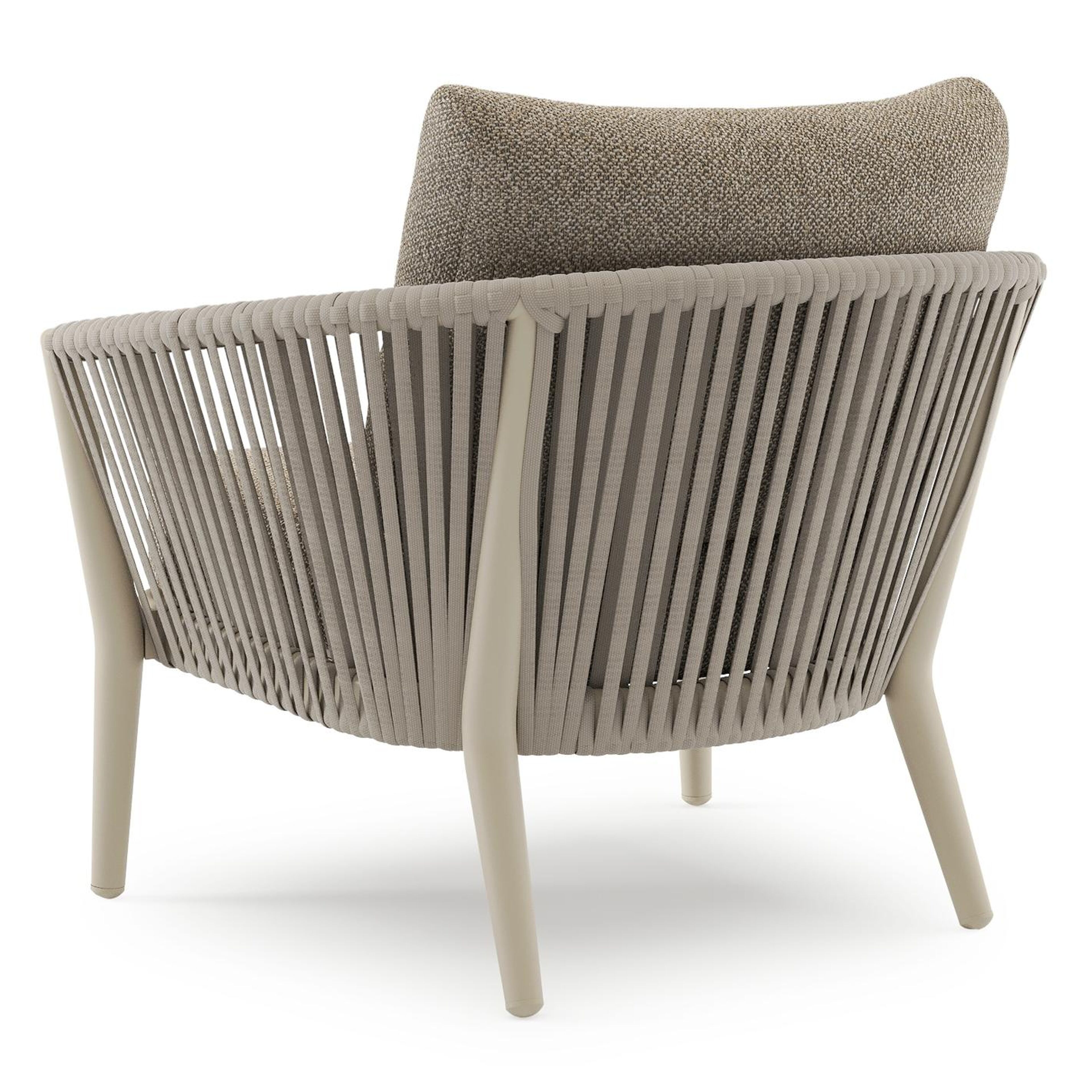 Orso loungestoel in beige aluminium en beige verticaal geweven luxe vlakke rope met Madagascar Burch all weather cosytica kussen | Exterioo tuinmeubelen