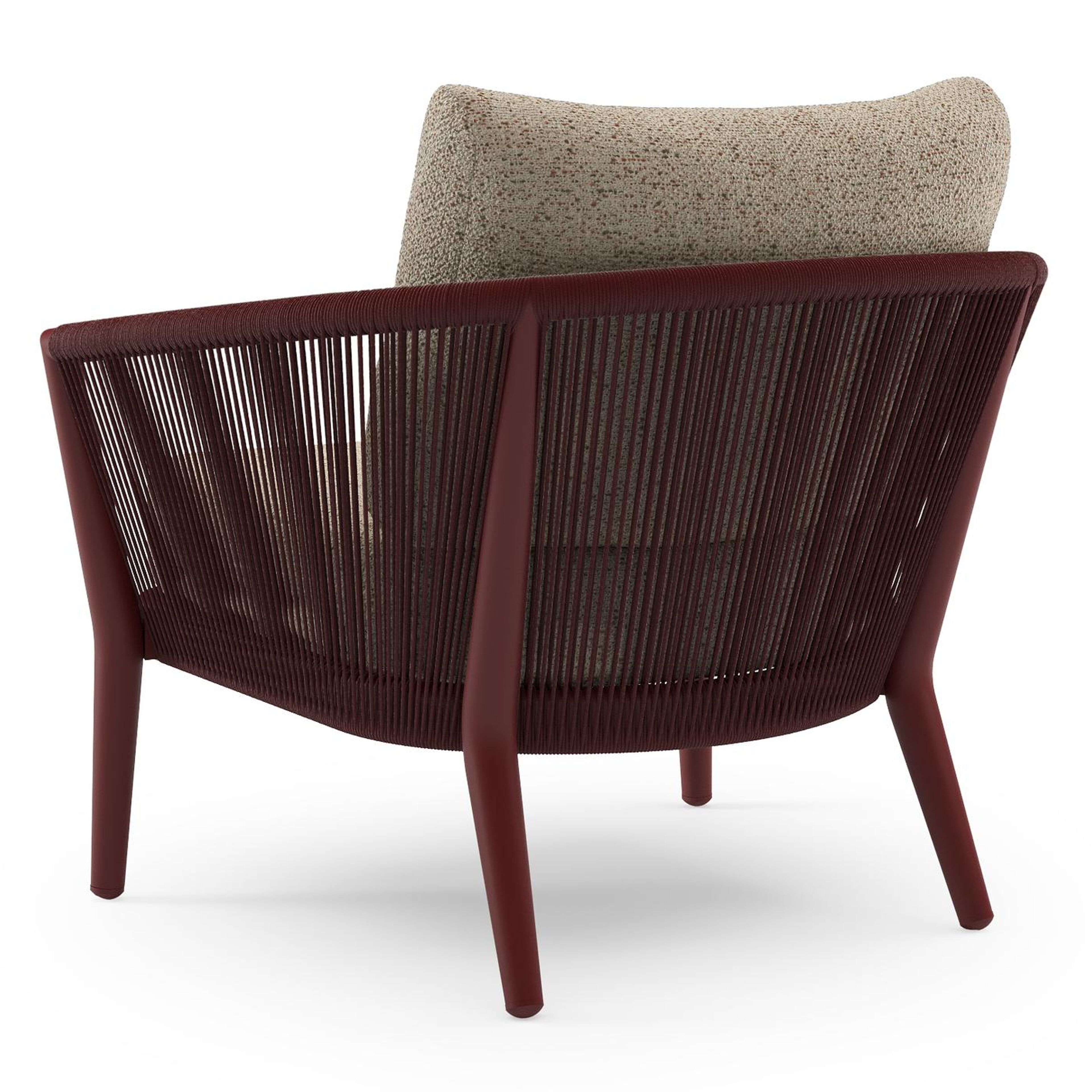 Orso loungestoel in ruby aluminium en ruby verticaal geweven ronde rope met Bora Jungle all weather cosytica kussen | Exterioo tuinmeubelen