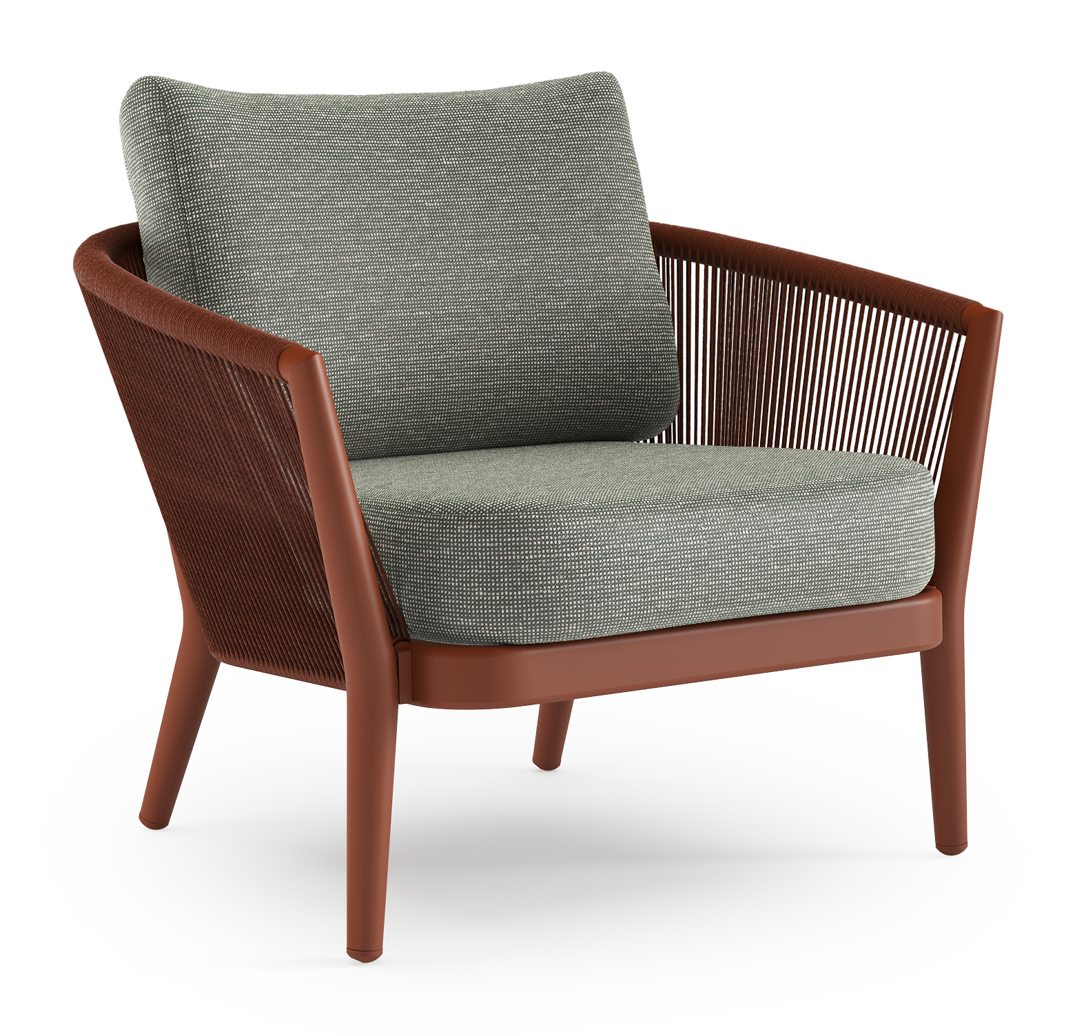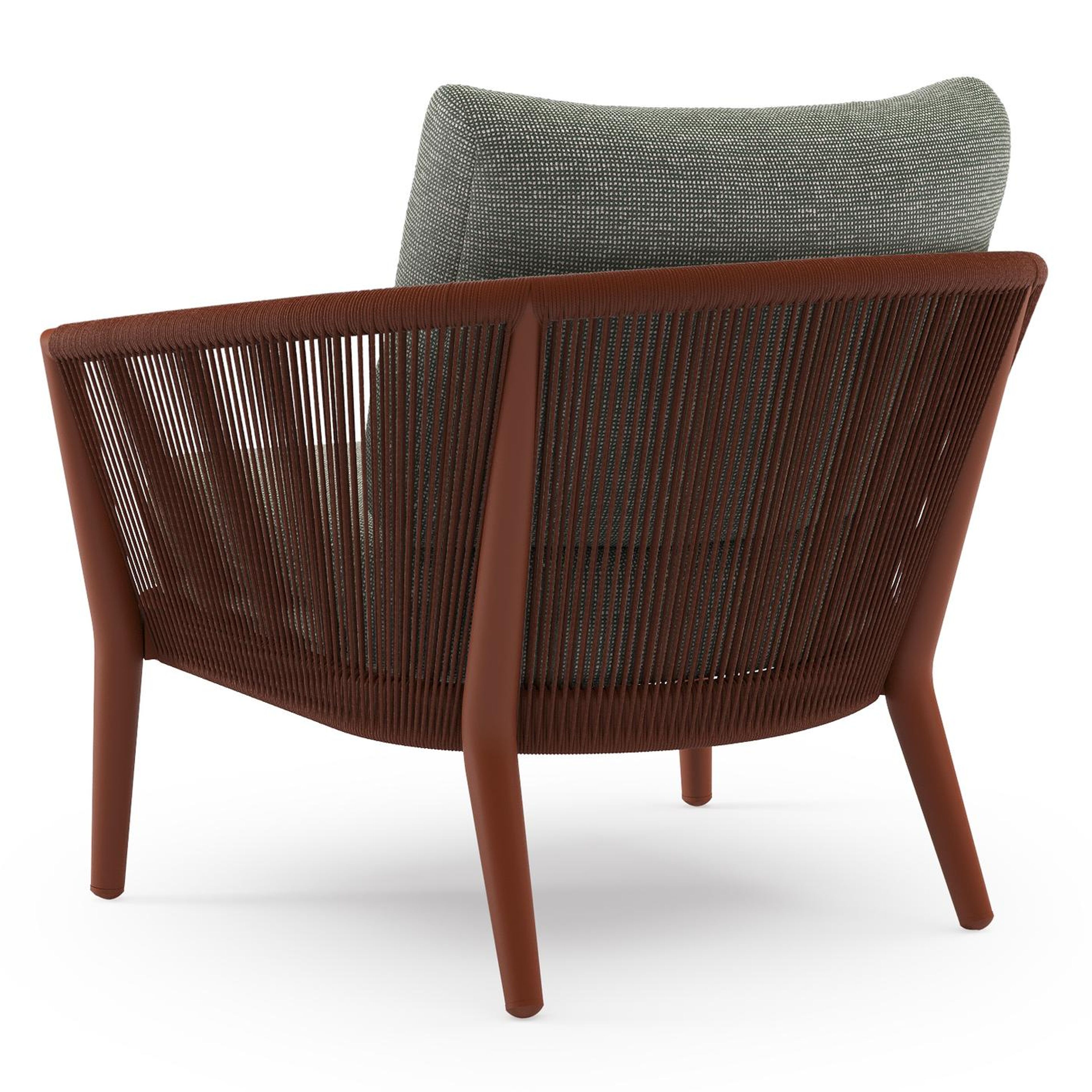 Orso loungestoel in roestbruin aluminium en roestbruin verticaal geweven ronde rope met Slow Fern all weather sunbrella® luxe kussen | Exterioo tuinmeubelen